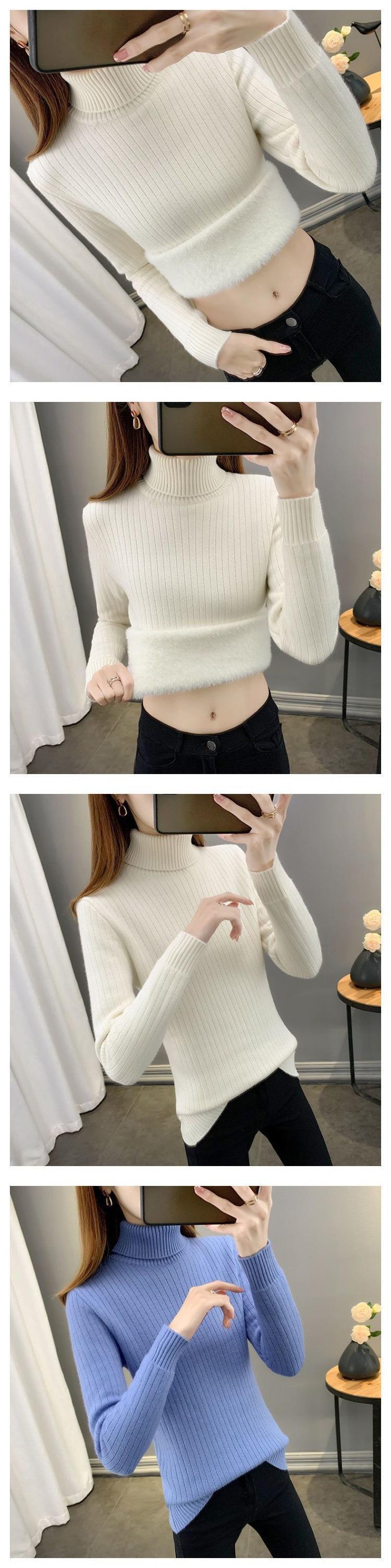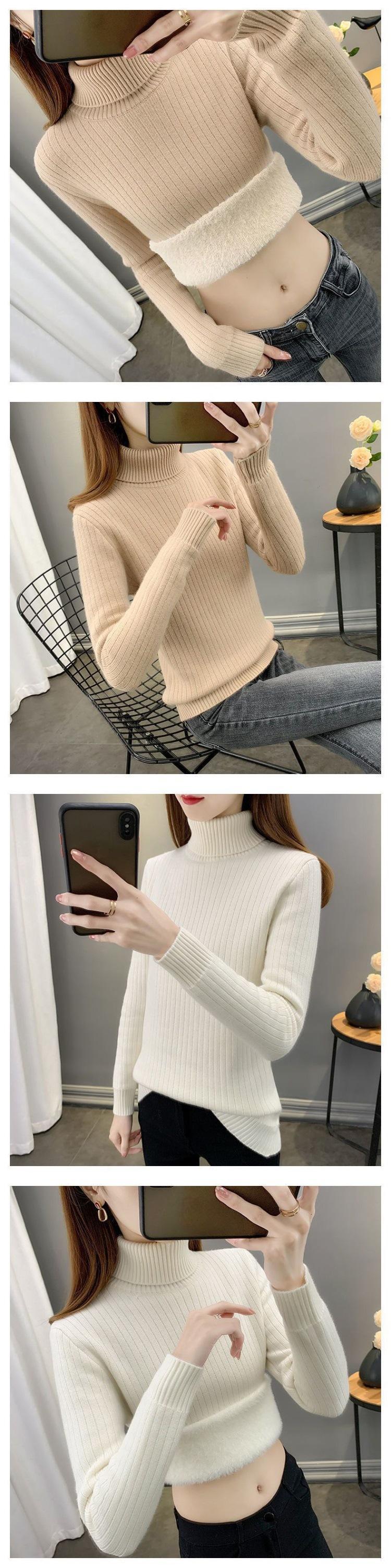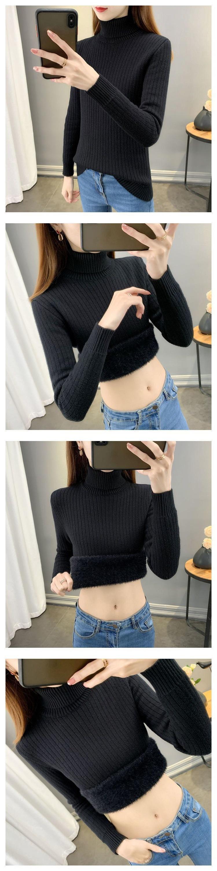 Nuevo Suéter de Cuello Alto Otoño/Invierno con Forro Polar, Grueso de Una Pieza con Capa Interior Polar, Cálido, Ropa de Punto Base