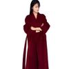 Abrigo Tweed Rojo Estilo Chanel con Lazo Invierno Alta Gama Exquisito Diseño Largo Sentido del Temperamento Sobretodo Mujeres