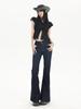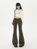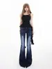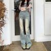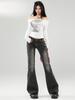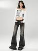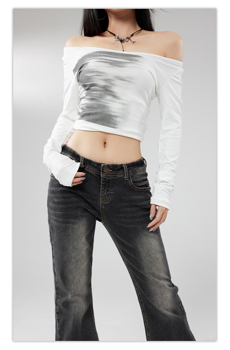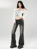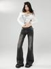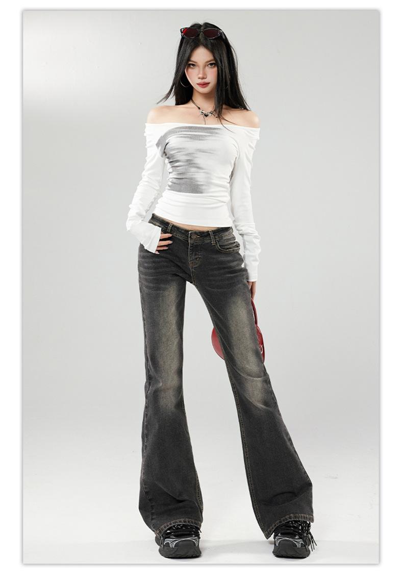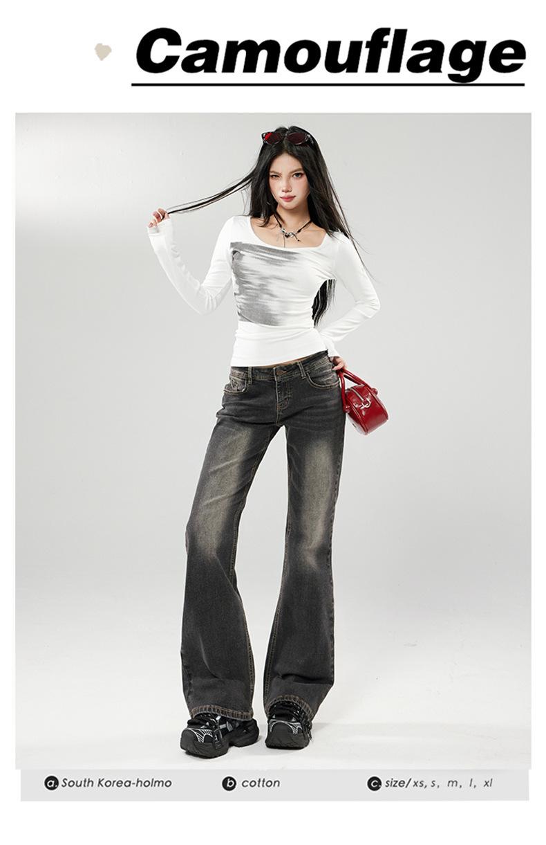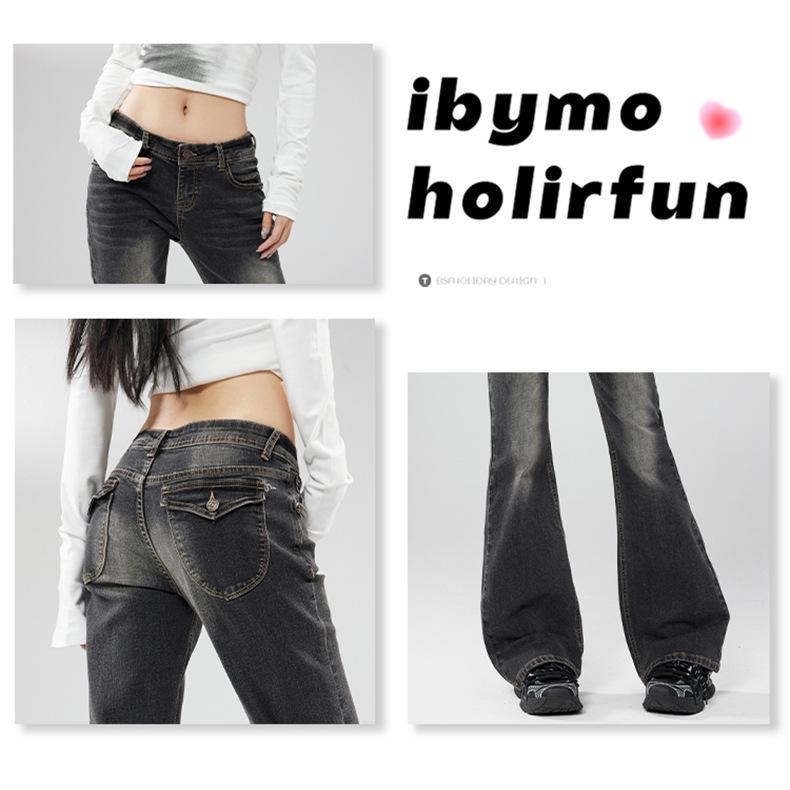 Ropa de mujer de seda naranja#jeans acampanados micro de talle bajo negro-gris para mujer, versátiles de otoño temprano, elásticos, lavados, acampanados, tipo herradura