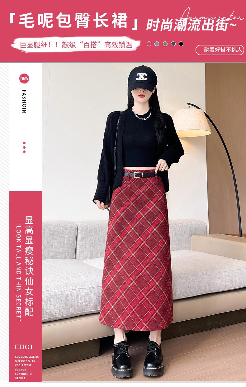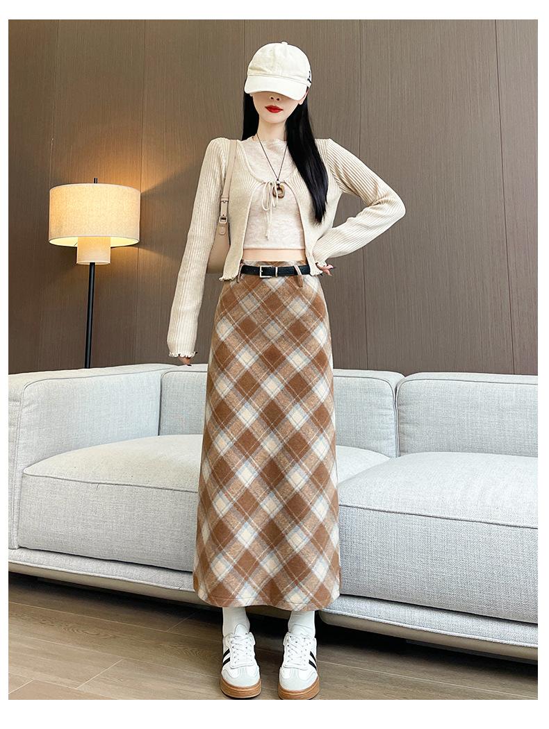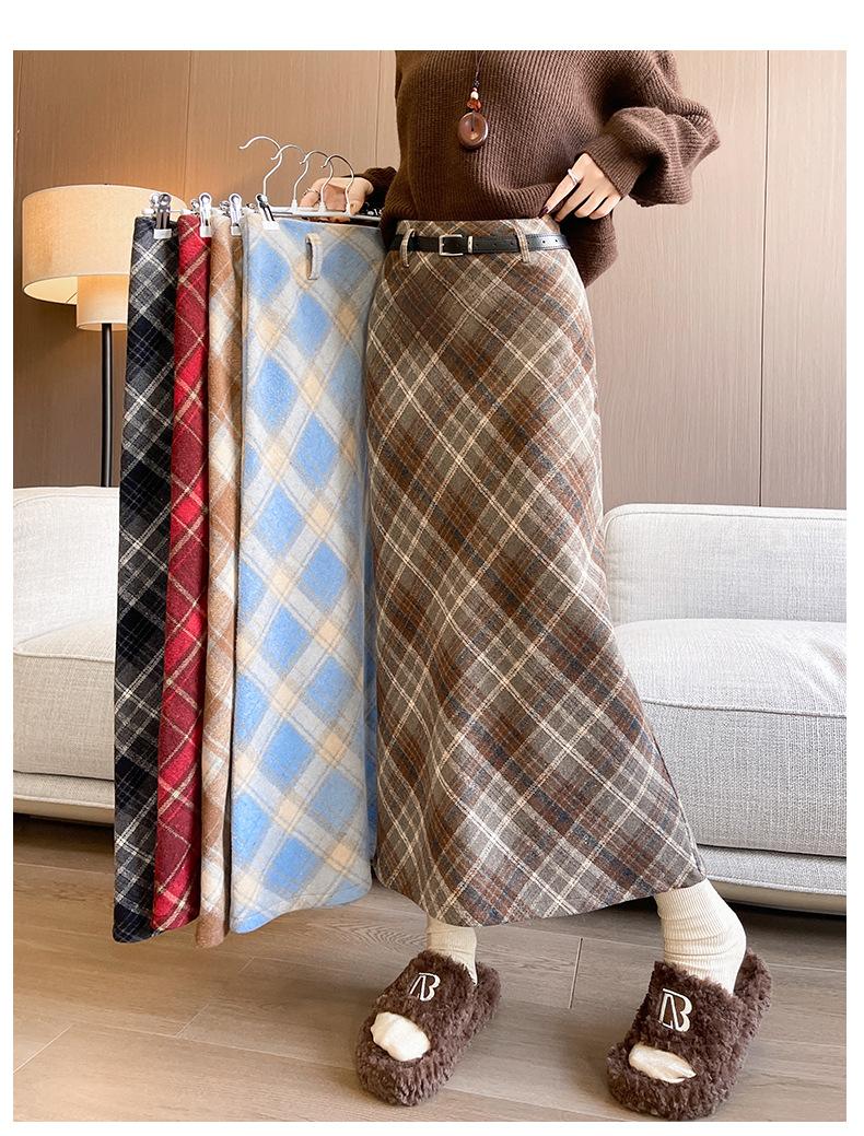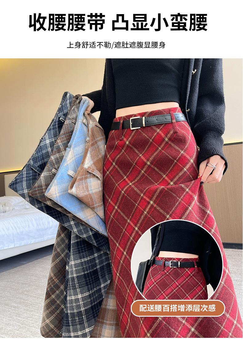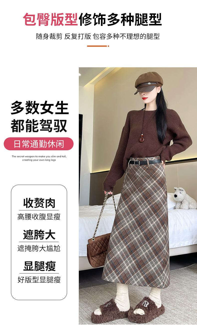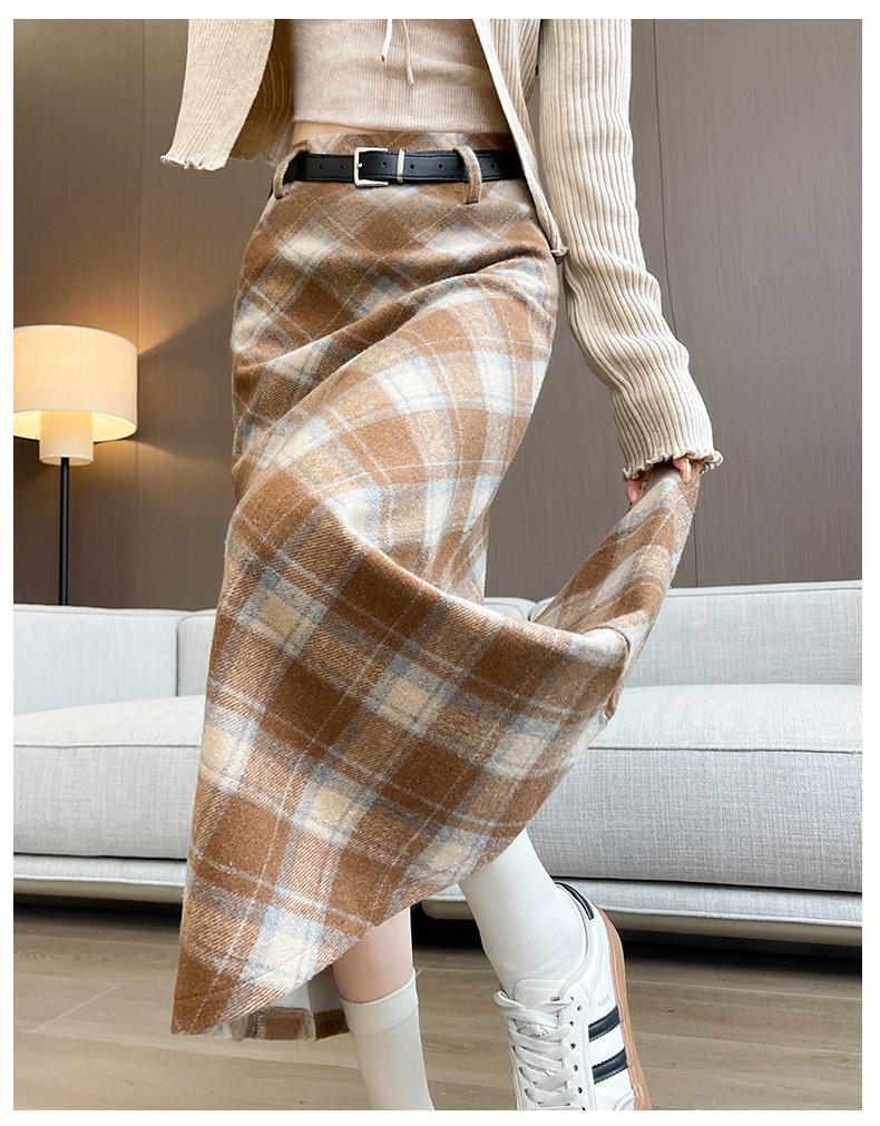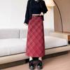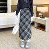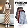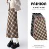 Falda de Lana Ajustada a la Cadera Otoño e Invierno Retro 2025 Nueva Falda Midi Mujer Versátil Cintura Alta Adelgazante A-Line Cuadros Media Falda