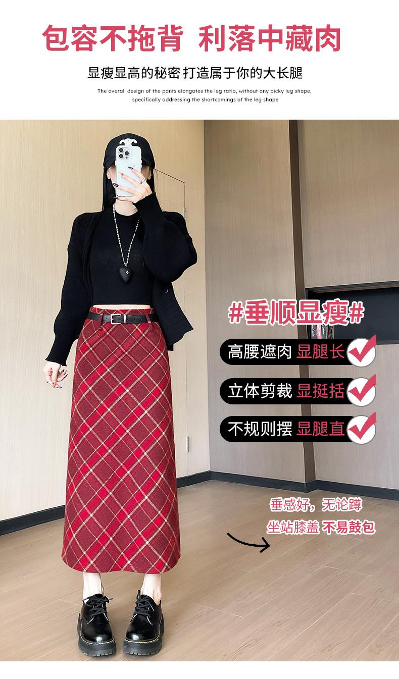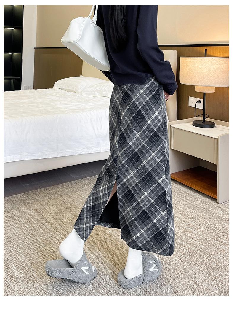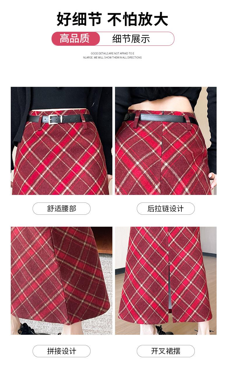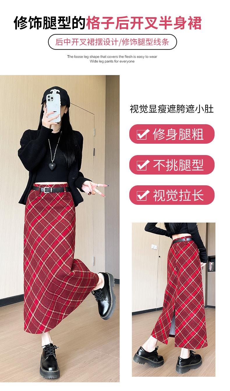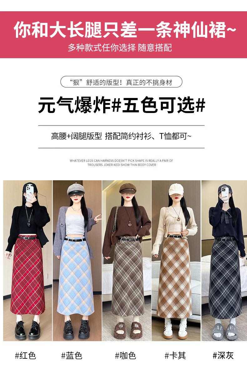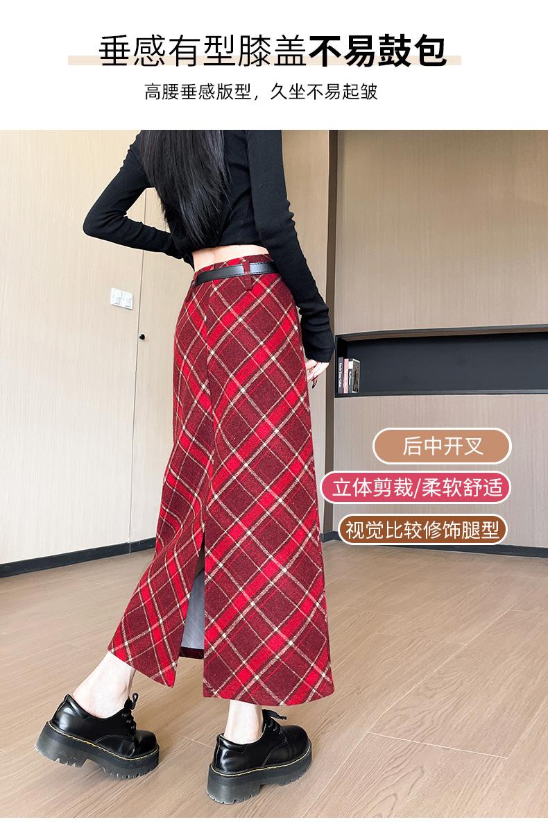 Falda de Lana Ajustada a la Cadera Otoño e Invierno Retro 2025 Nueva Falda Midi Mujer Versátil Cintura Alta Adelgazante A-Line Cuadros Media Falda