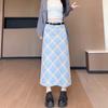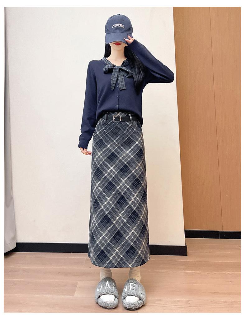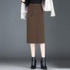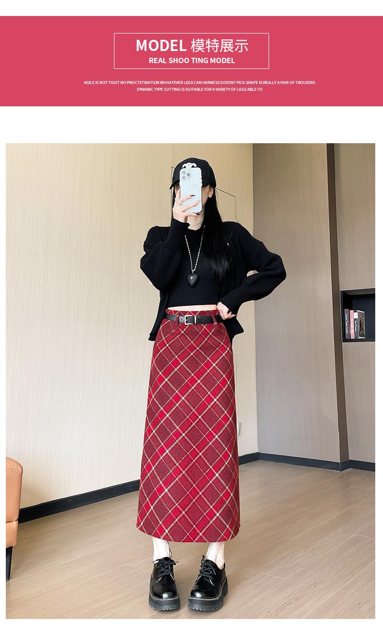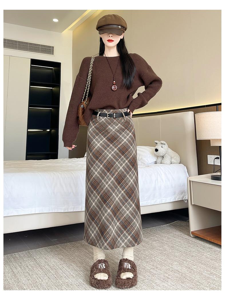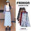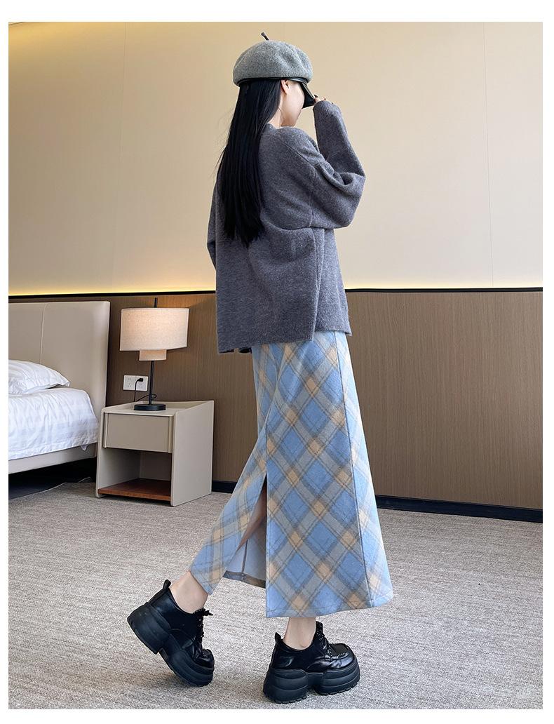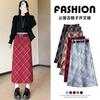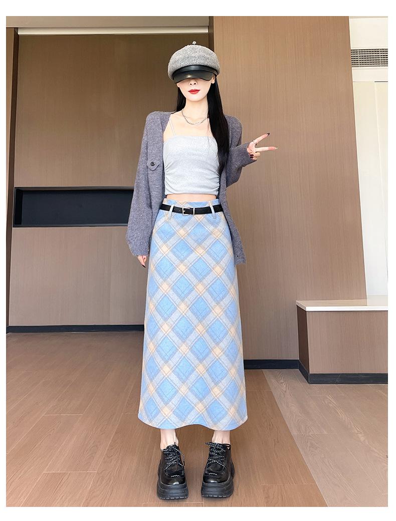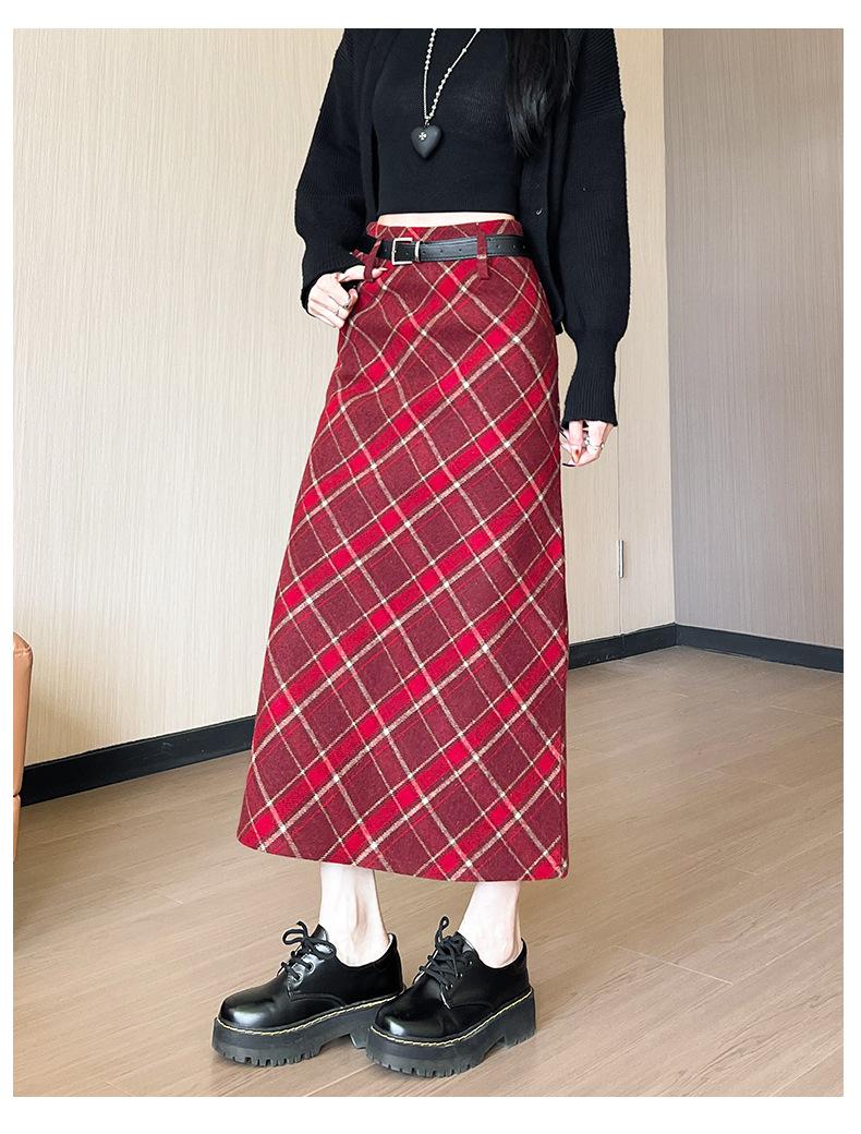 Falda de Lana Ajustada a la Cadera Otoño e Invierno Retro 2025 Nueva Falda Midi Mujer Versátil Cintura Alta Adelgazante A-Line Cuadros Media Falda