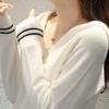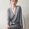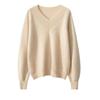 Estilo otoño e invierno cuello en V manga larga holgado punto de cachemira camiseta base moda de mujer versátil color sólido adelgazante suéter cálido