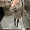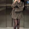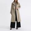 Otoño Estilo Coreano Temperamento Abrigo Cárdigan de Doble Botonadura Top Largo Medio Silueta Drapeada Abrigo Trench con Cinturón Mujer