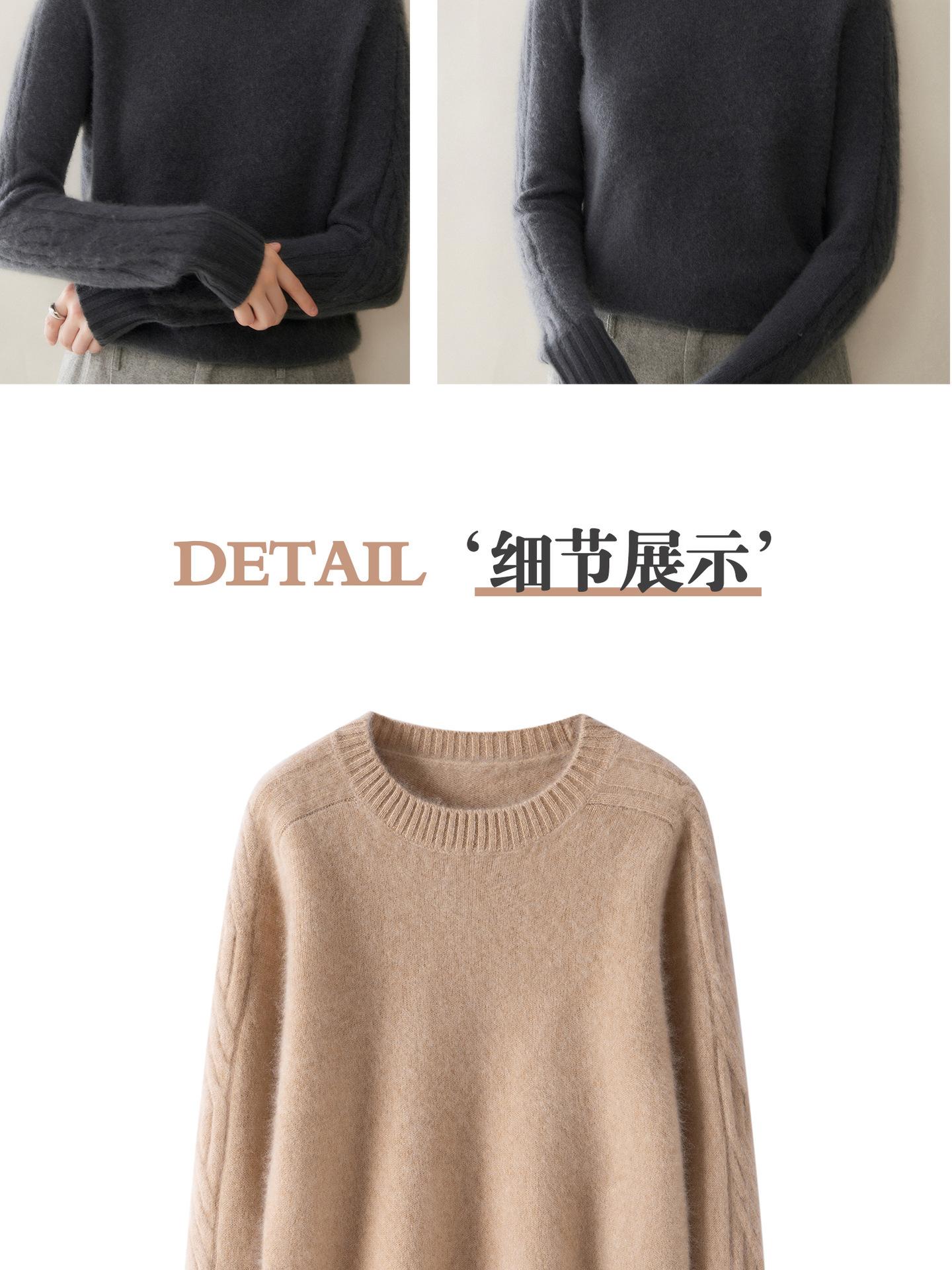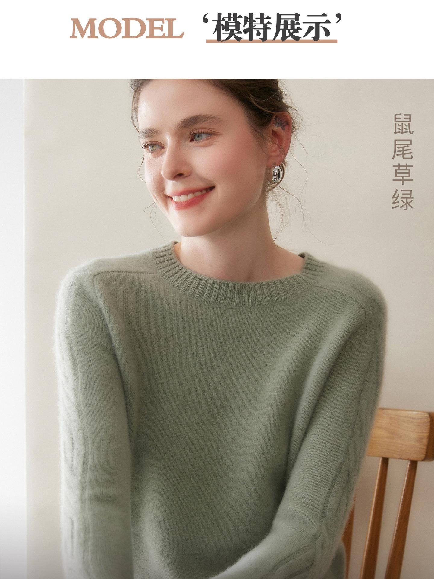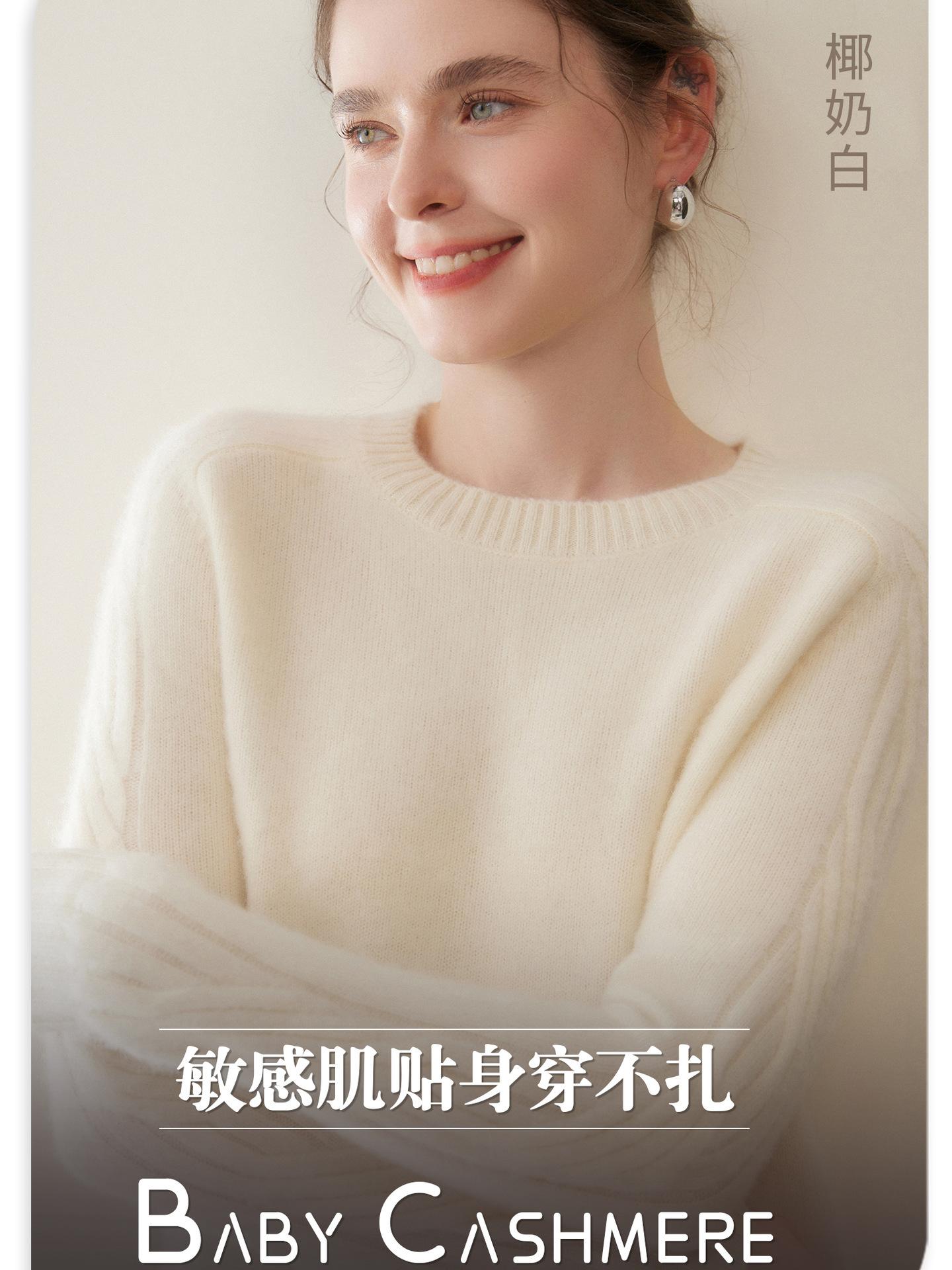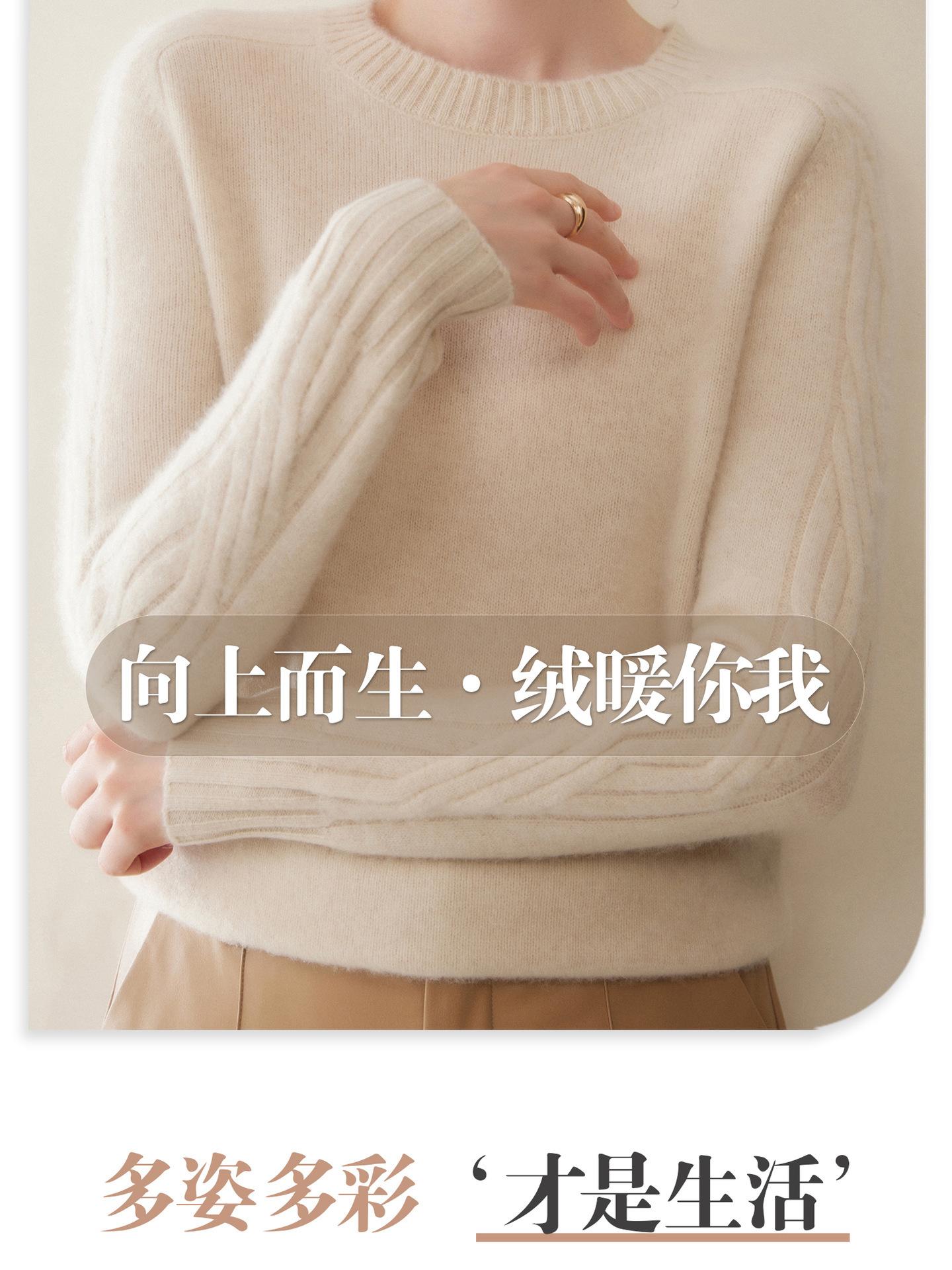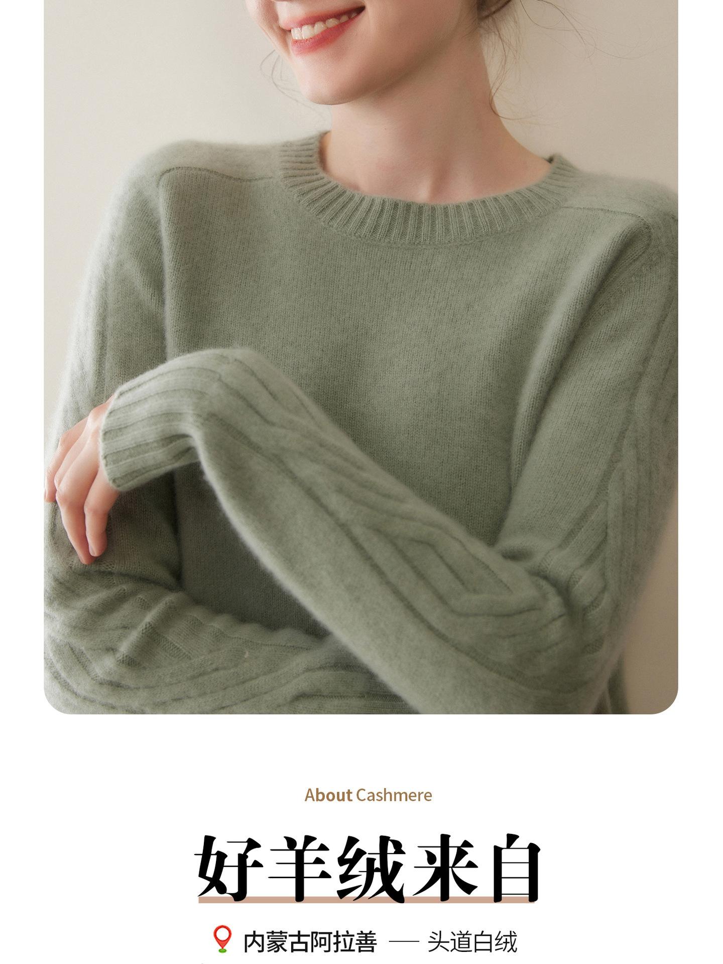 Nueva Ropa de Punto de Cachemira de Otoño e Invierno Suéter de Cachemira de Cuello Redondo para Mujer Grueso Suelto Versátil Manga Larga Suéter Base