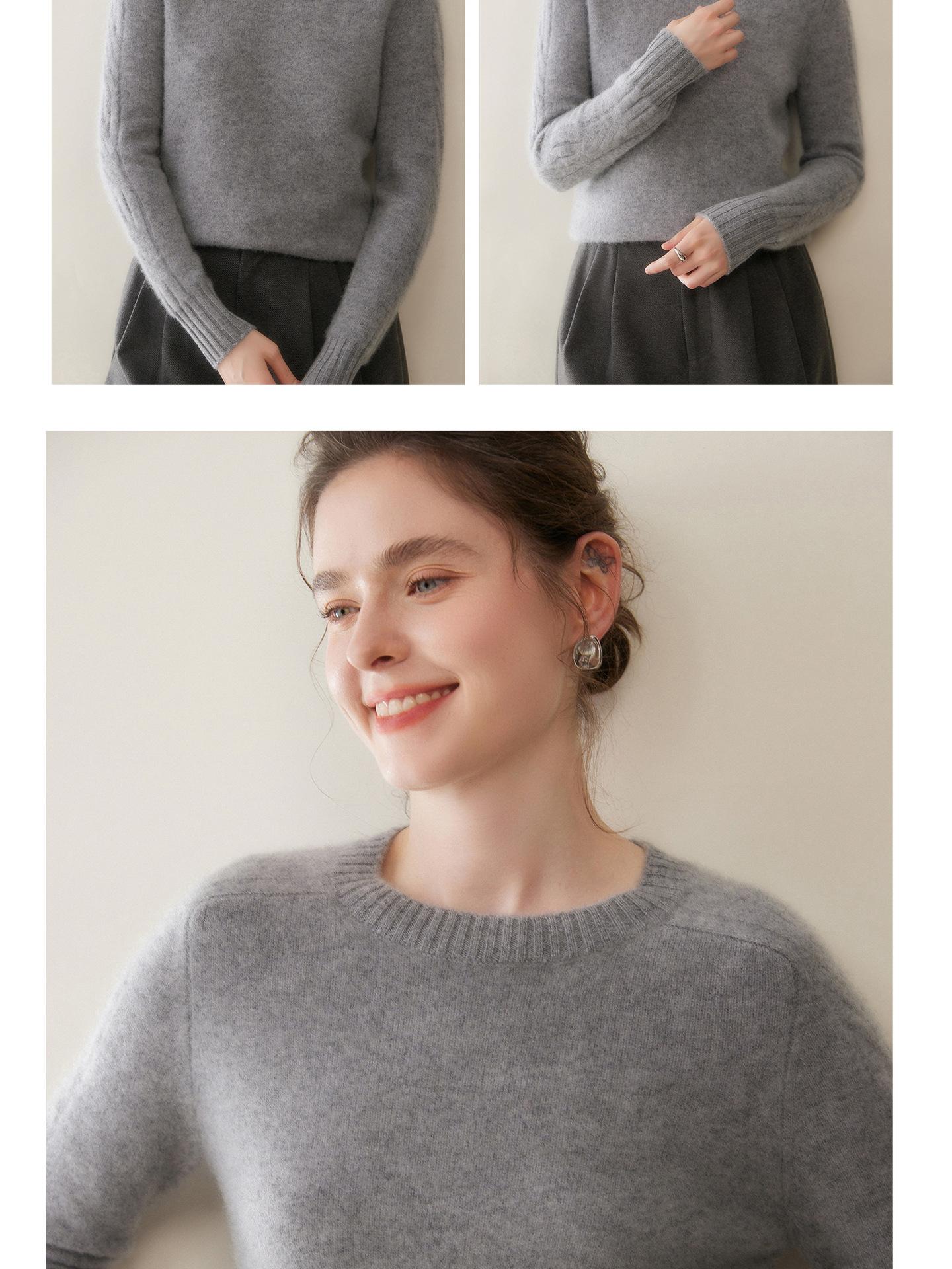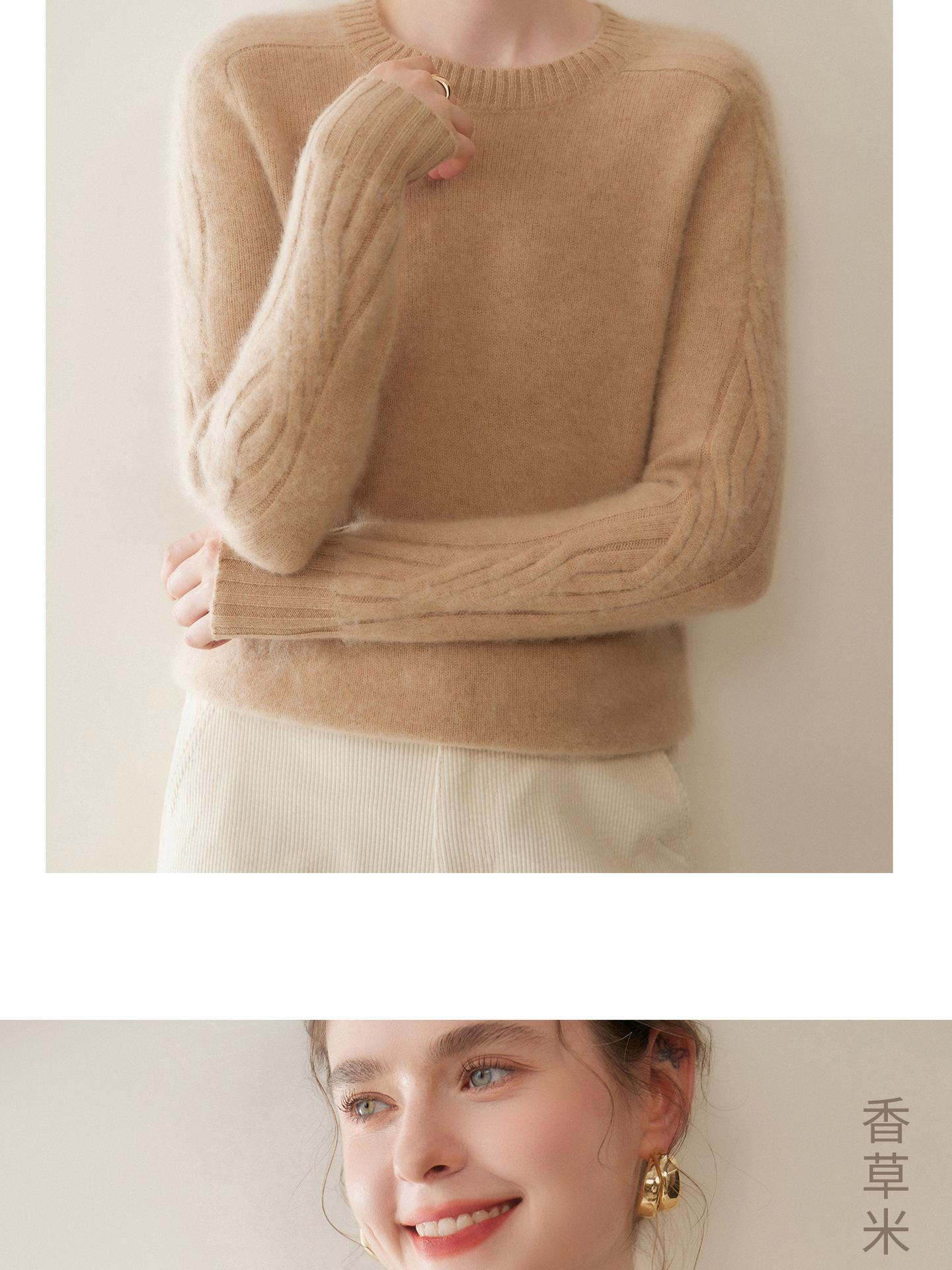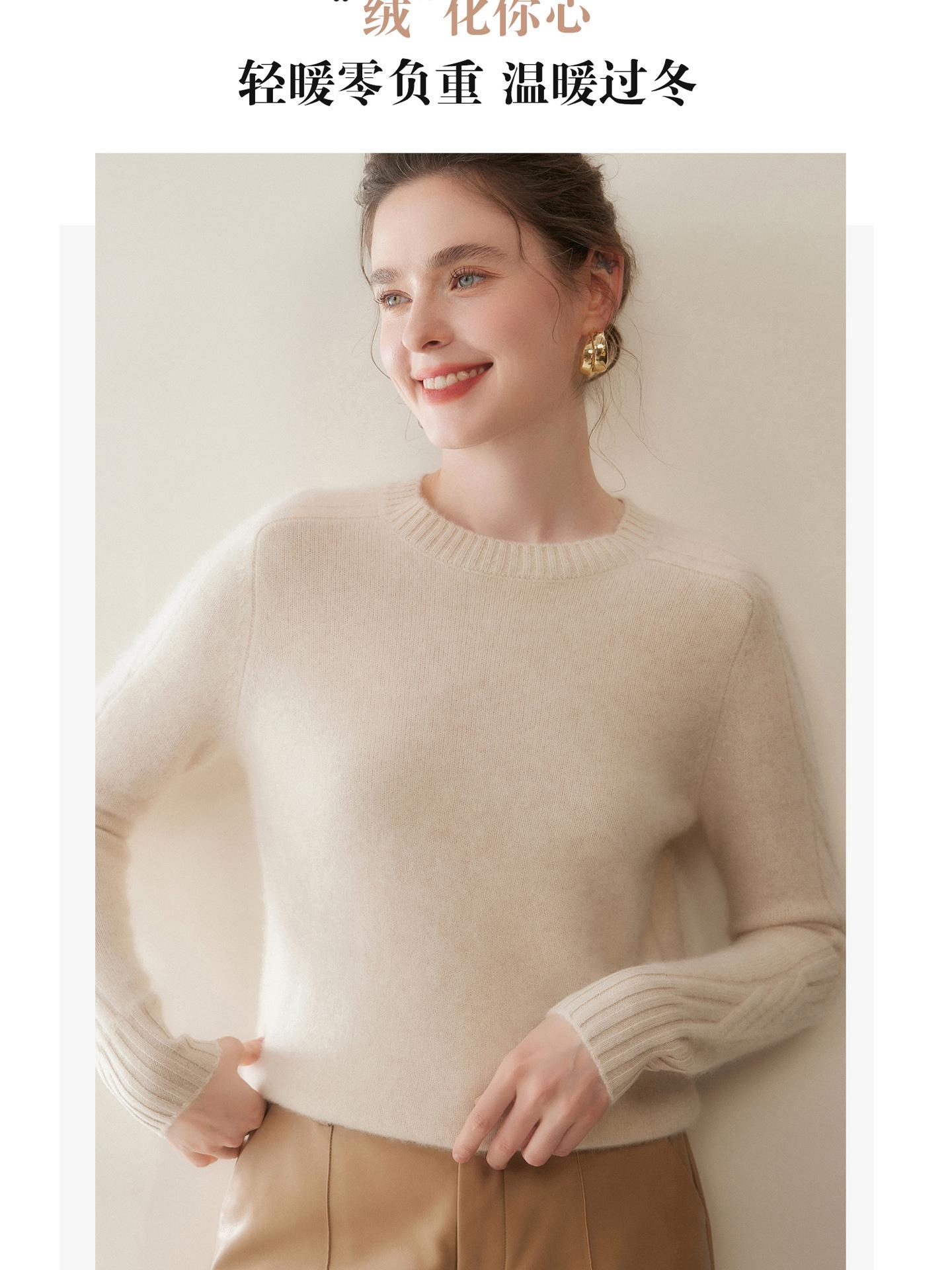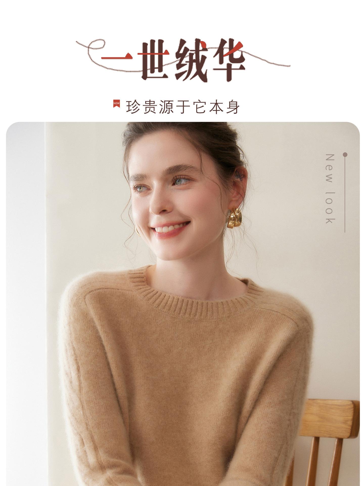 Nueva Ropa de Punto de Cachemira de Otoño e Invierno Suéter de Cachemira de Cuello Redondo para Mujer Grueso Suelto Versátil Manga Larga Suéter Base