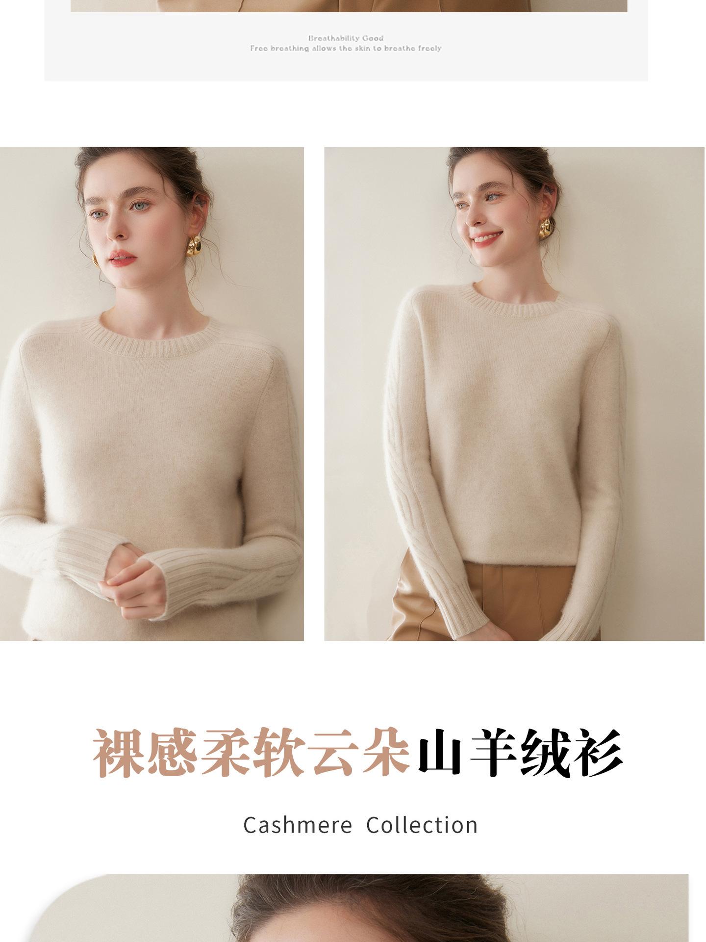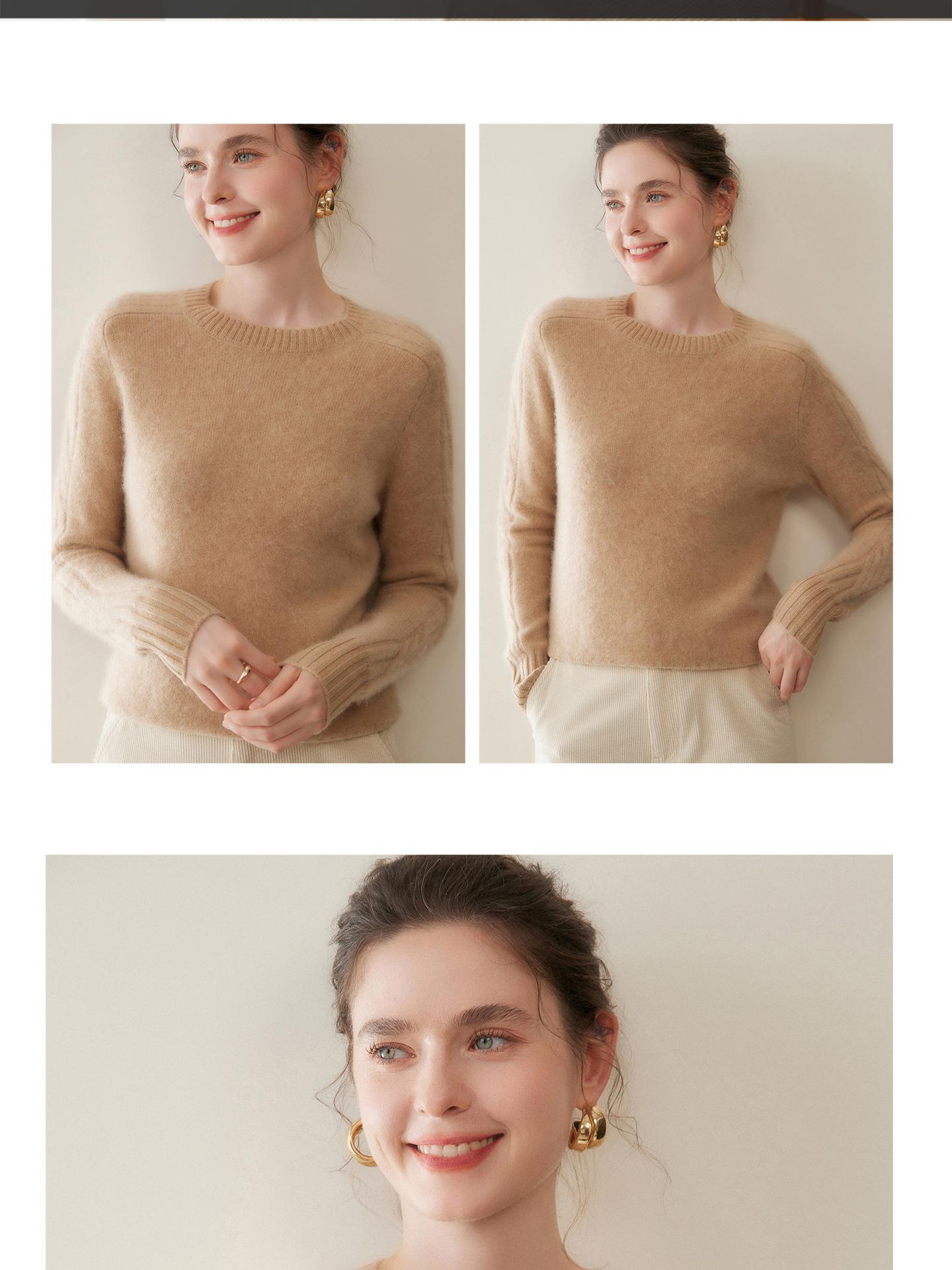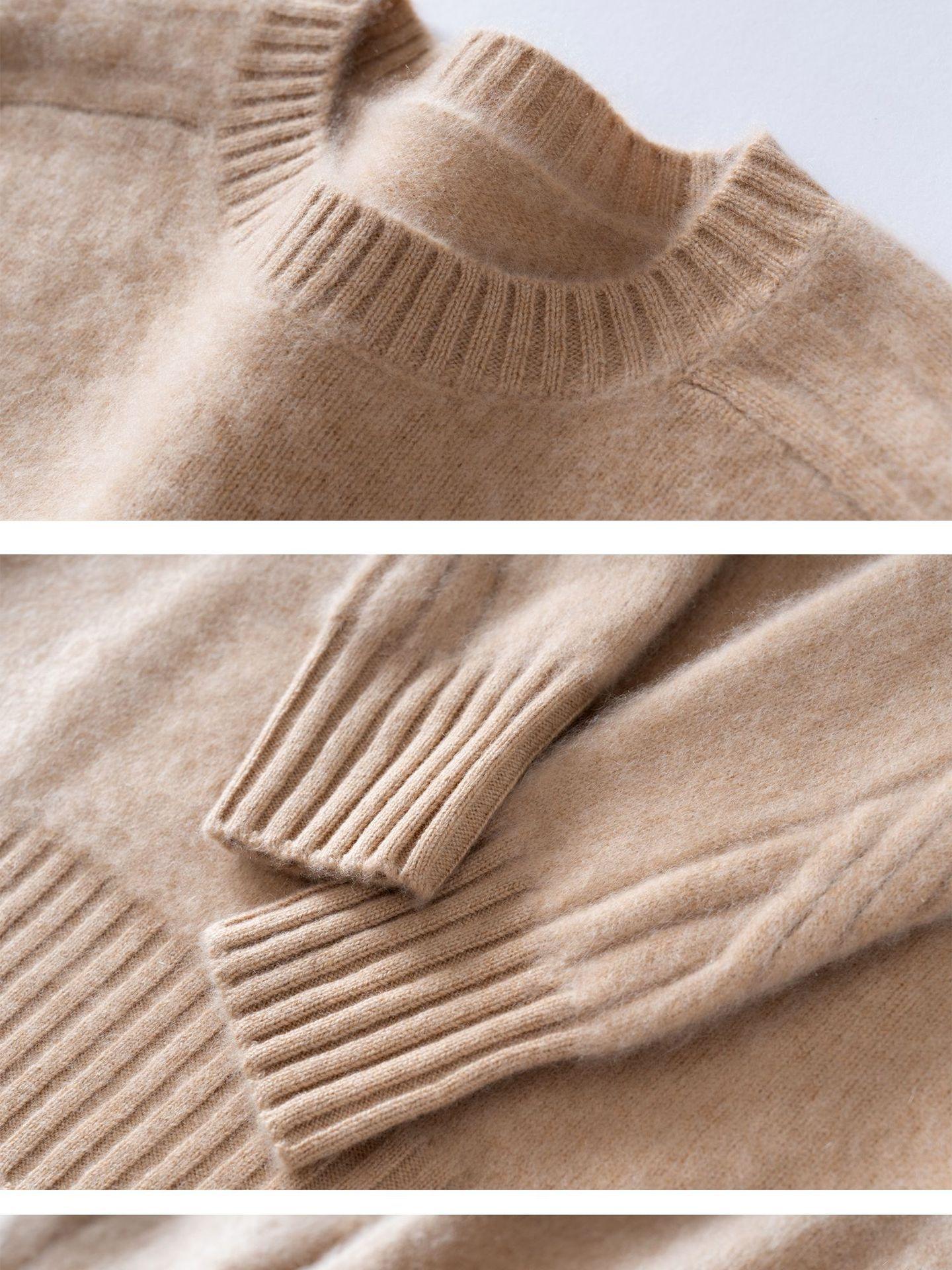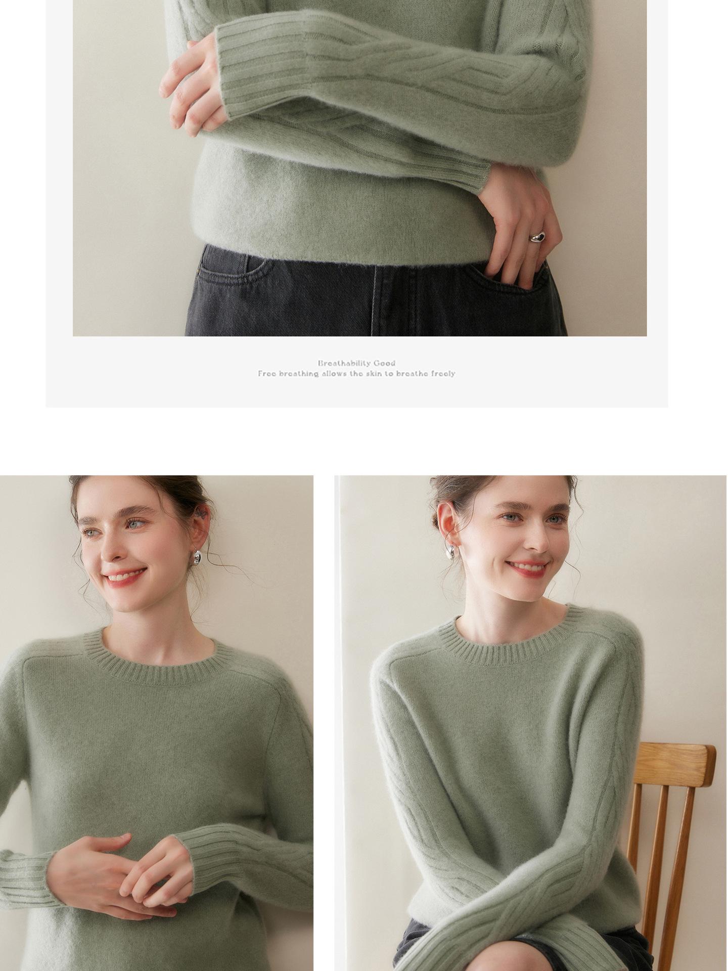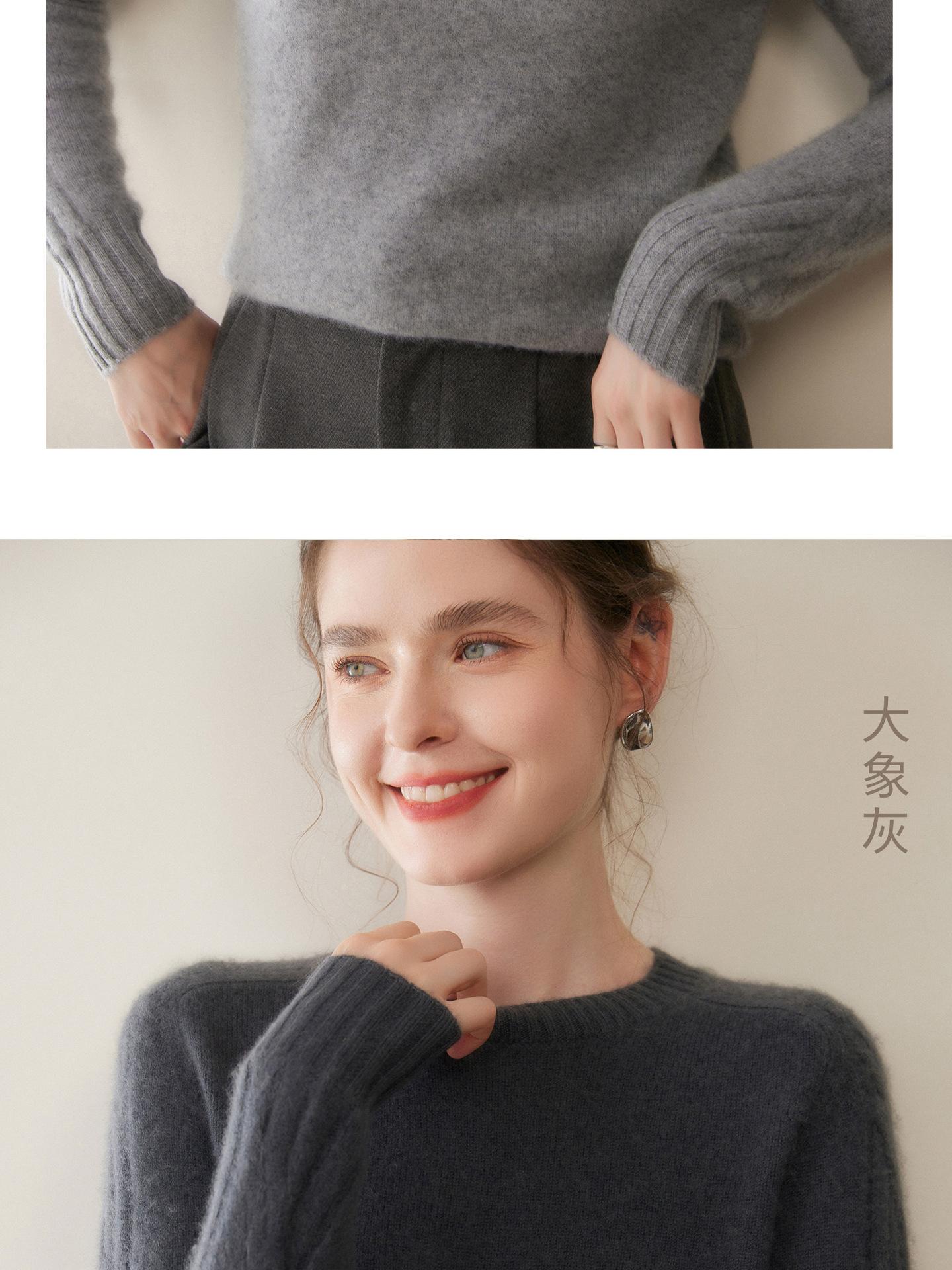 Nueva Ropa de Punto de Cachemira de Otoño e Invierno Suéter de Cachemira de Cuello Redondo para Mujer Grueso Suelto Versátil Manga Larga Suéter Base