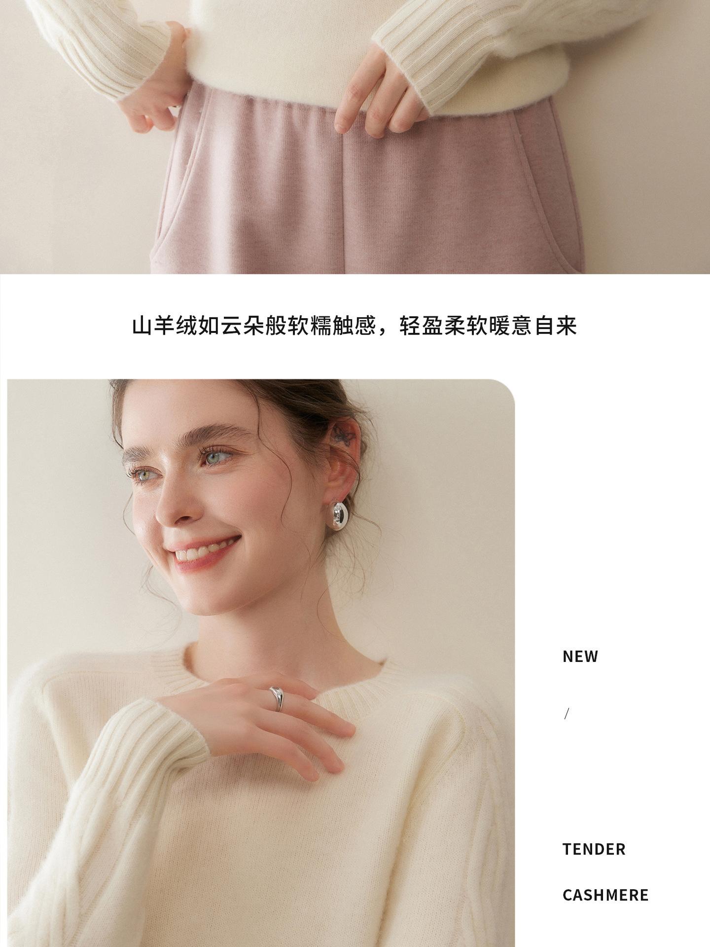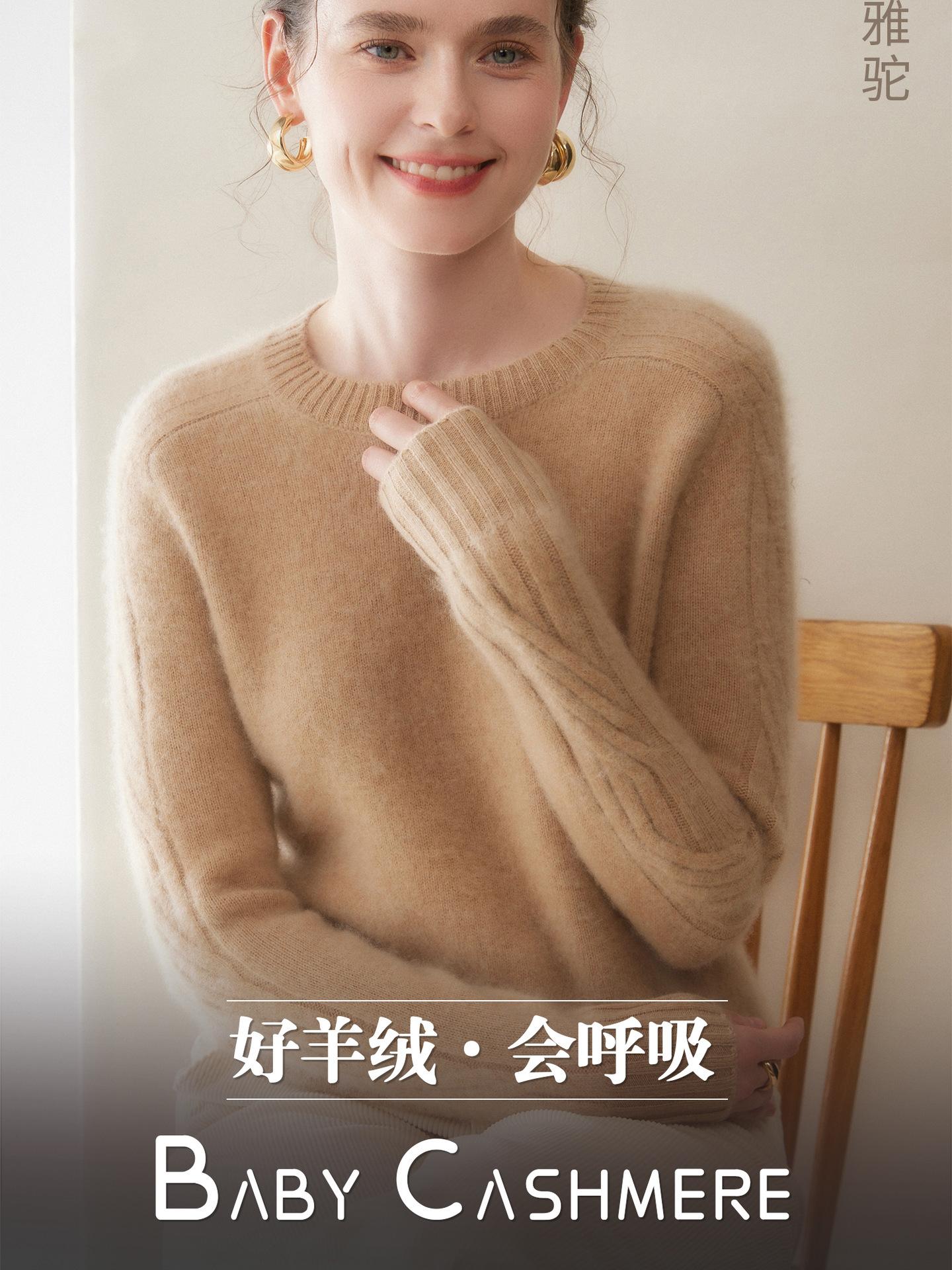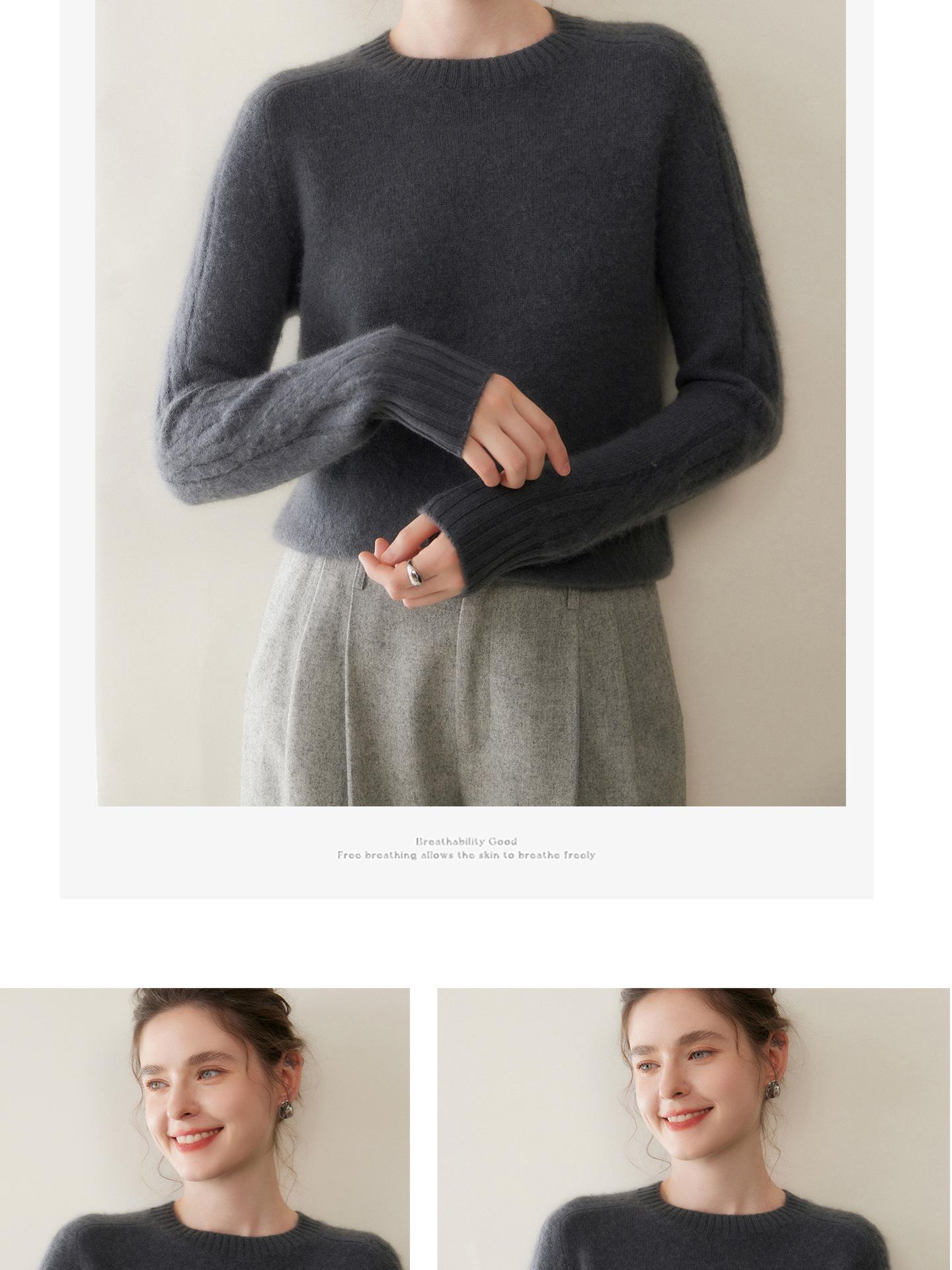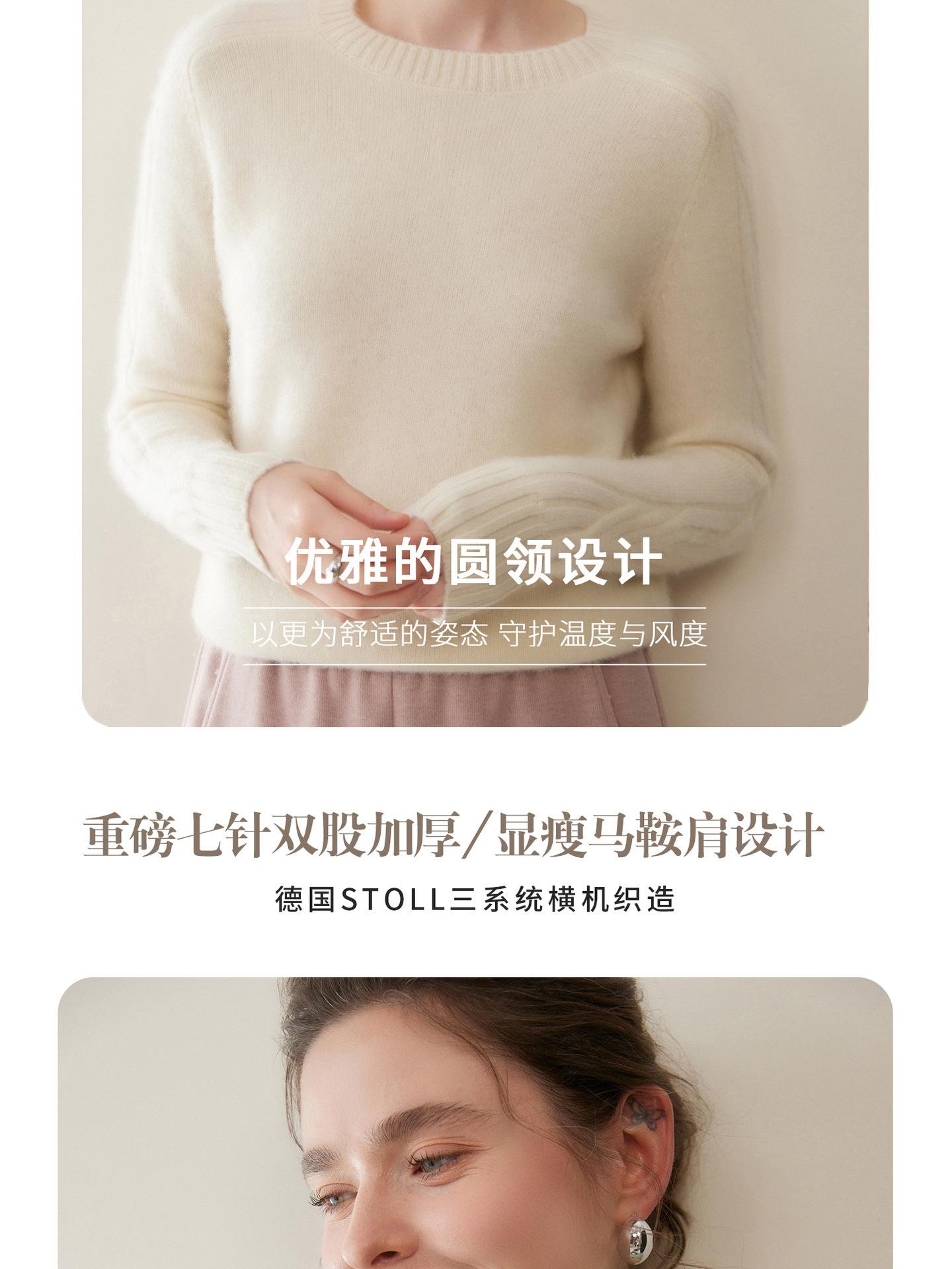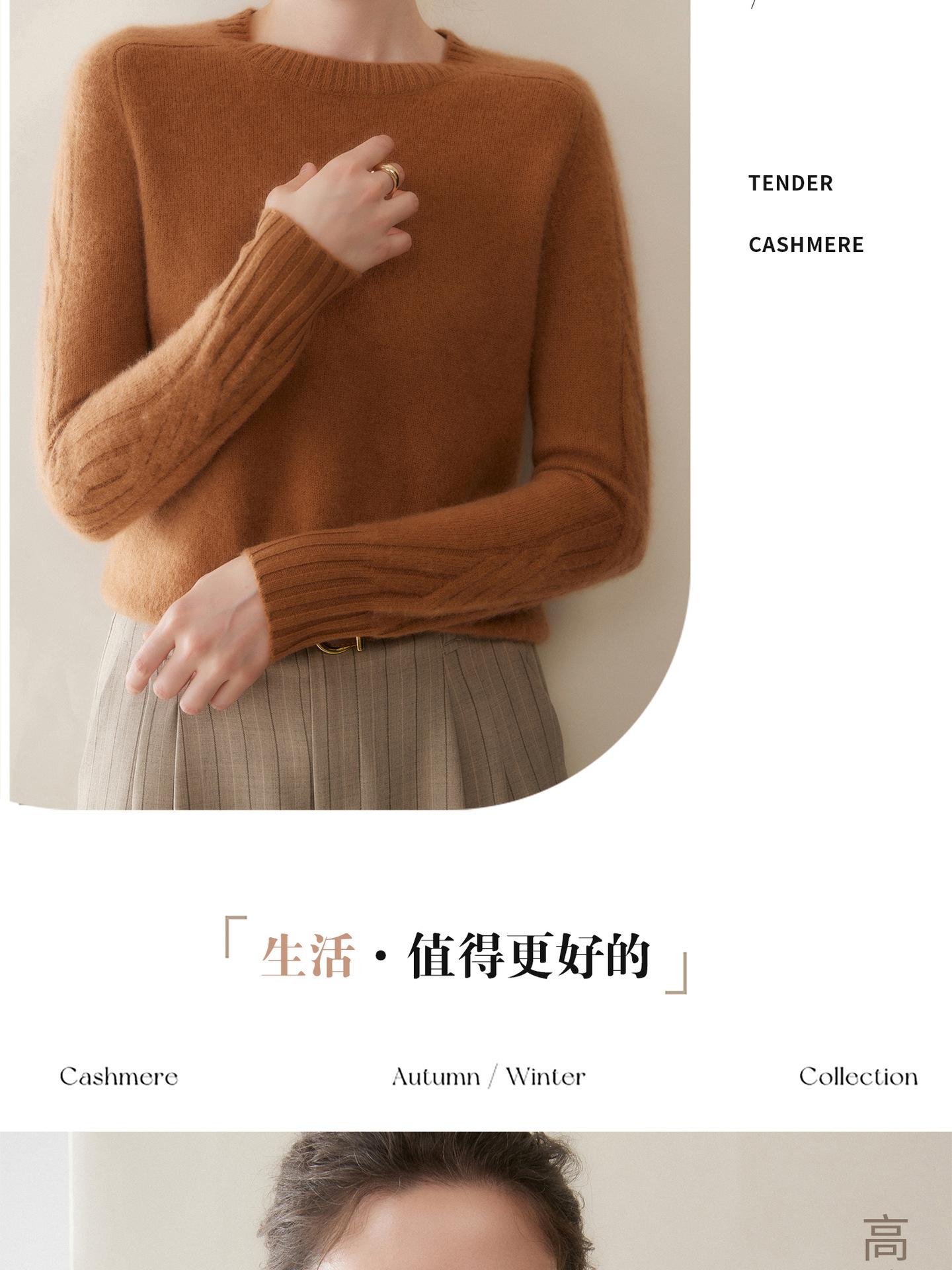 Nueva Ropa de Punto de Cachemira de Otoño e Invierno Suéter de Cachemira de Cuello Redondo para Mujer Grueso Suelto Versátil Manga Larga Suéter Base