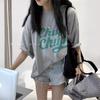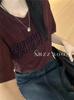 Primavera/Verano 2025/Camiseta de Manga Corta con Estampado de Letras Flocado Retro Americano para Mujer, Estilo Coreano Casual Holgada Adelgazante Camiseta Básica