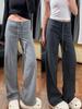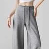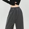 Pantalones de chándal grises de plátano para mujer Primavera Otoño 2025 Nuevo estilo Drapeados Sueltos Pierna recta Casual Petite Pantalones de pierna ancha