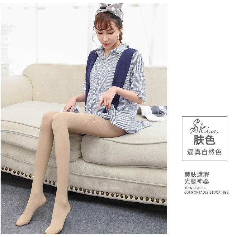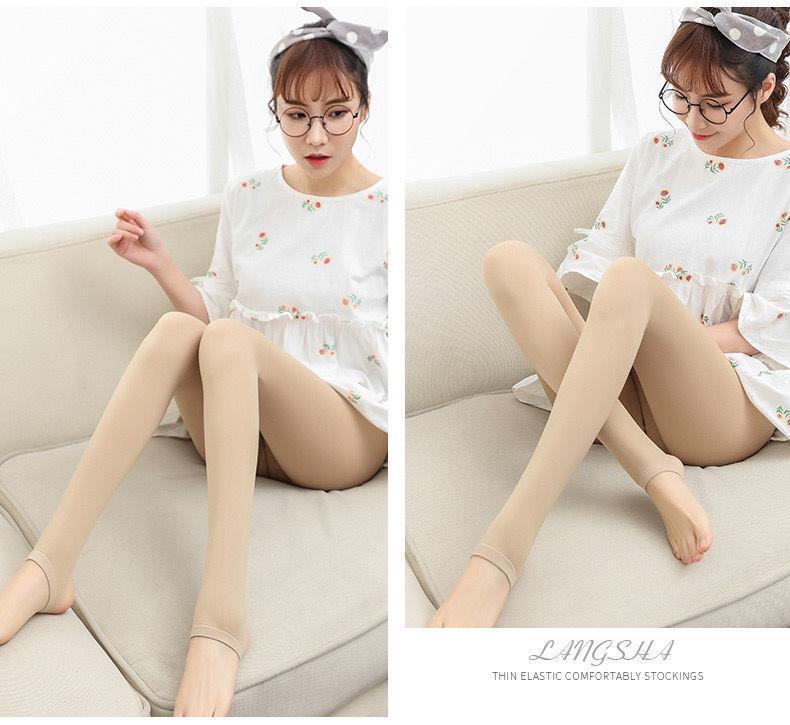 Leggings de talla grande color carne para otoño e invierno para mujer, medias gruesas con pies, más terciopelo, artefacto ligero para piernas, leggings calcetines sensación desnuda