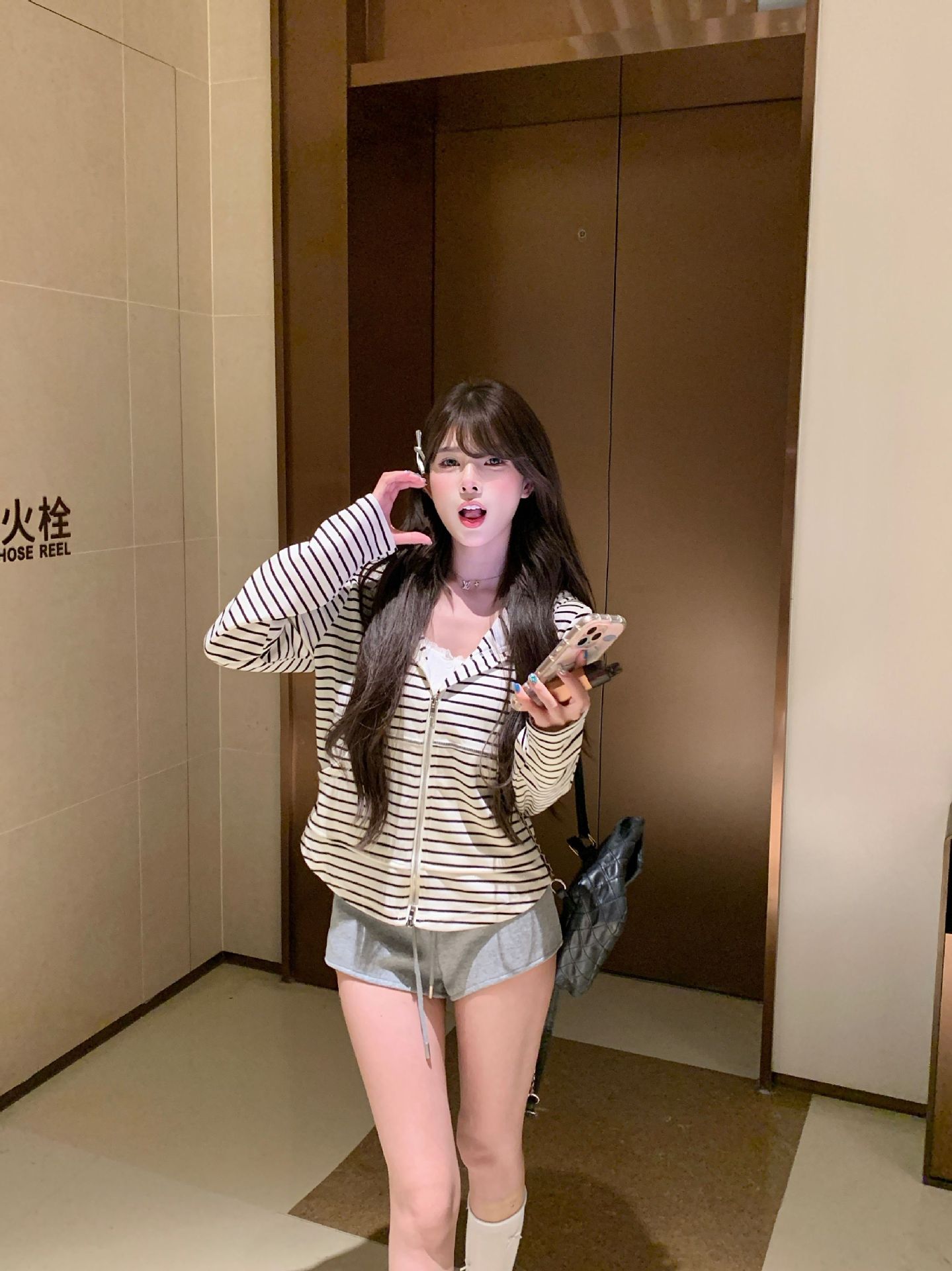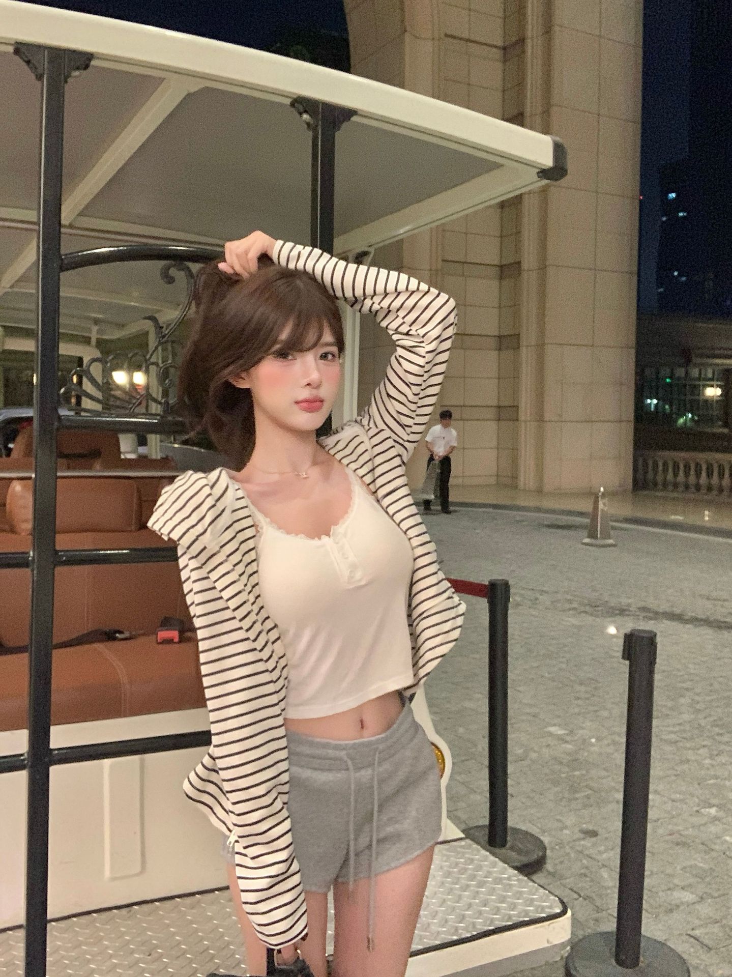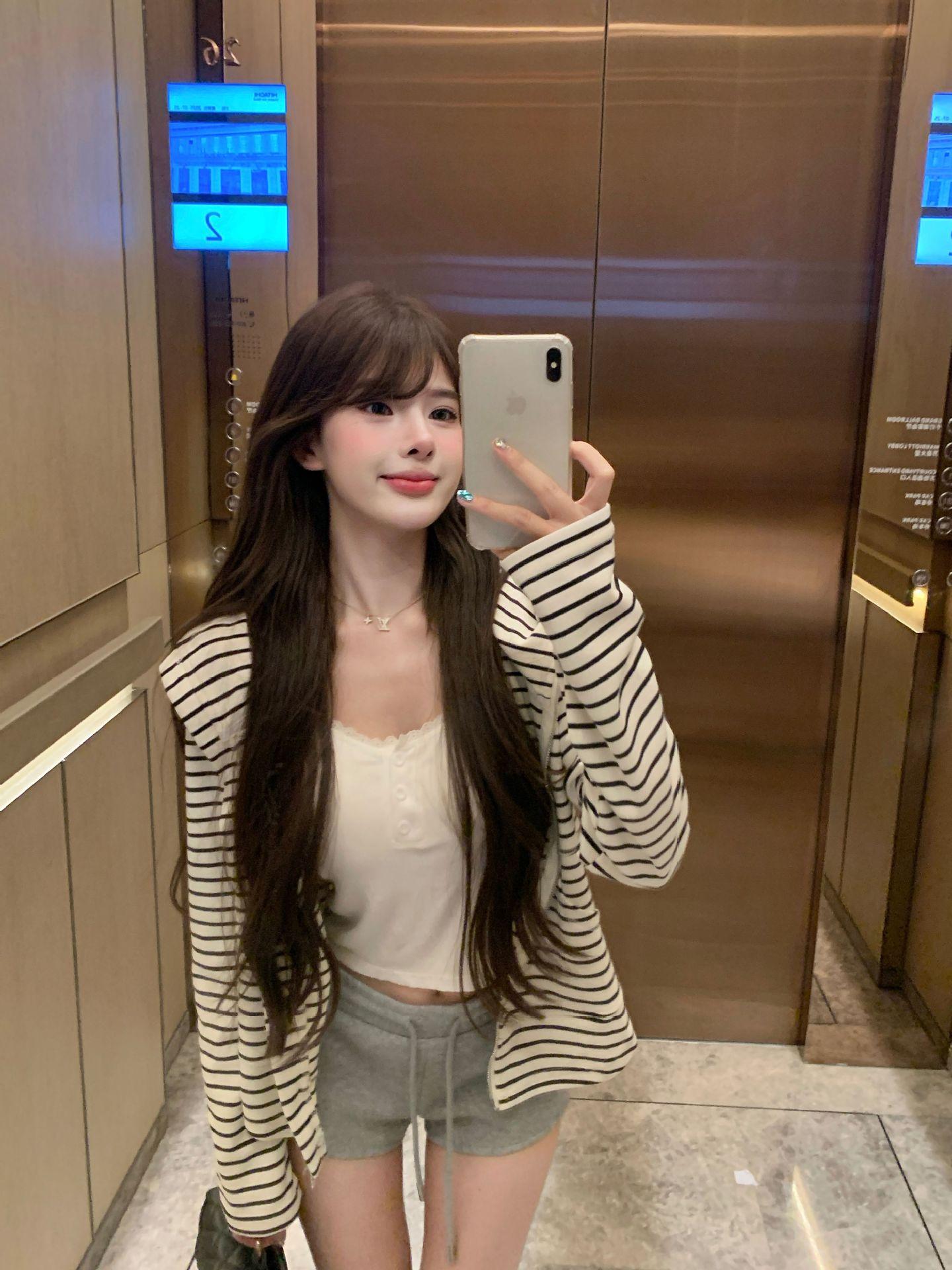 Chaqueta Cárdigan con Capucha a Rayas para Mujer Nuevo Otoño 2025 Estilo Coreano Petite Casual Holgada Delgada Camisa Protector Solar