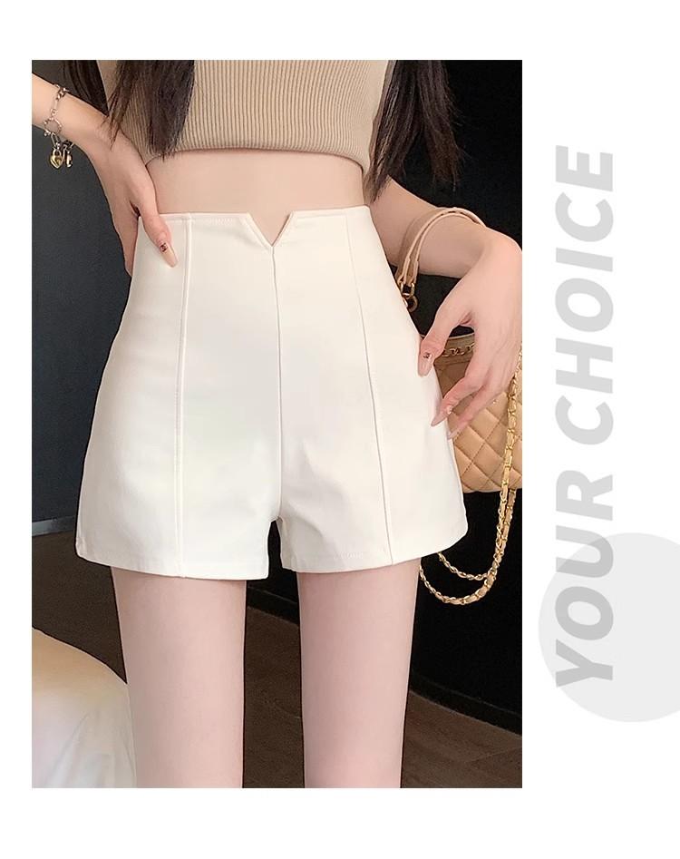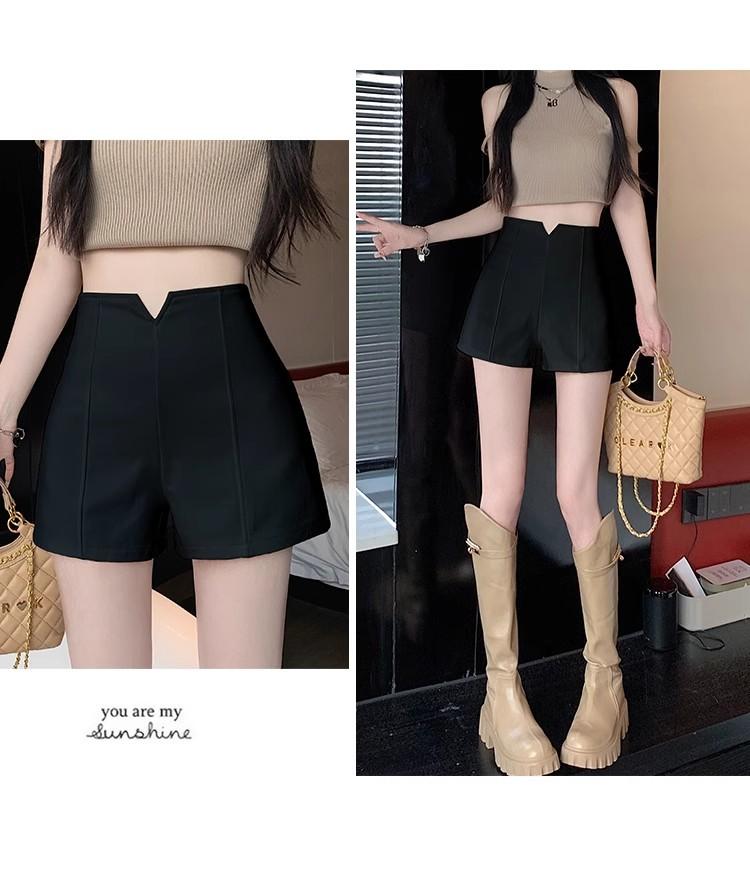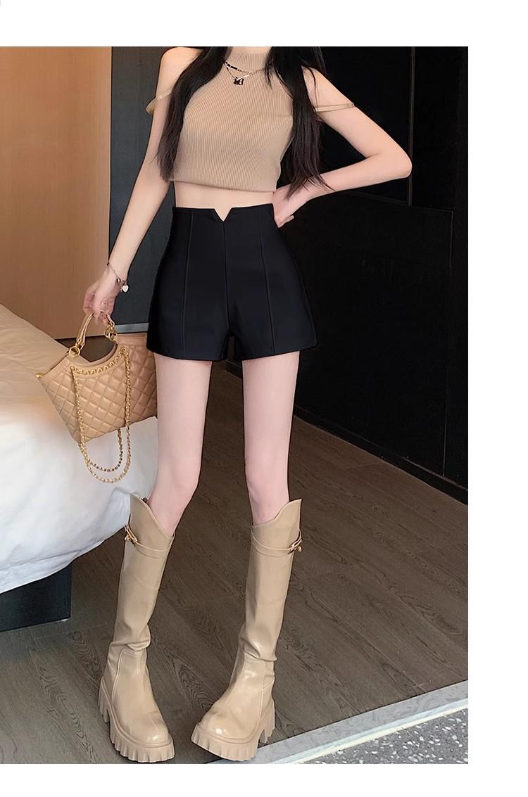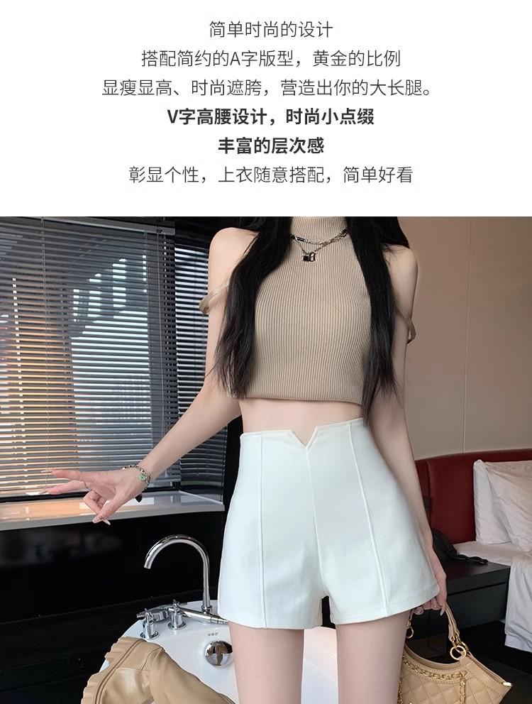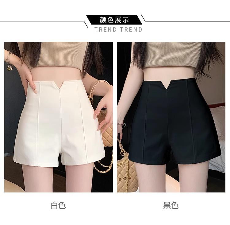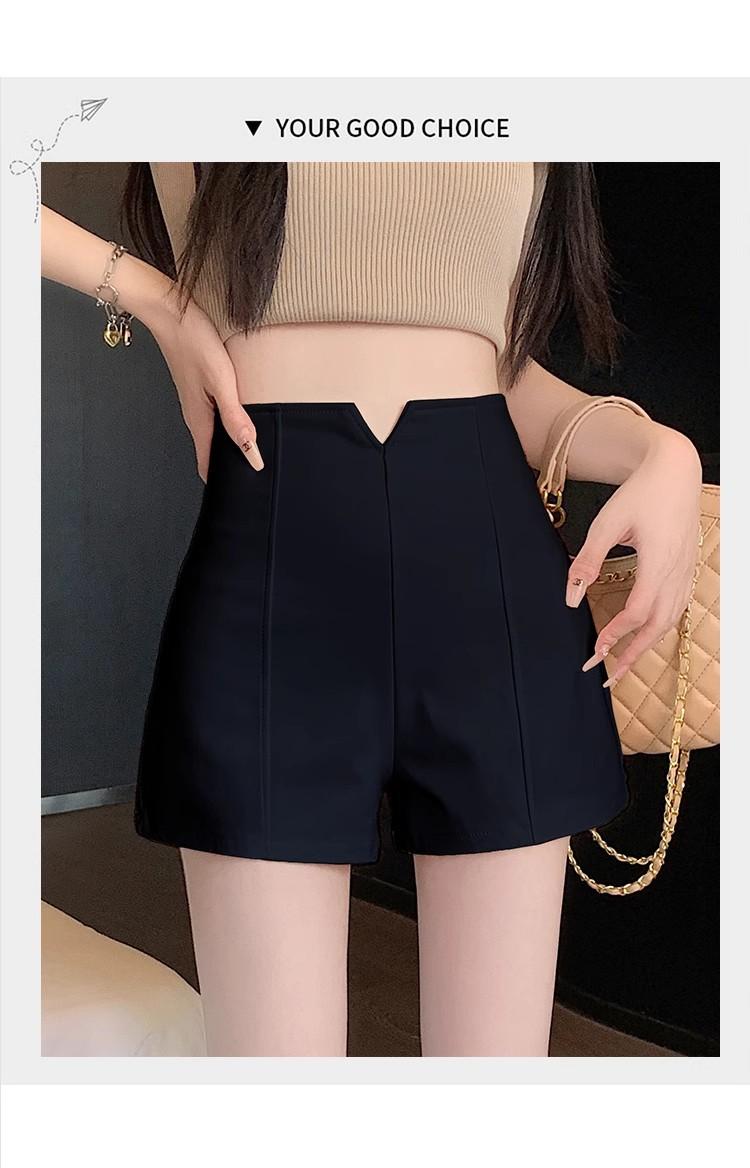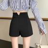 Pantalones cortos de traje negros para mujer 2024 Nuevo estilo caliente Verano Cintura alta Petite Elástico Ropa exterior Línea A Casual Pantalones cortos calientes