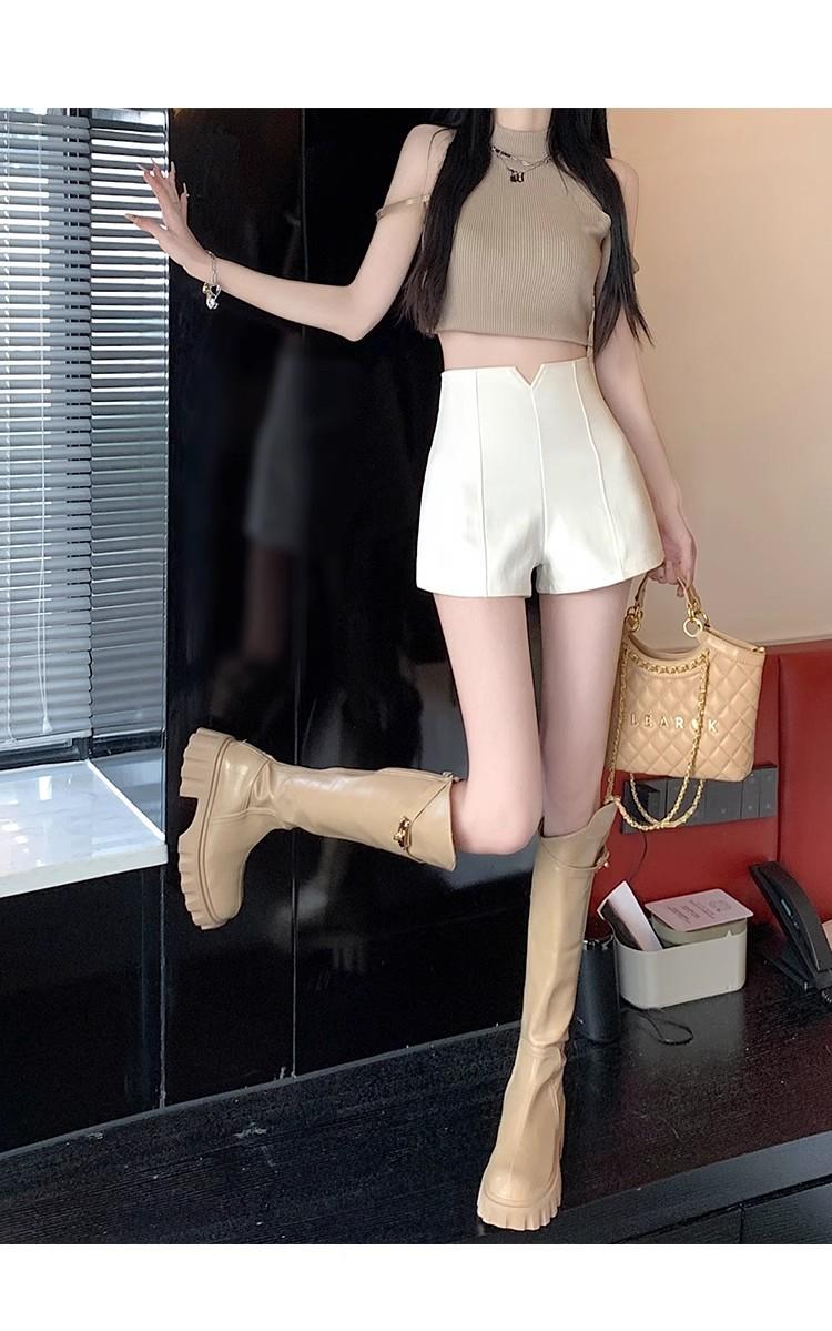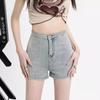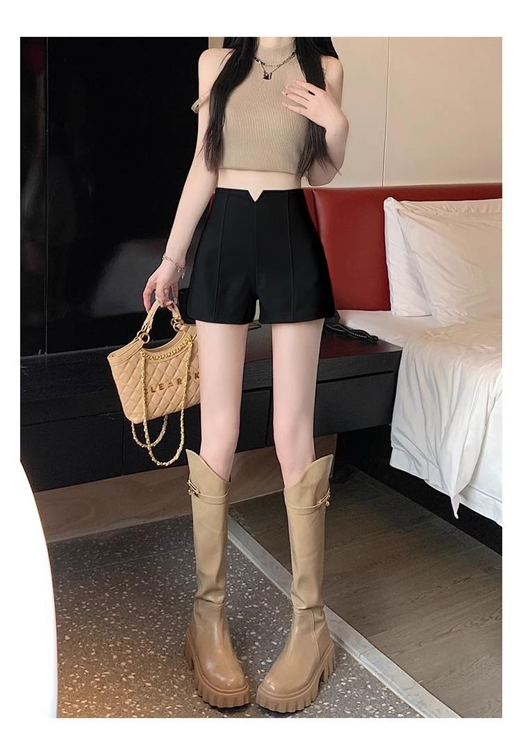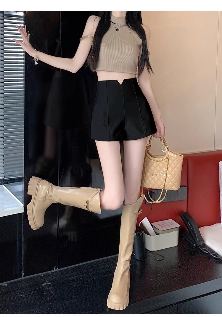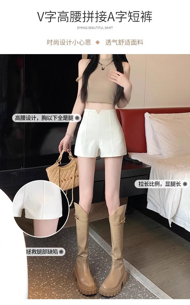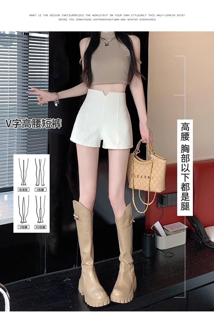 Pantalones cortos de traje negros para mujer 2024 Nuevo estilo caliente Verano Cintura alta Petite Elástico Ropa exterior Línea A Casual Pantalones cortos calientes
