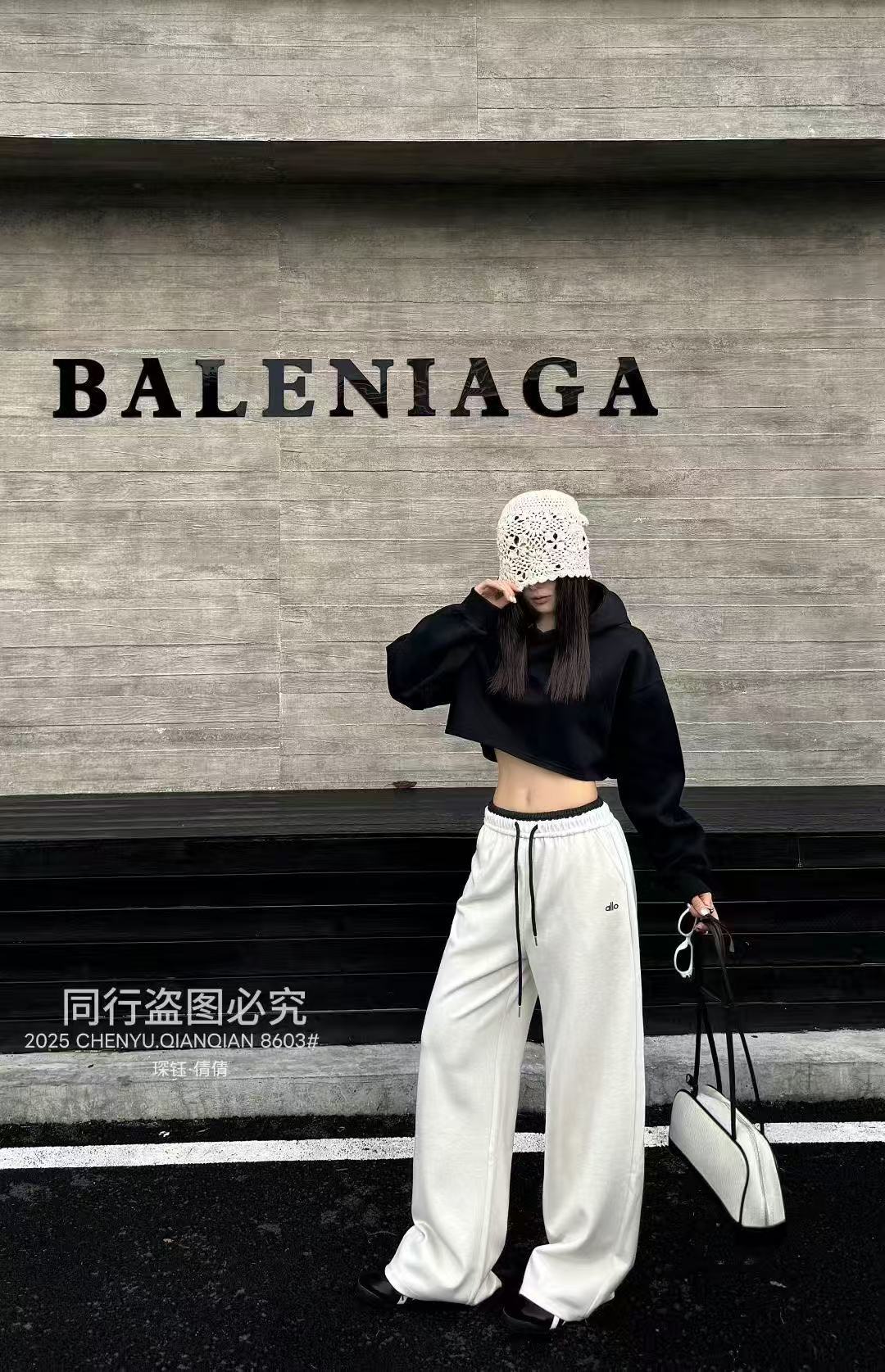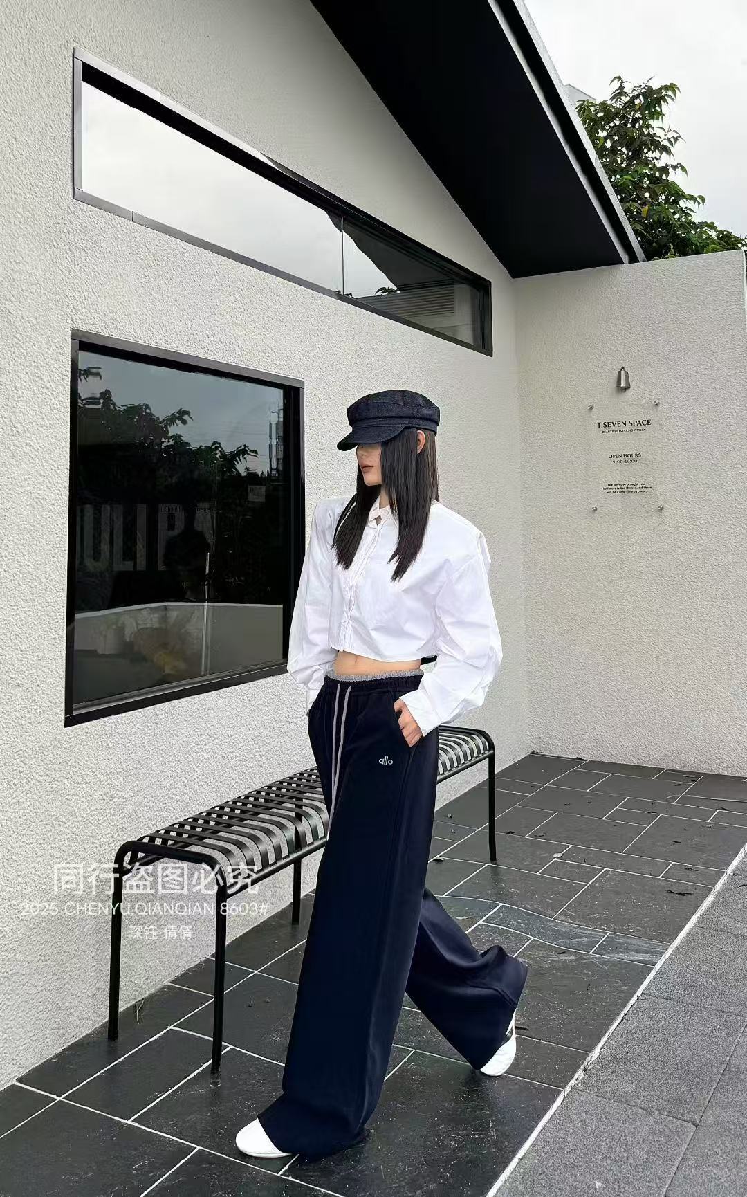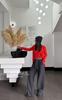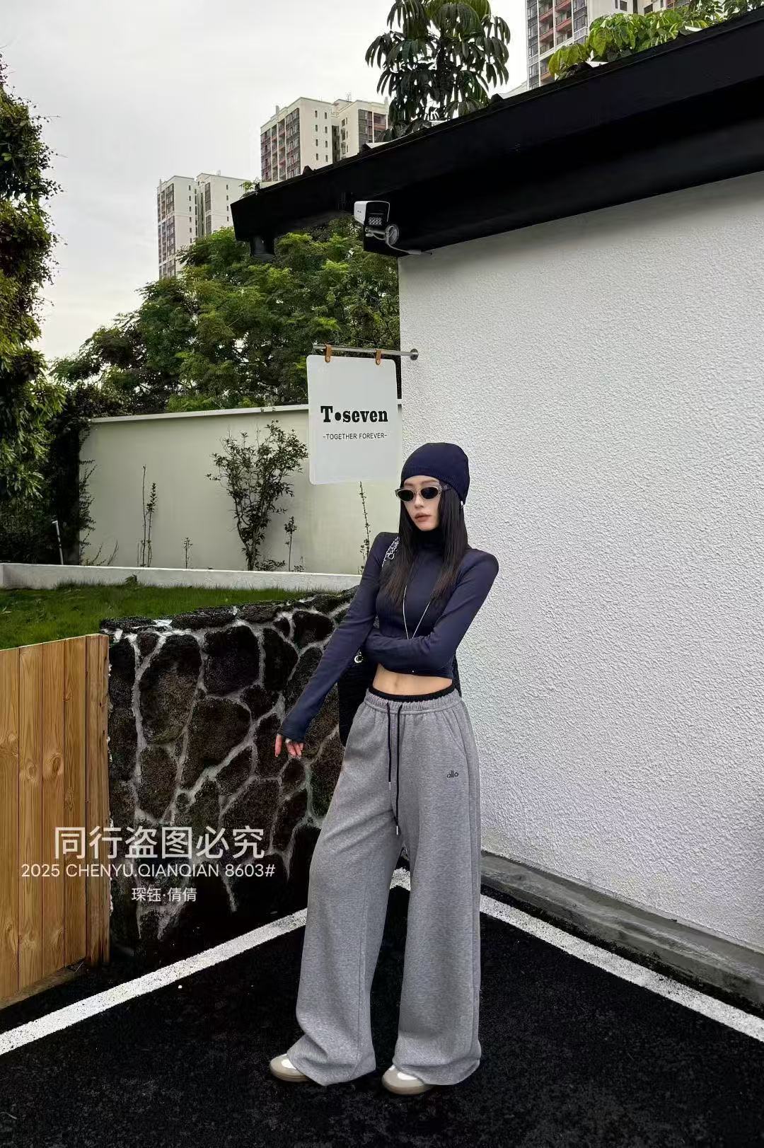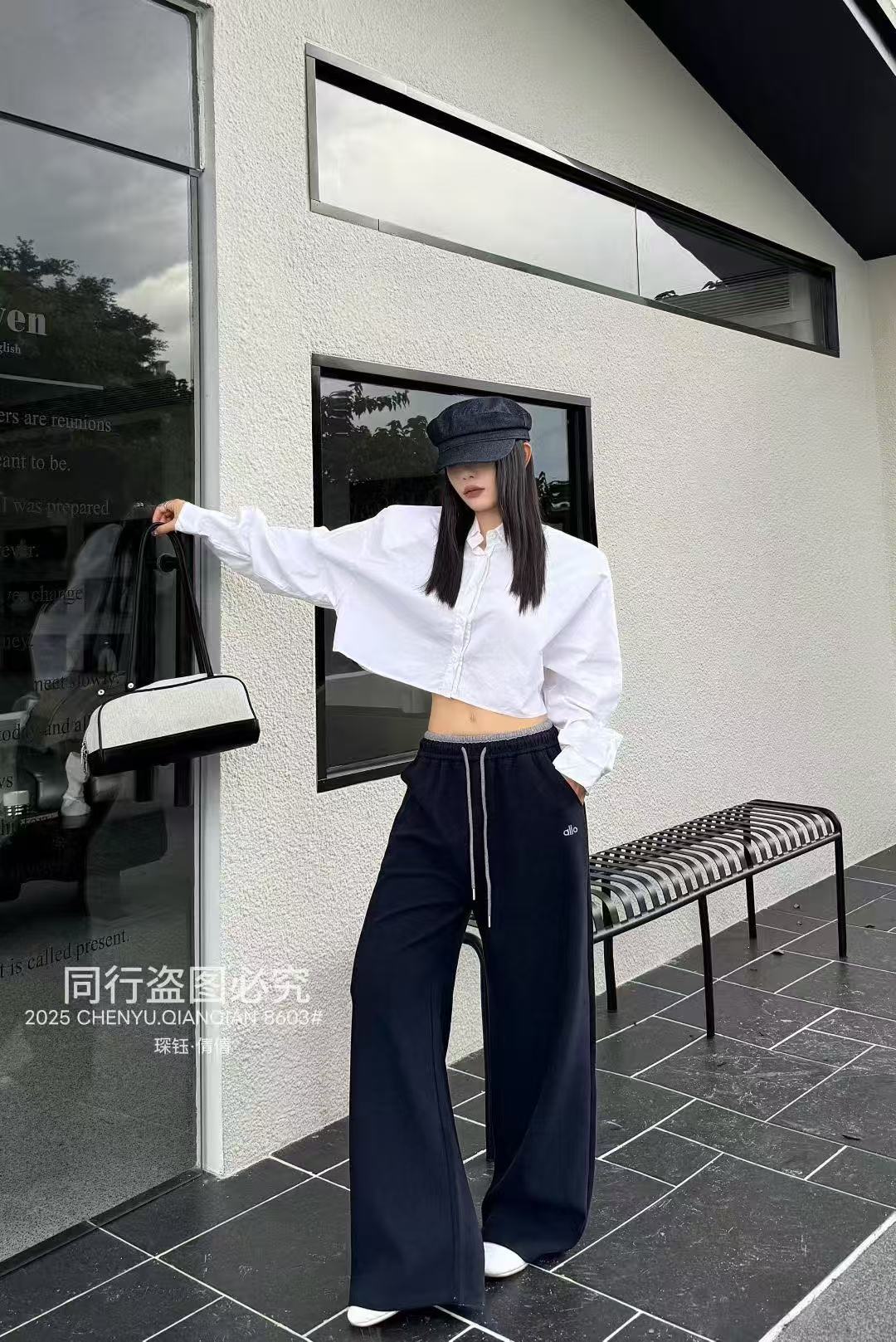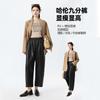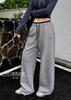 Pantalones casuales de patchwork estilo coreano con bloques de color, cordón elástico de cintura alta, para mujer, otoño, holgados, drapeados, adelgazantes, de pierna ancha, pantalones rectos