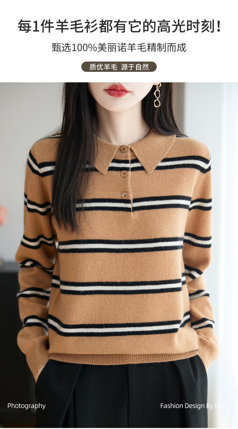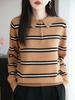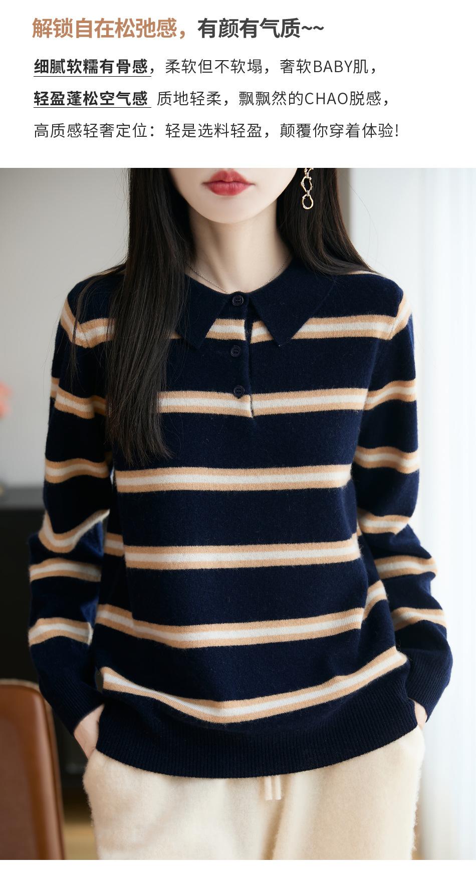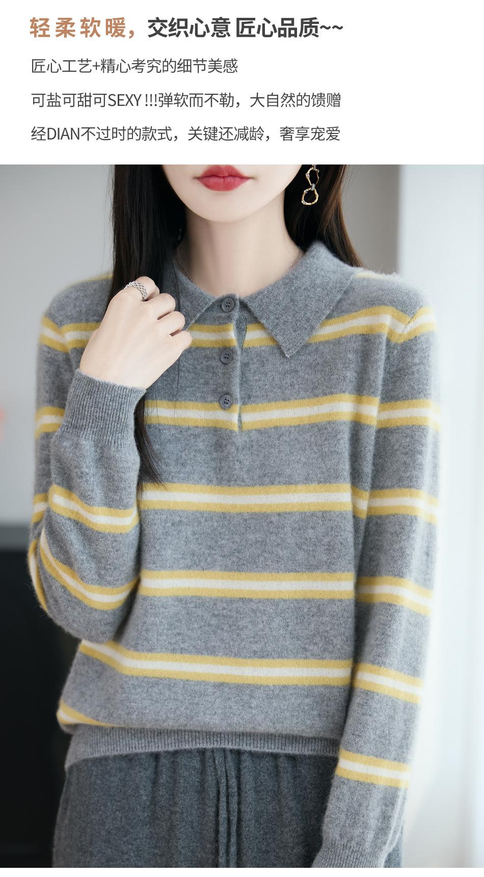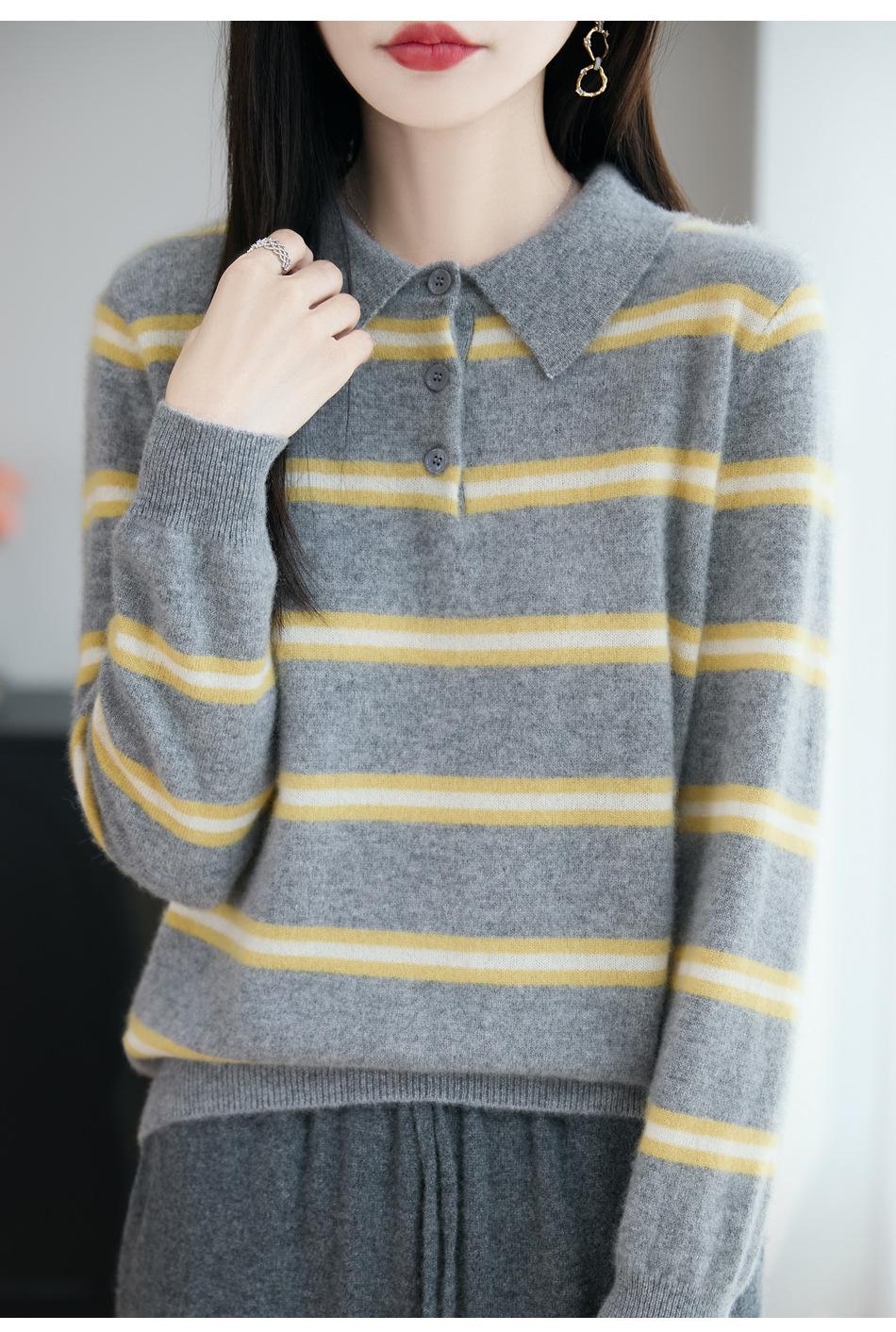 Otoño/Invierno 2025 Nueva Prendas de Punto de Lana Pura Jersey de Mujer Cuello POLO Bloque de Color Raya Suelto Manga Larga Suéter Básico