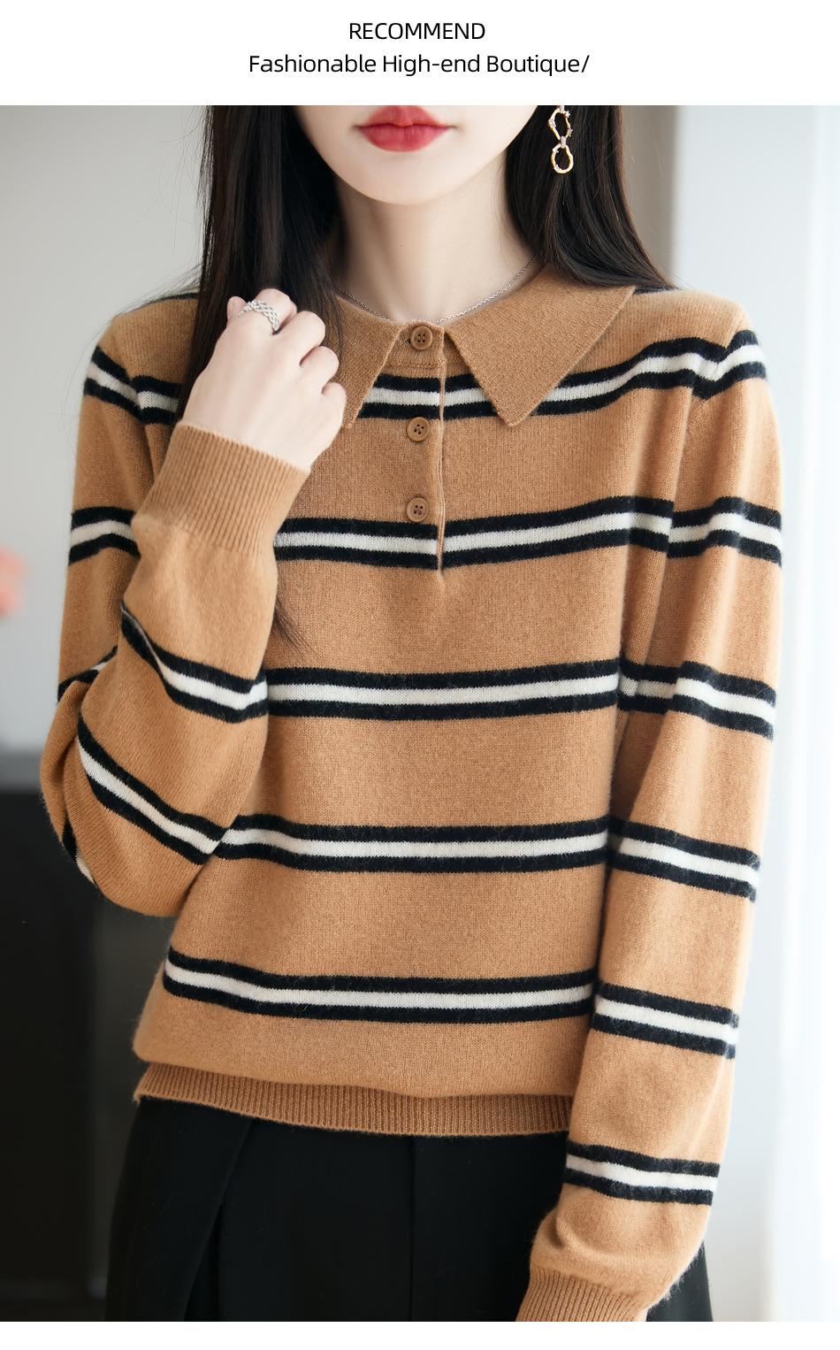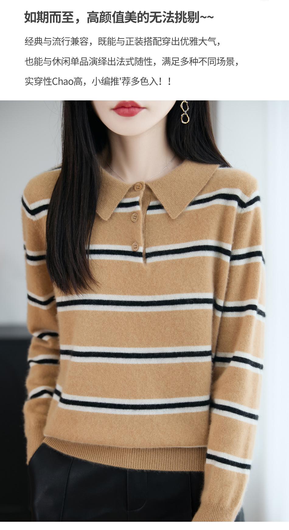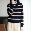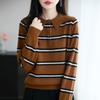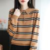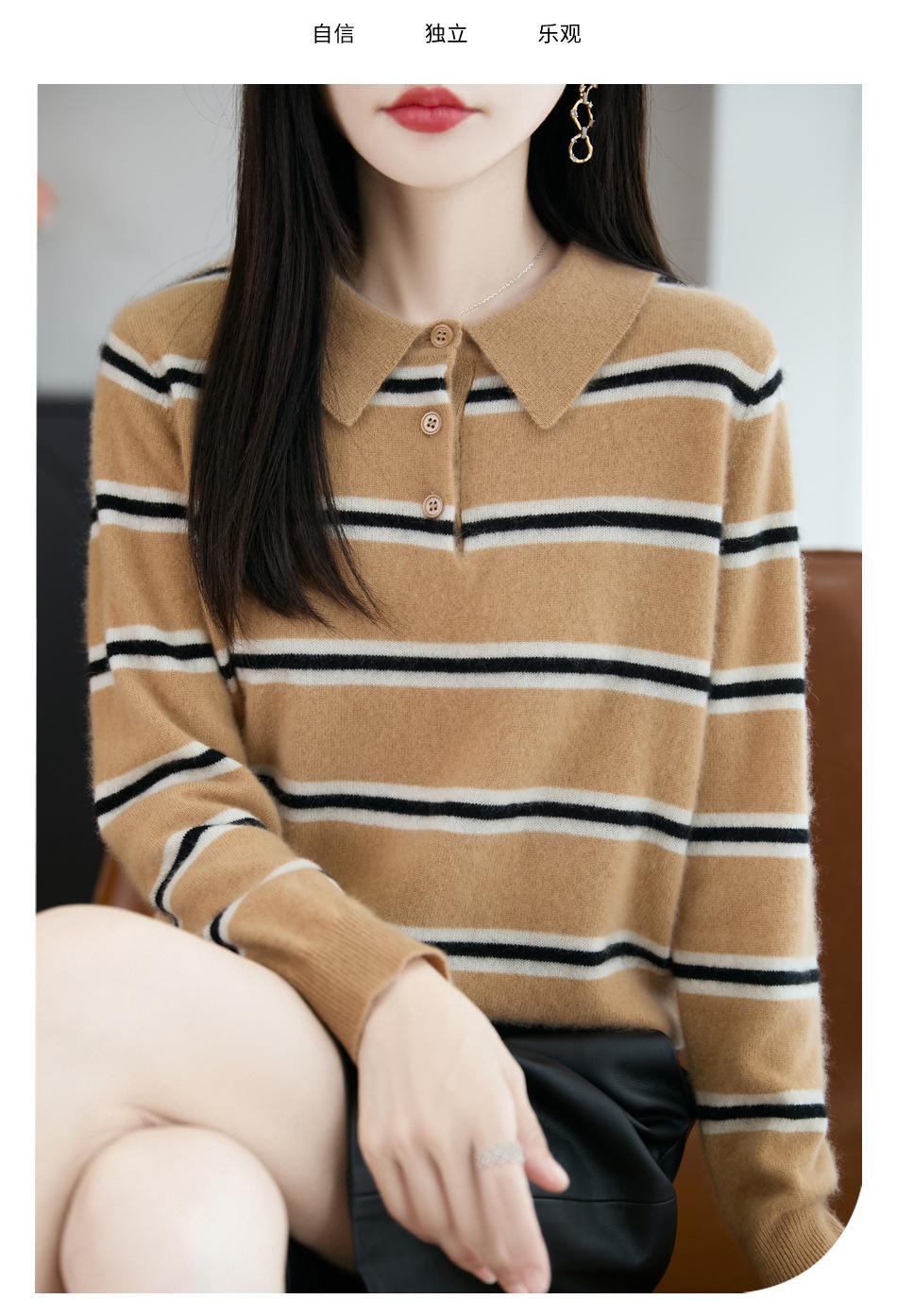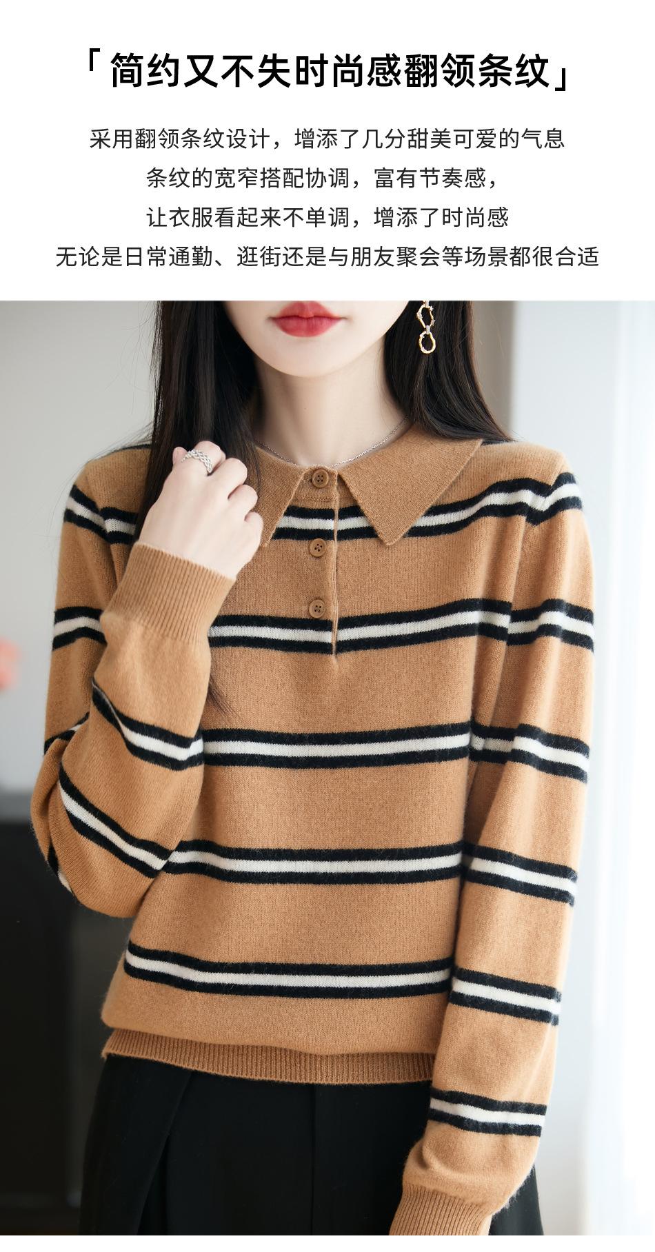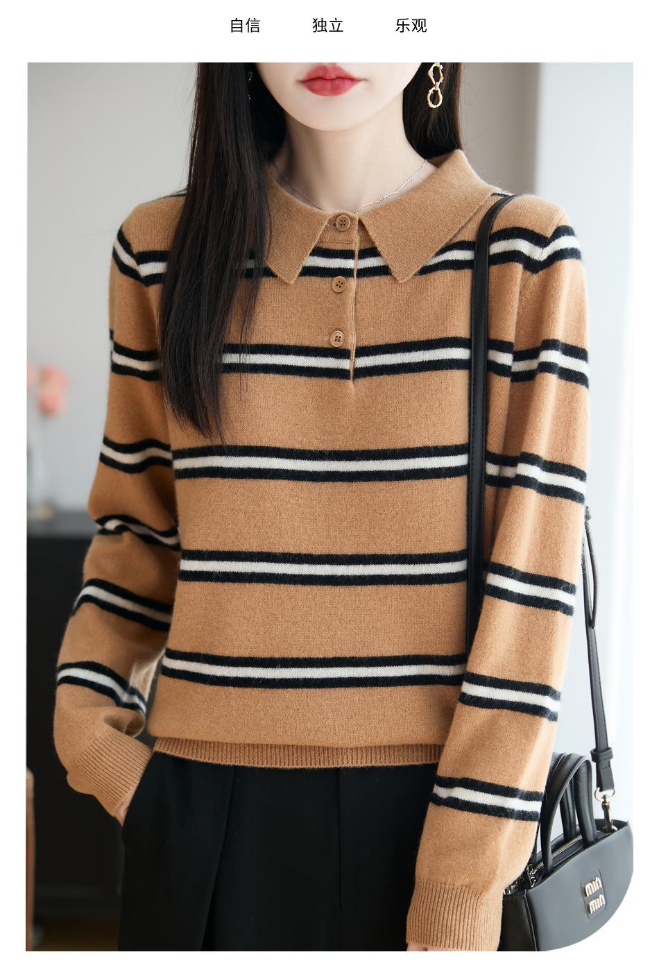 Otoño/Invierno 2025 Nueva Prendas de Punto de Lana Pura Jersey de Mujer Cuello POLO Bloque de Color Raya Suelto Manga Larga Suéter Básico