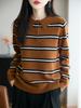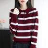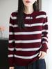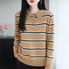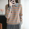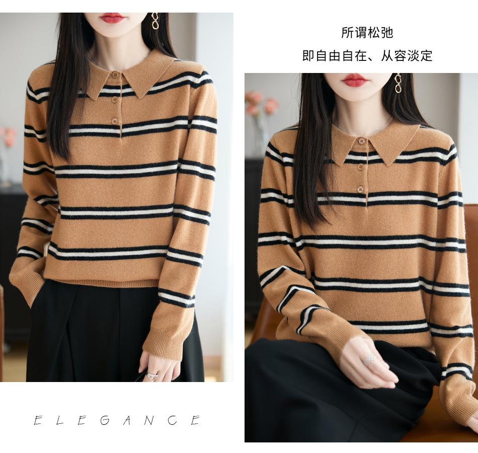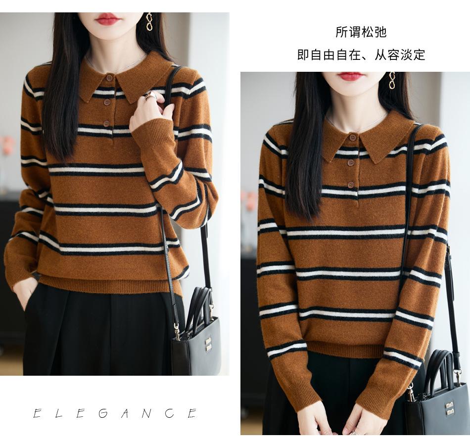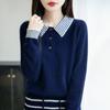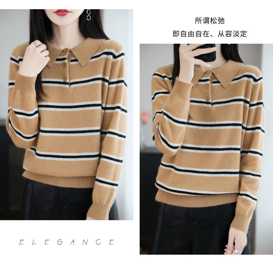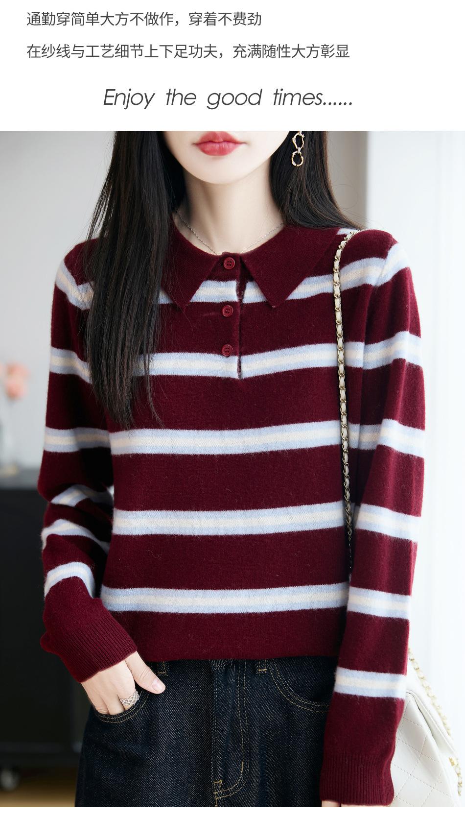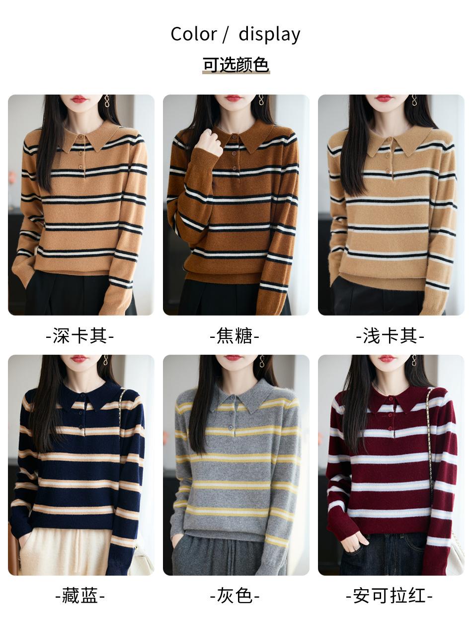 Otoño/Invierno 2025 Nueva Prendas de Punto de Lana Pura Jersey de Mujer Cuello POLO Bloque de Color Raya Suelto Manga Larga Suéter Básico