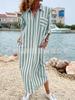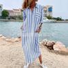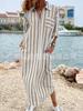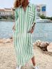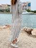 Ropa de Mujer Transfronteriza Rayada Manga Corta Popular de Amazon Algodón y Lino Transpirable Vacaciones Casual Suelto Mono Rayado para Mujer