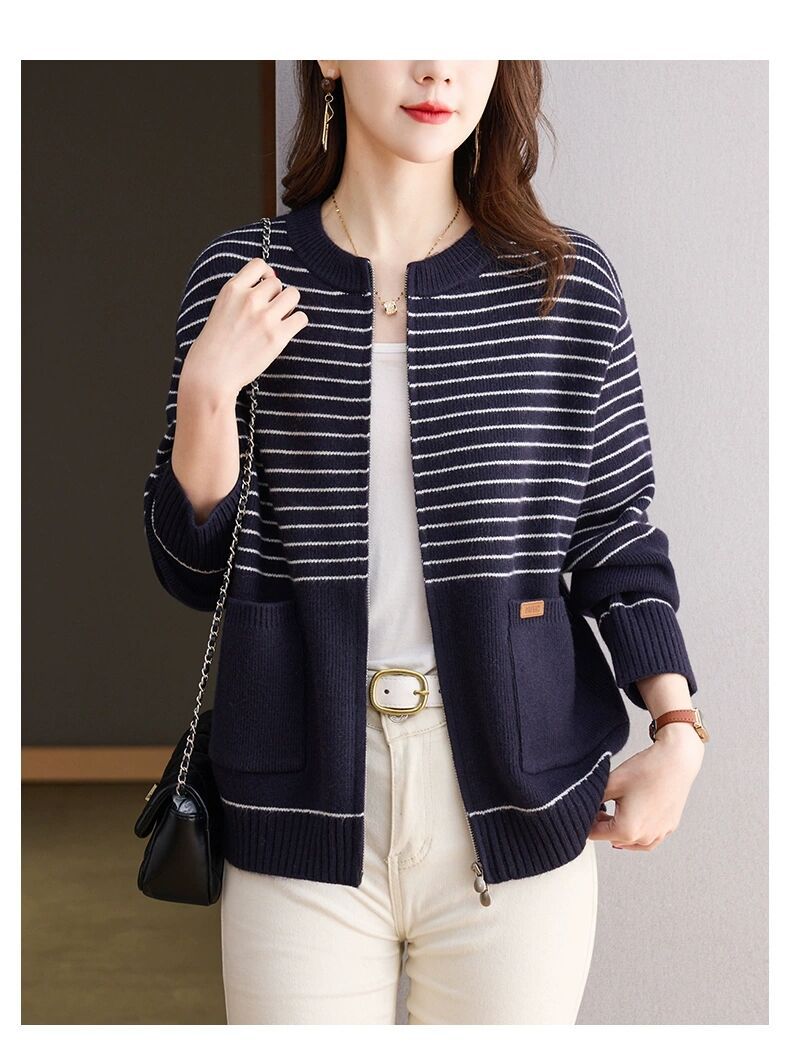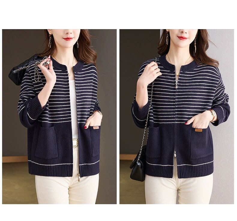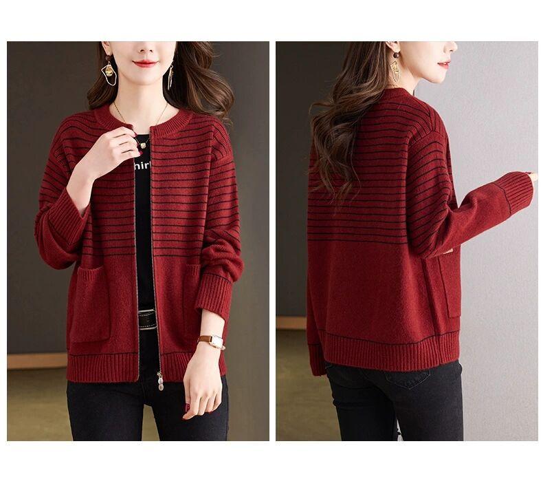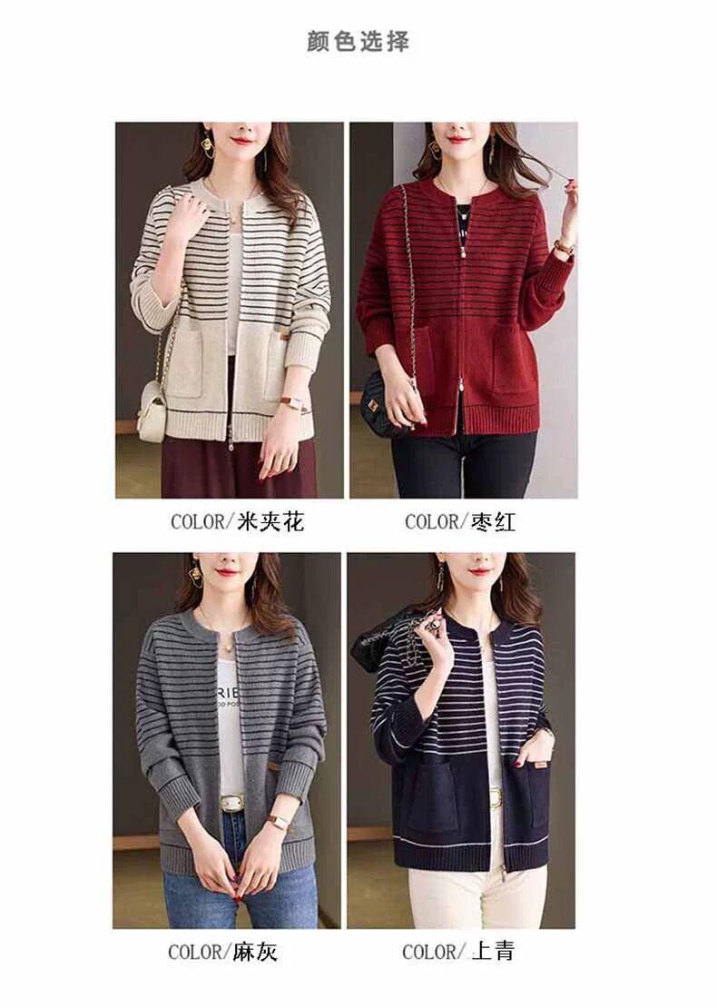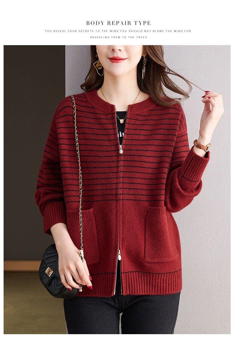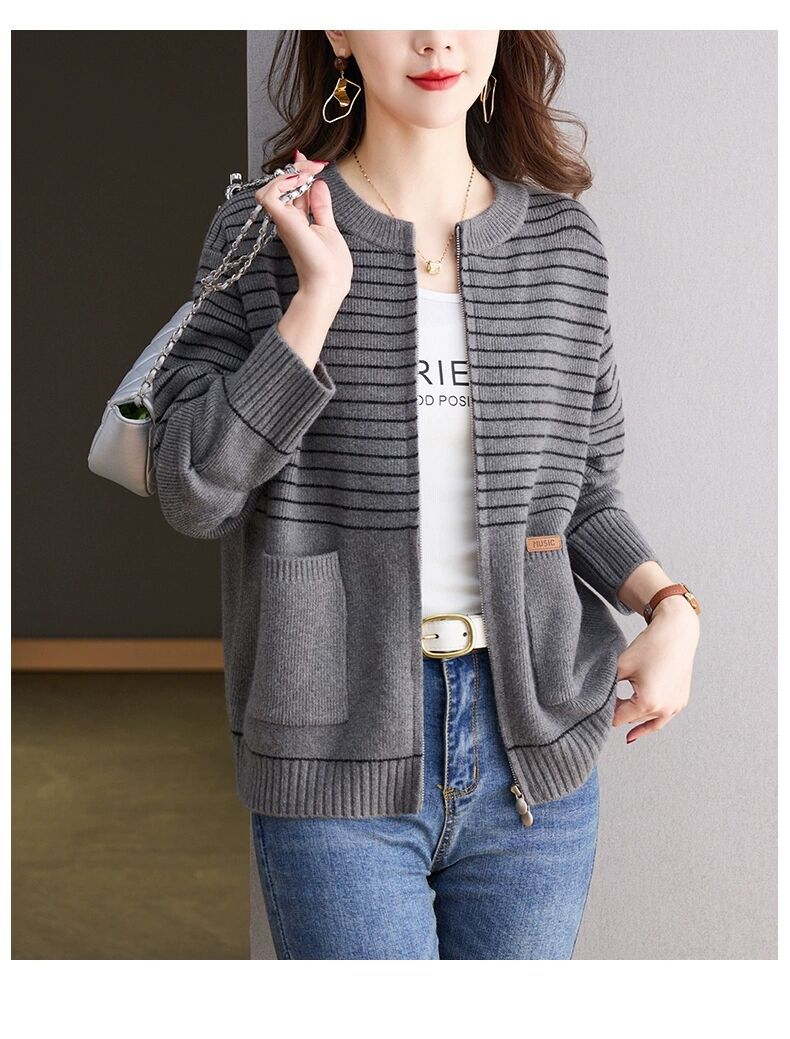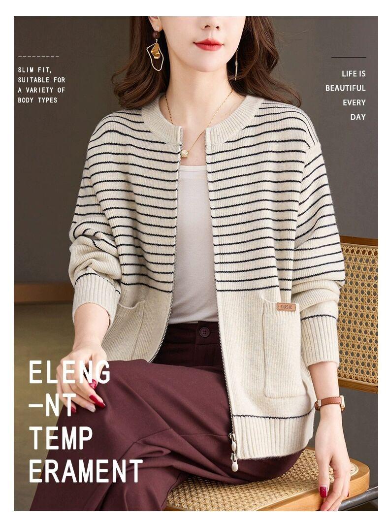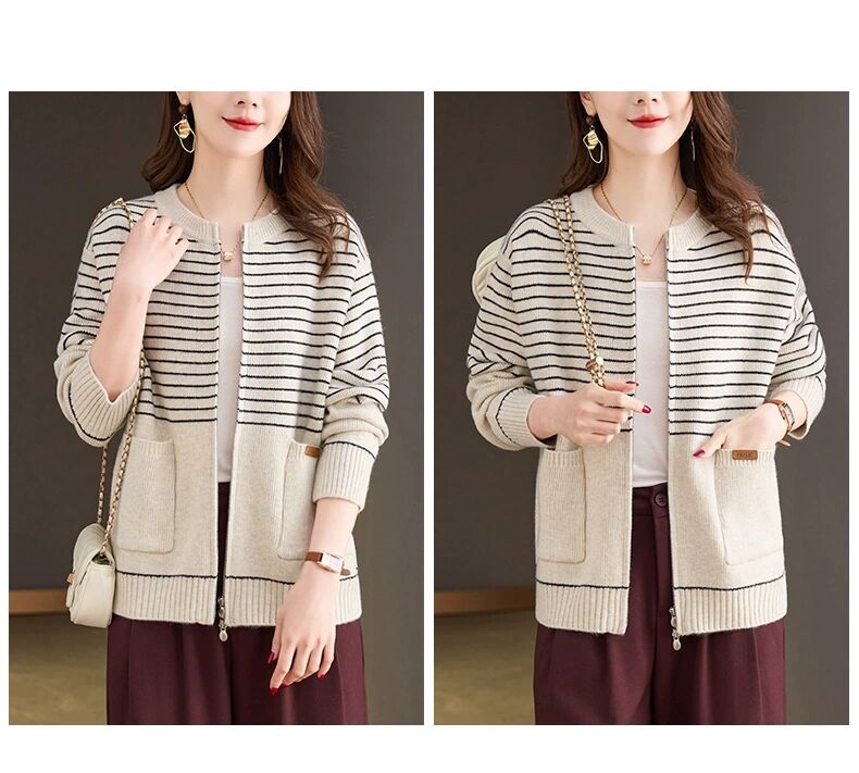 Cárdigan de Punto Rayado Abrigo Suéter para Mujer Otoño Invierno Moda Elegante Ropa Exterior Nuevo