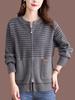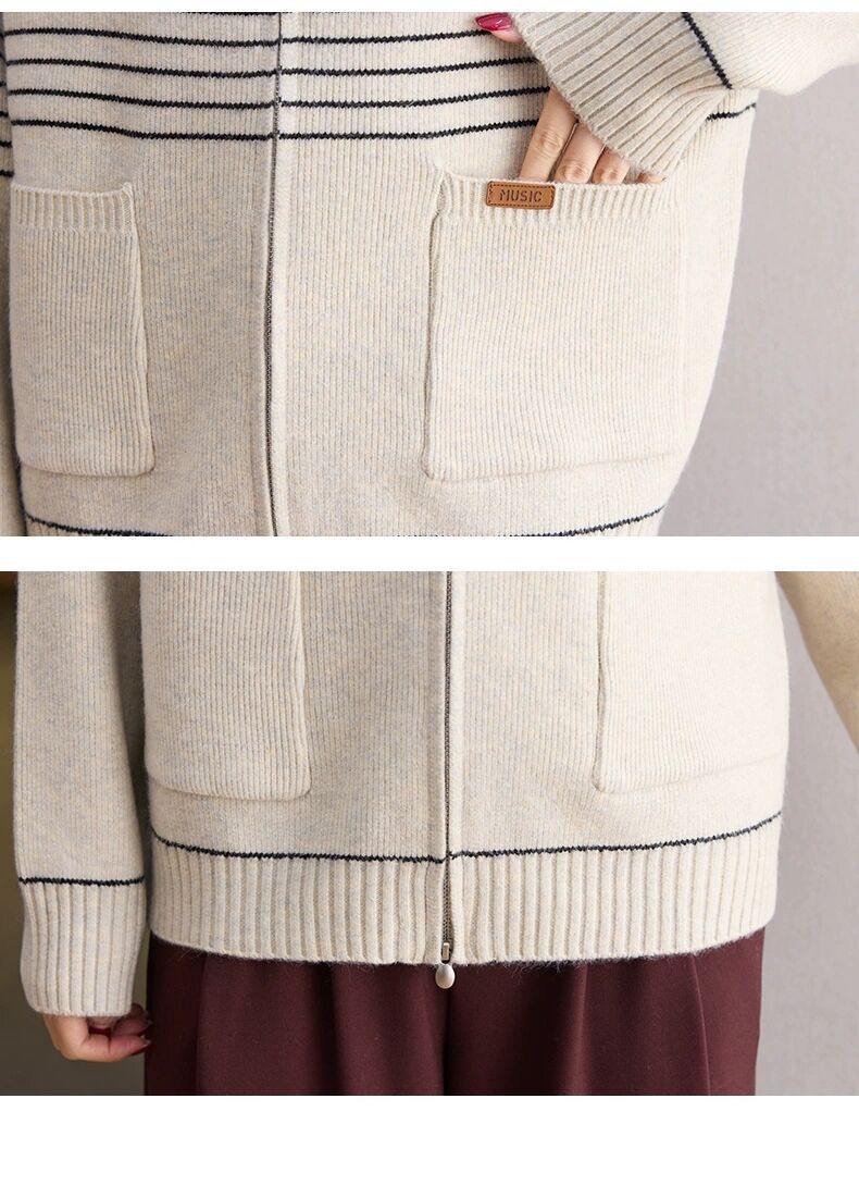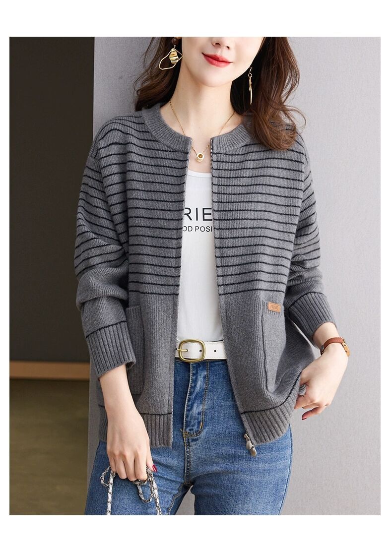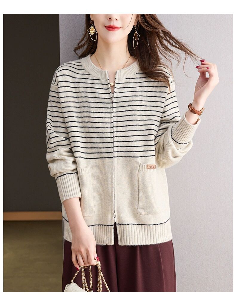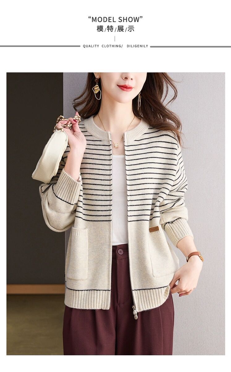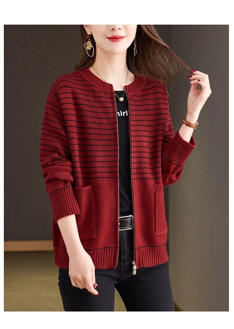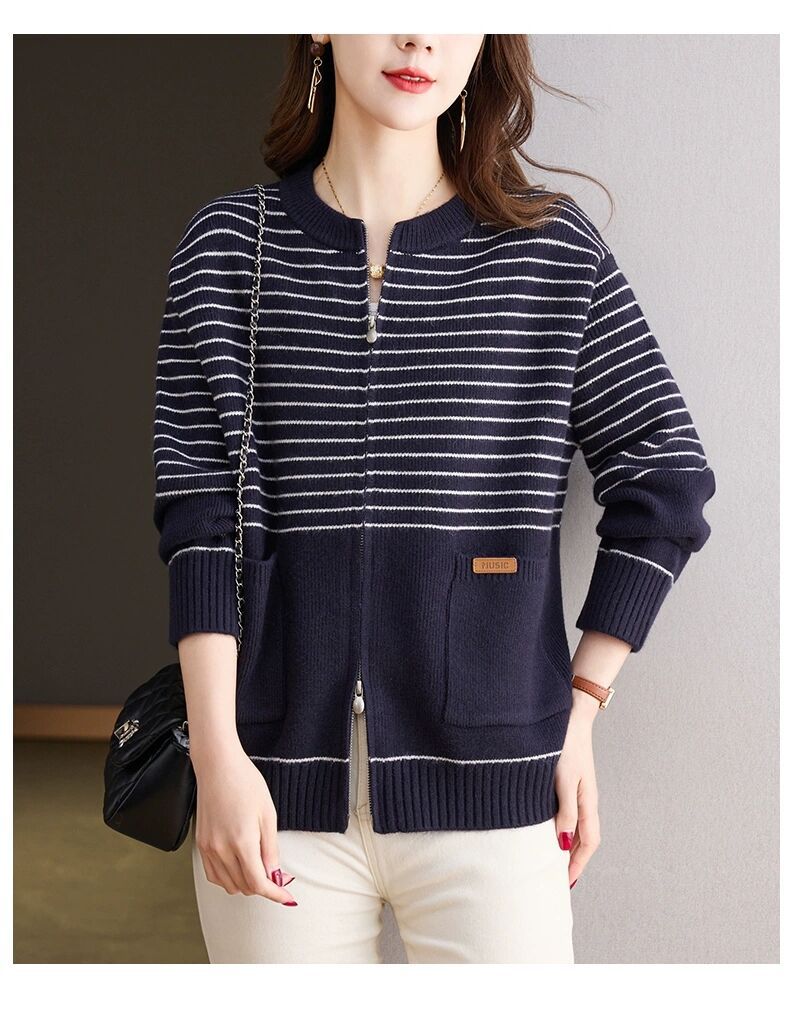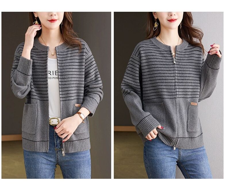 Cárdigan de Punto Rayado Abrigo Suéter para Mujer Otoño Invierno Moda Elegante Ropa Exterior Nuevo