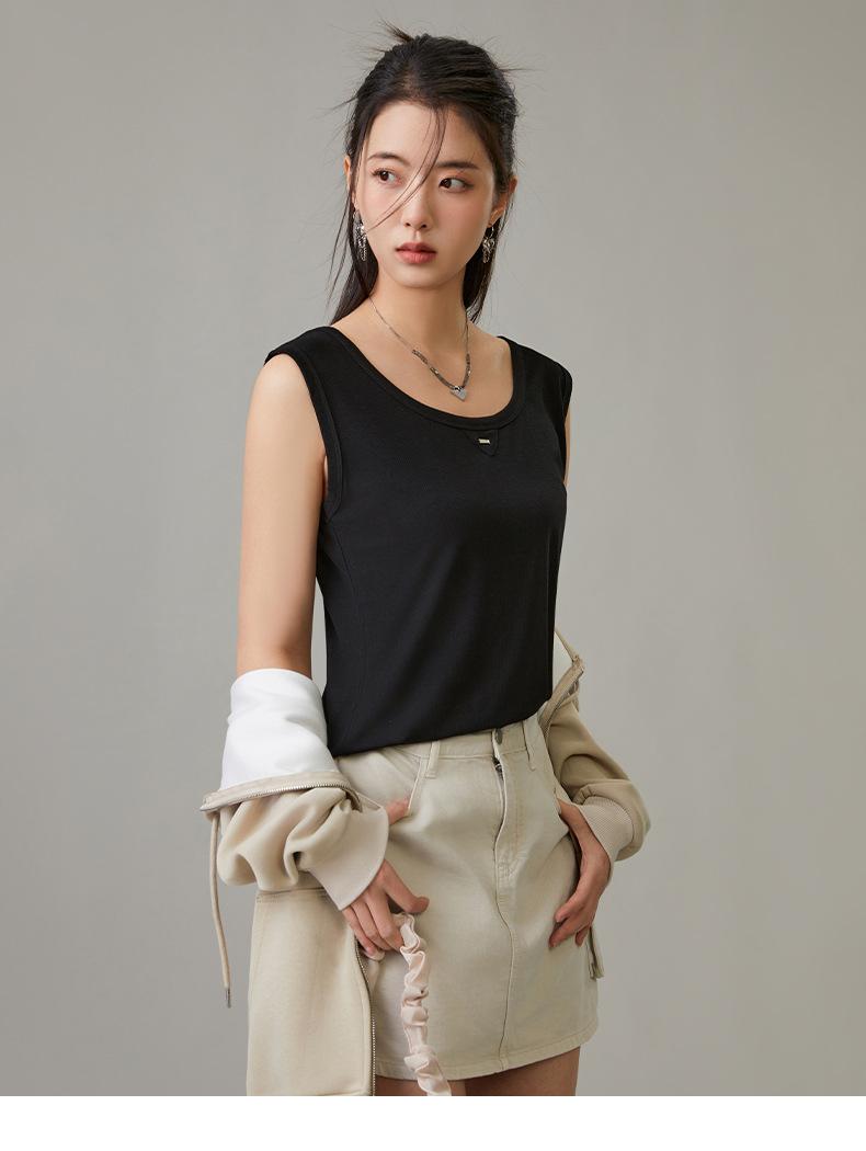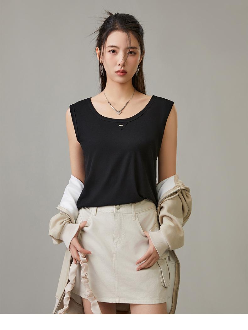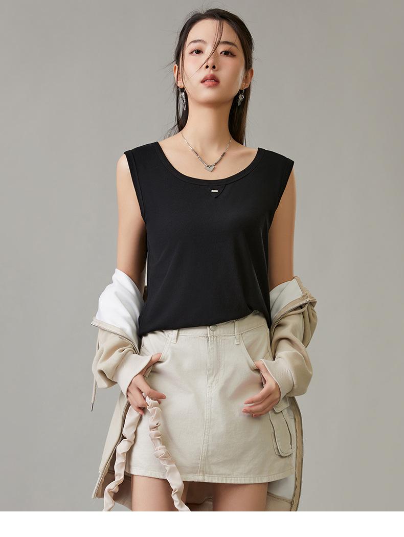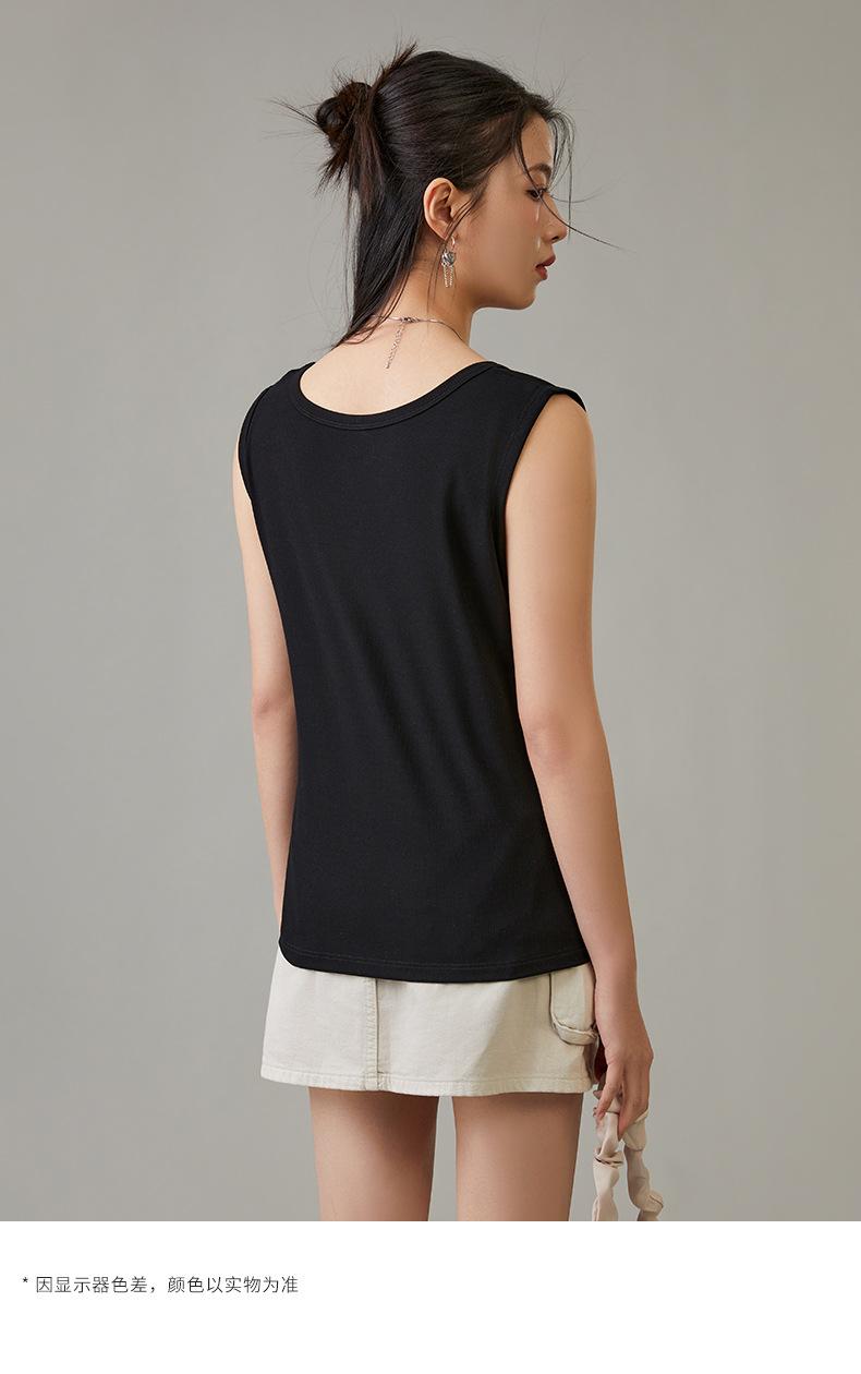 [Personalizado] Primavera y Verano Estilo Coreano Moda Versátil Cuello Redondo Sin Mangas Color Puro Camisola Interior y Exterior Camiseta Base