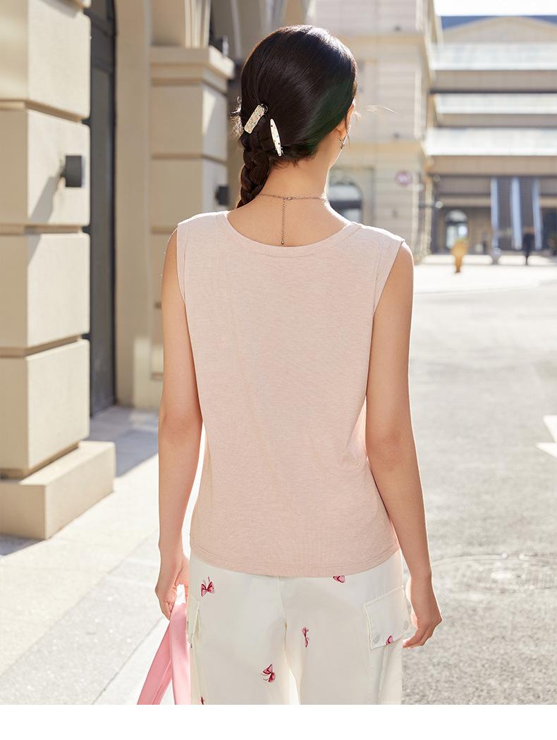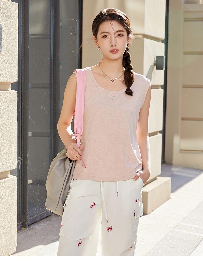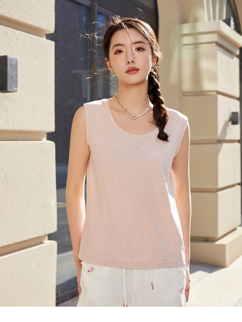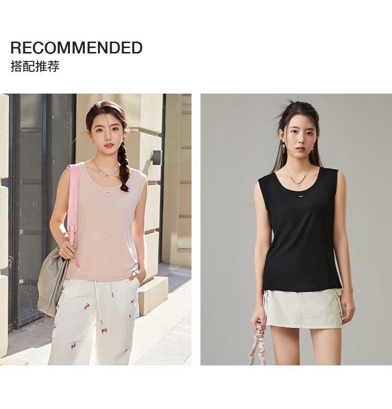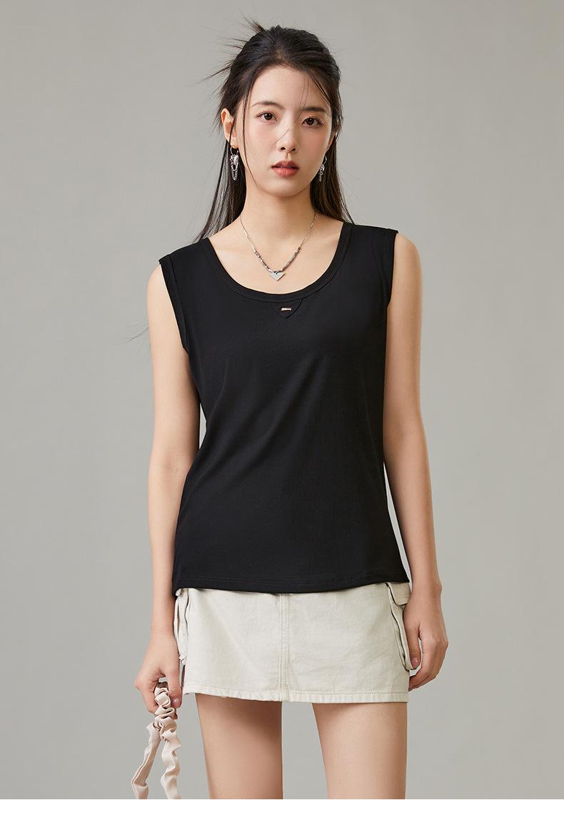 [Personalizado] Primavera y Verano Estilo Coreano Moda Versátil Cuello Redondo Sin Mangas Color Puro Camisola Interior y Exterior Camiseta Base