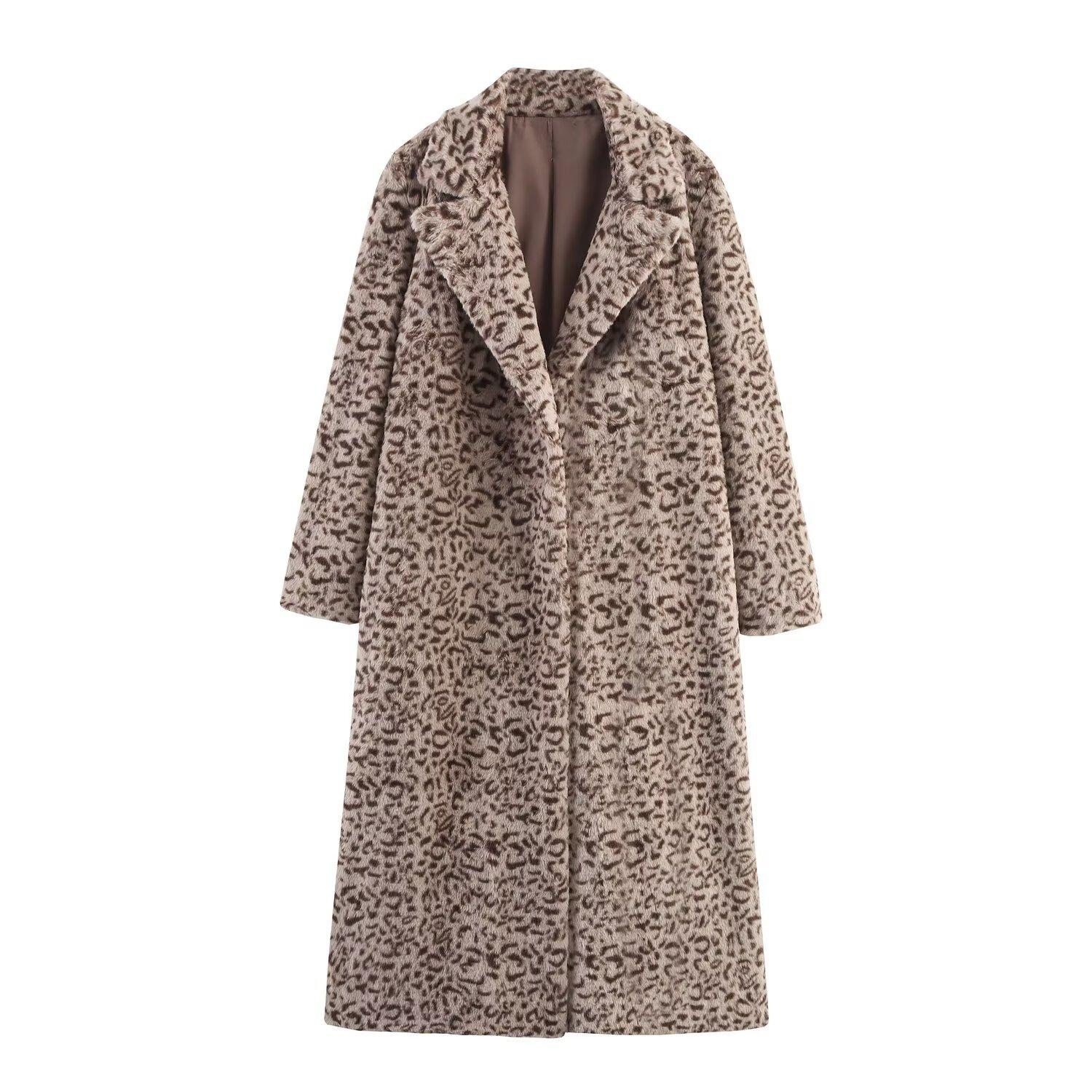 Z estilo transfronterizo europeo y americano 2025 nueva moda temperamento Amazon ropa de mujer al por mayor solapa de piel sintética abrigo largo