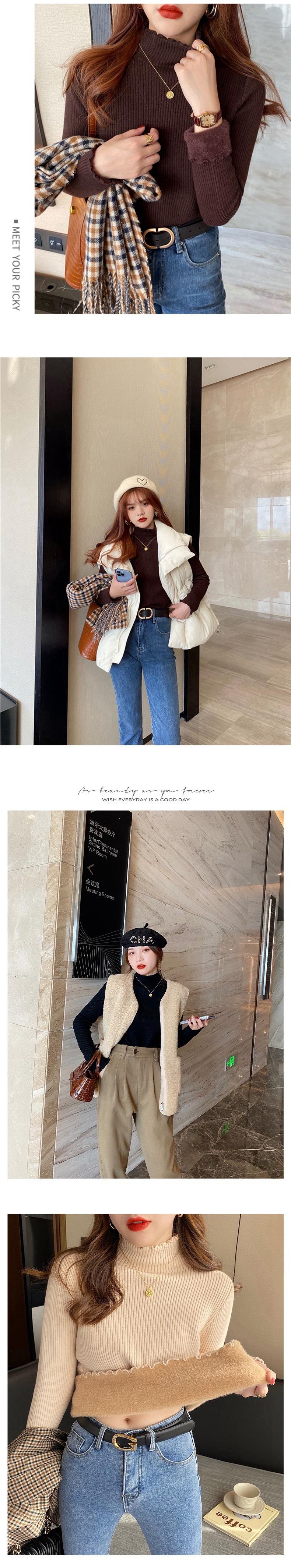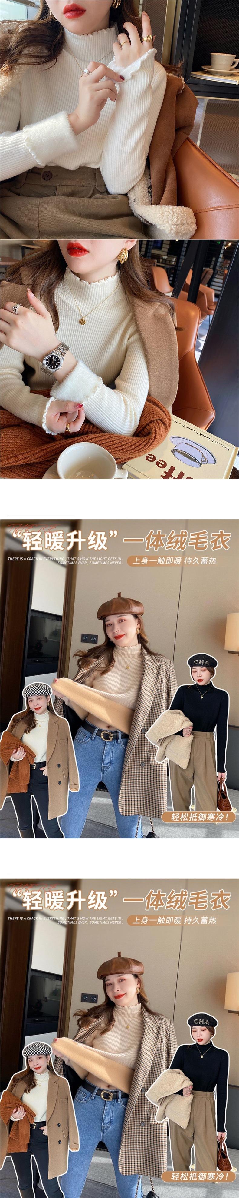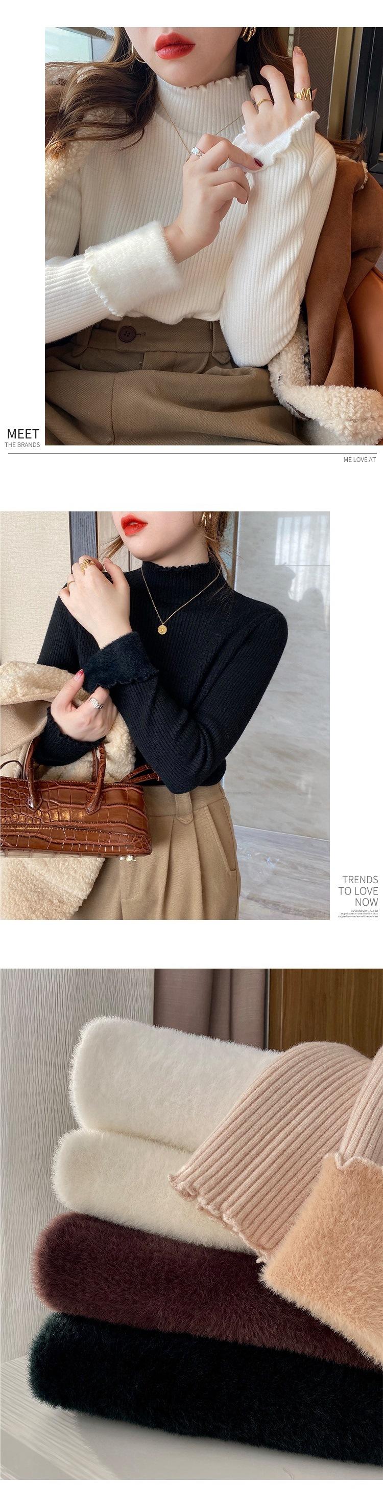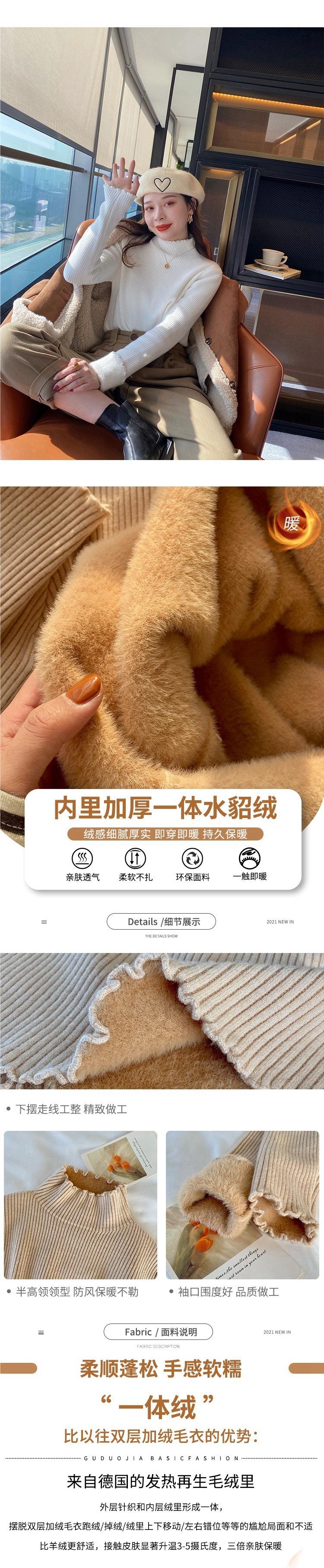 Invierno Nuevo Suéter de Lana Grueso de Una Pieza con Forro Polar Cuello Semi Alto Capa Interior Suéter Básico de Punto a la Moda