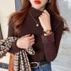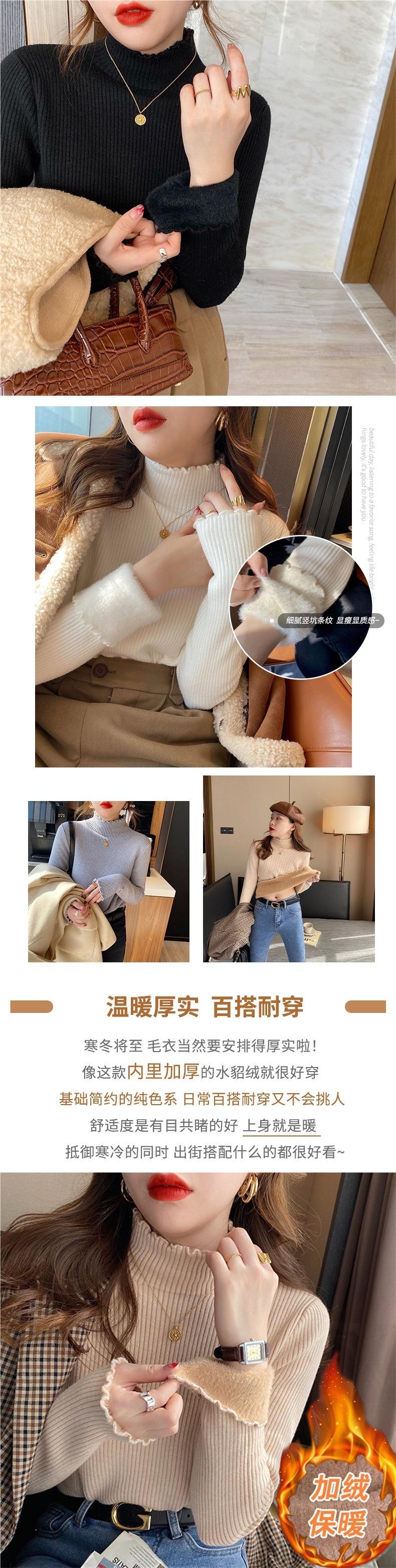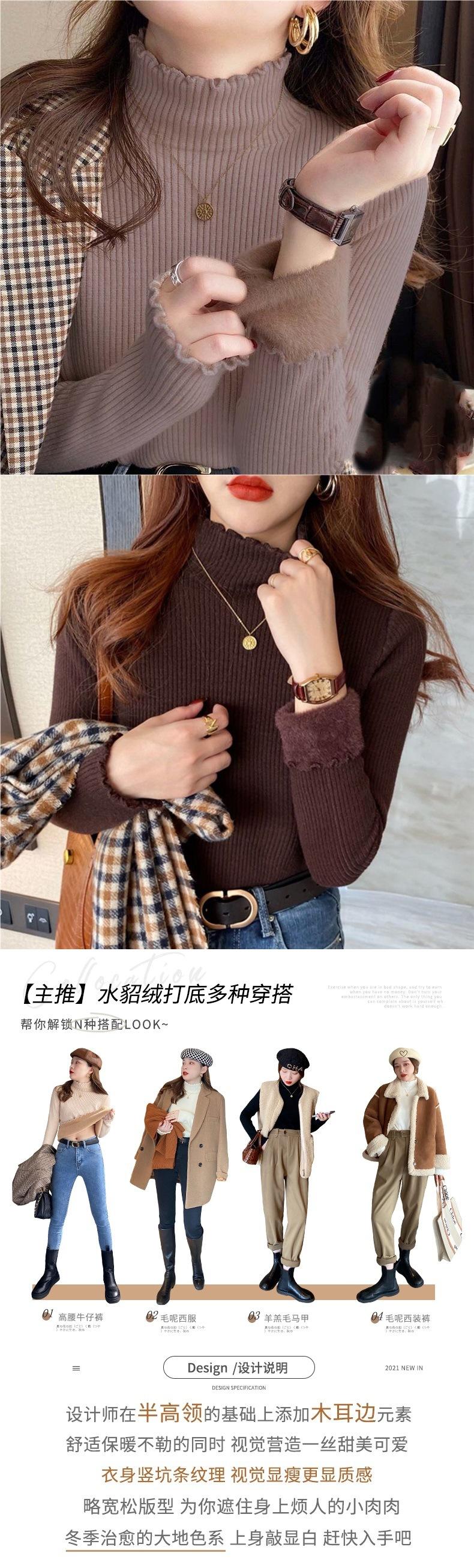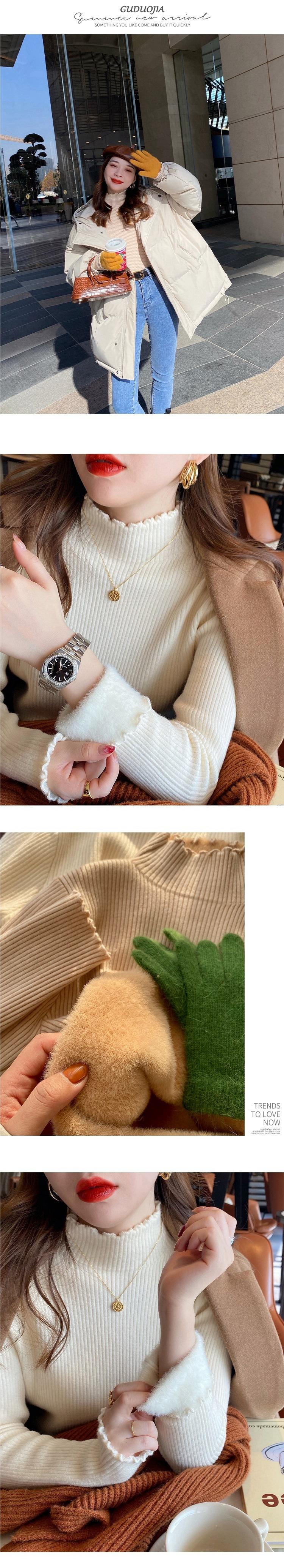 Invierno Nuevo Suéter de Lana Grueso de Una Pieza con Forro Polar Cuello Semi Alto Capa Interior Suéter Básico de Punto a la Moda