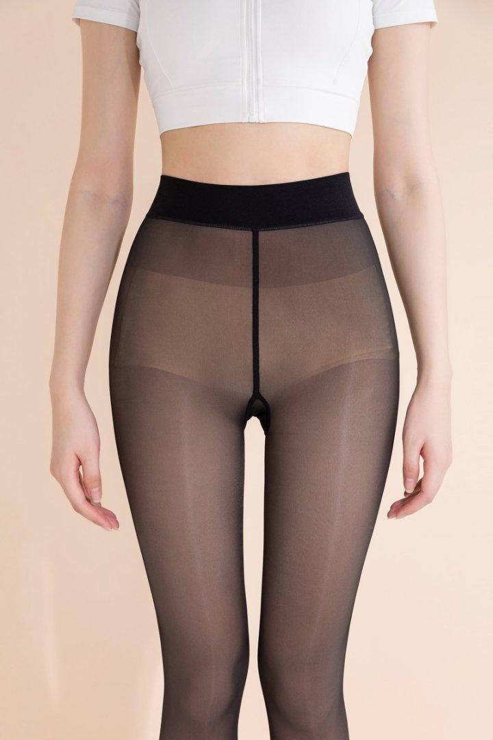 Leggings de Talla Grande Translucidos de Seda Negra Brillante Acuosa Transfronterizos de Alta Transparencia para Otoño e Invierno con Terciopelo Negro Translúcido Medias para Mujer