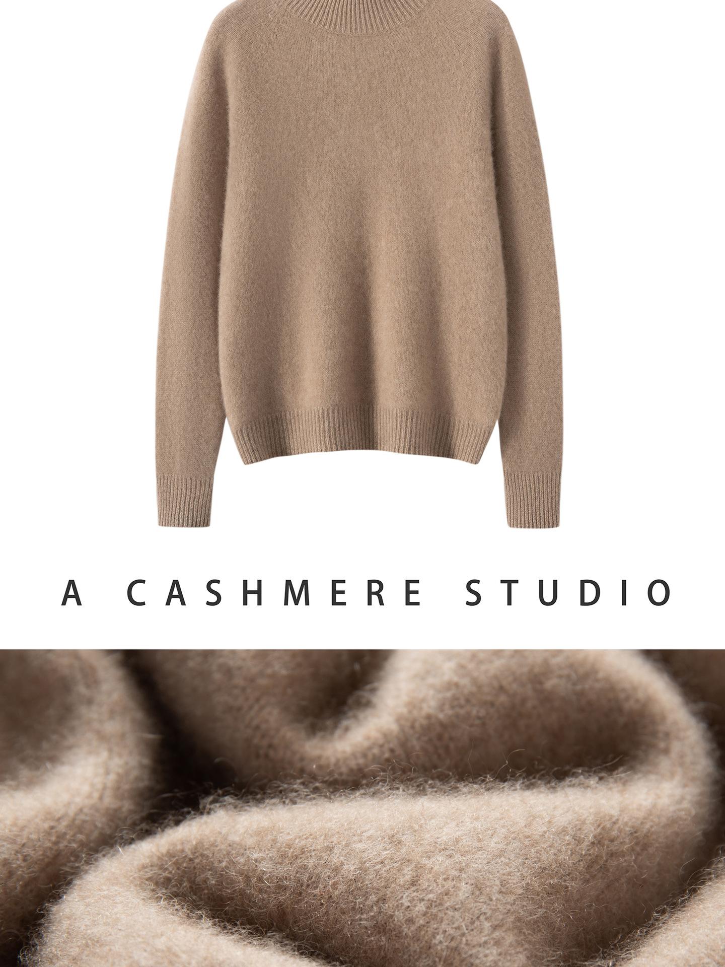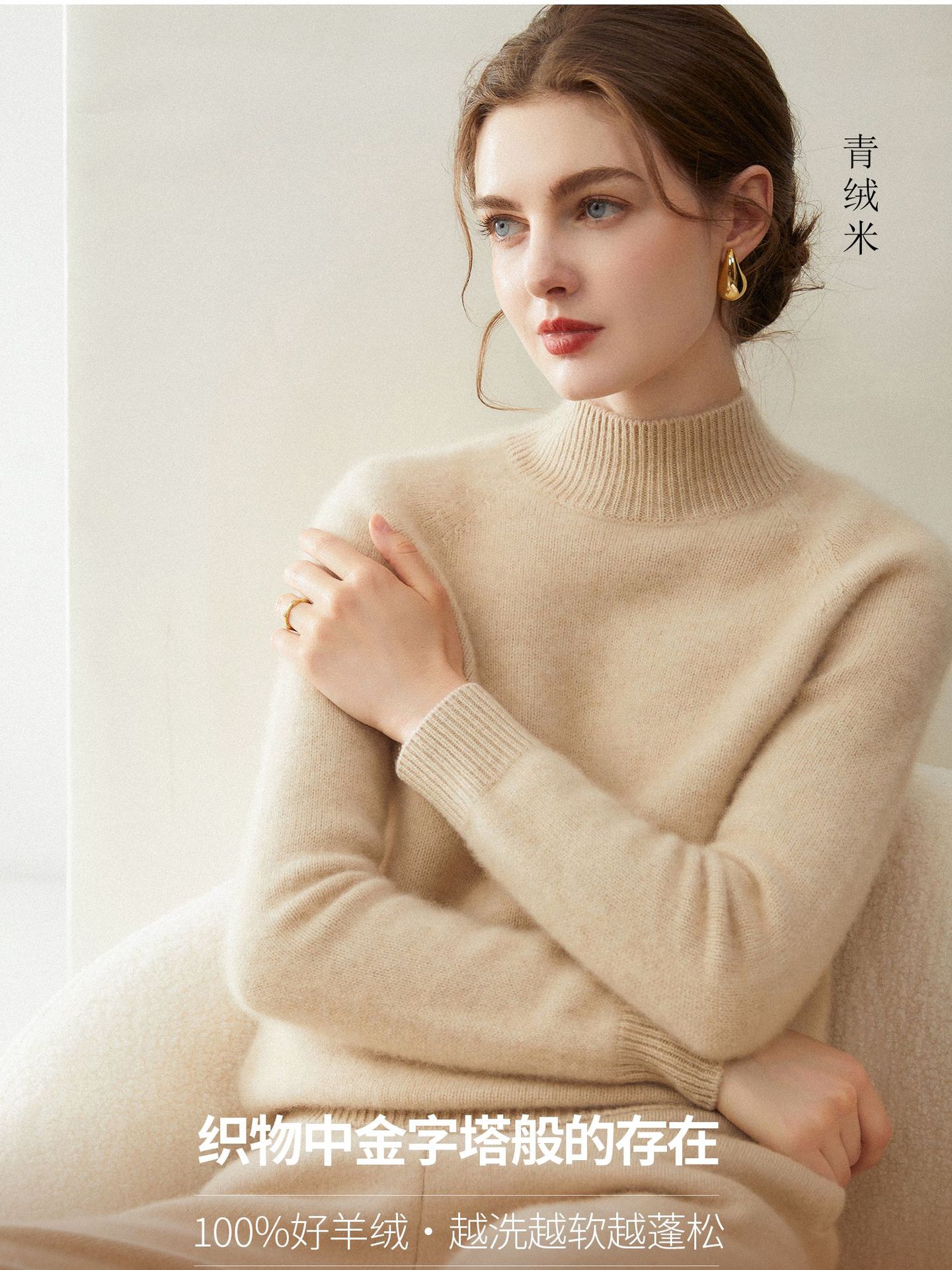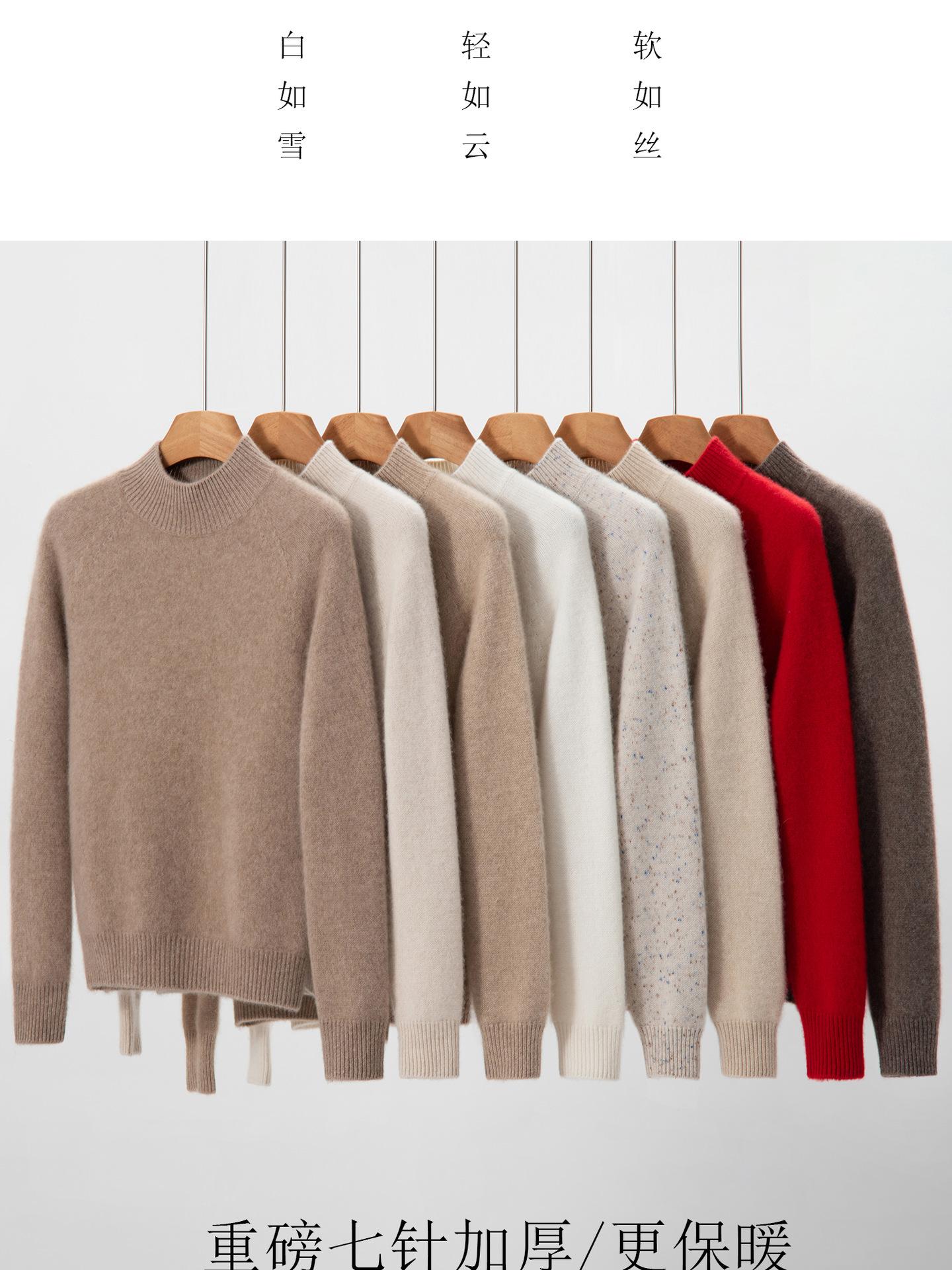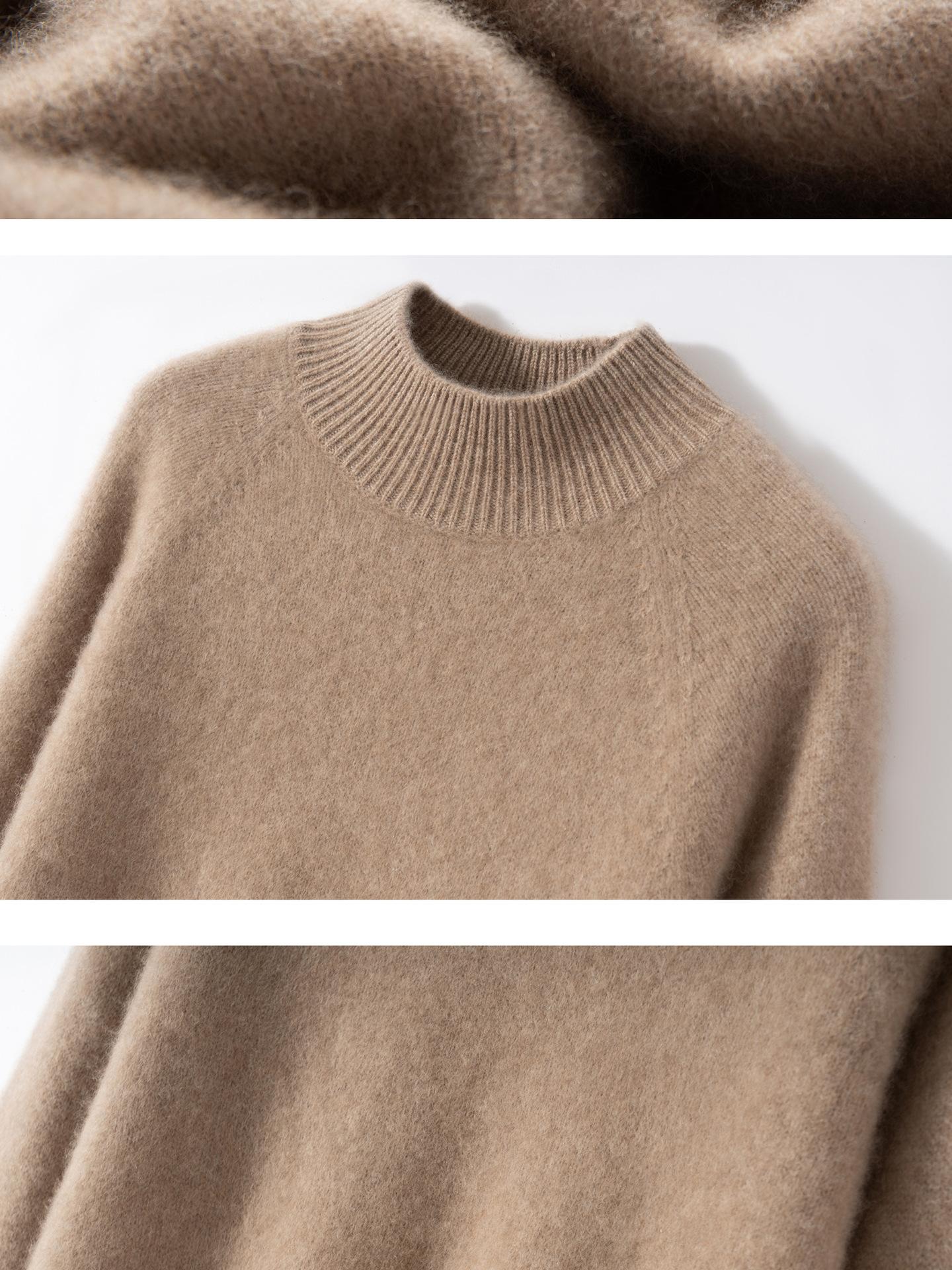 Nuevo Suéter de Otoño/Invierno de Siete Agujas Grueso con Manga Raglán 100% Cachemira para Mujer Cuello Semi-Alto Tejido Base Suéter Jersey
