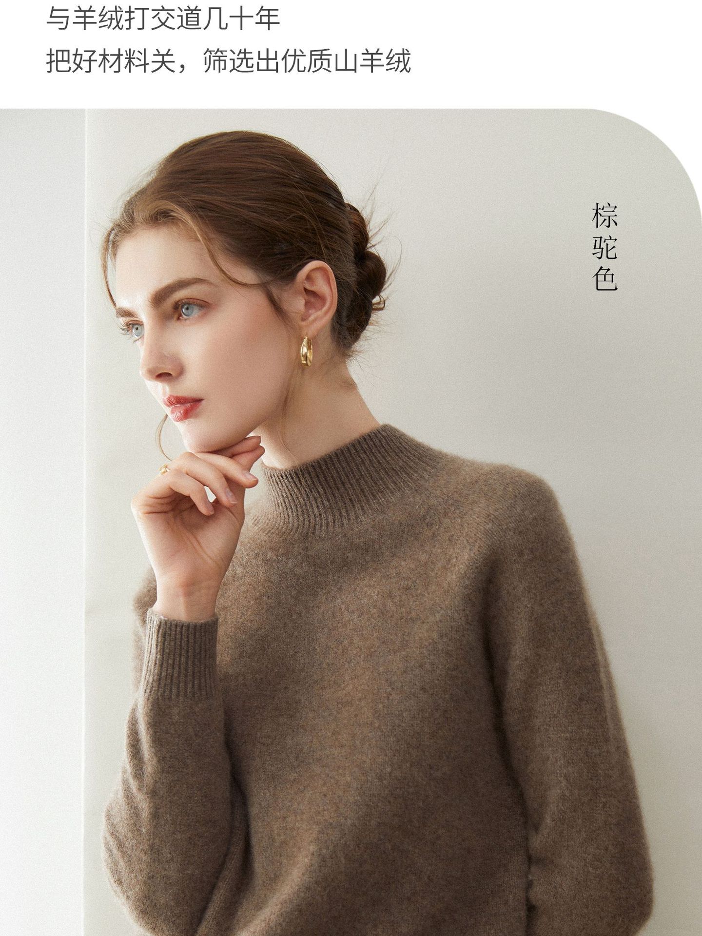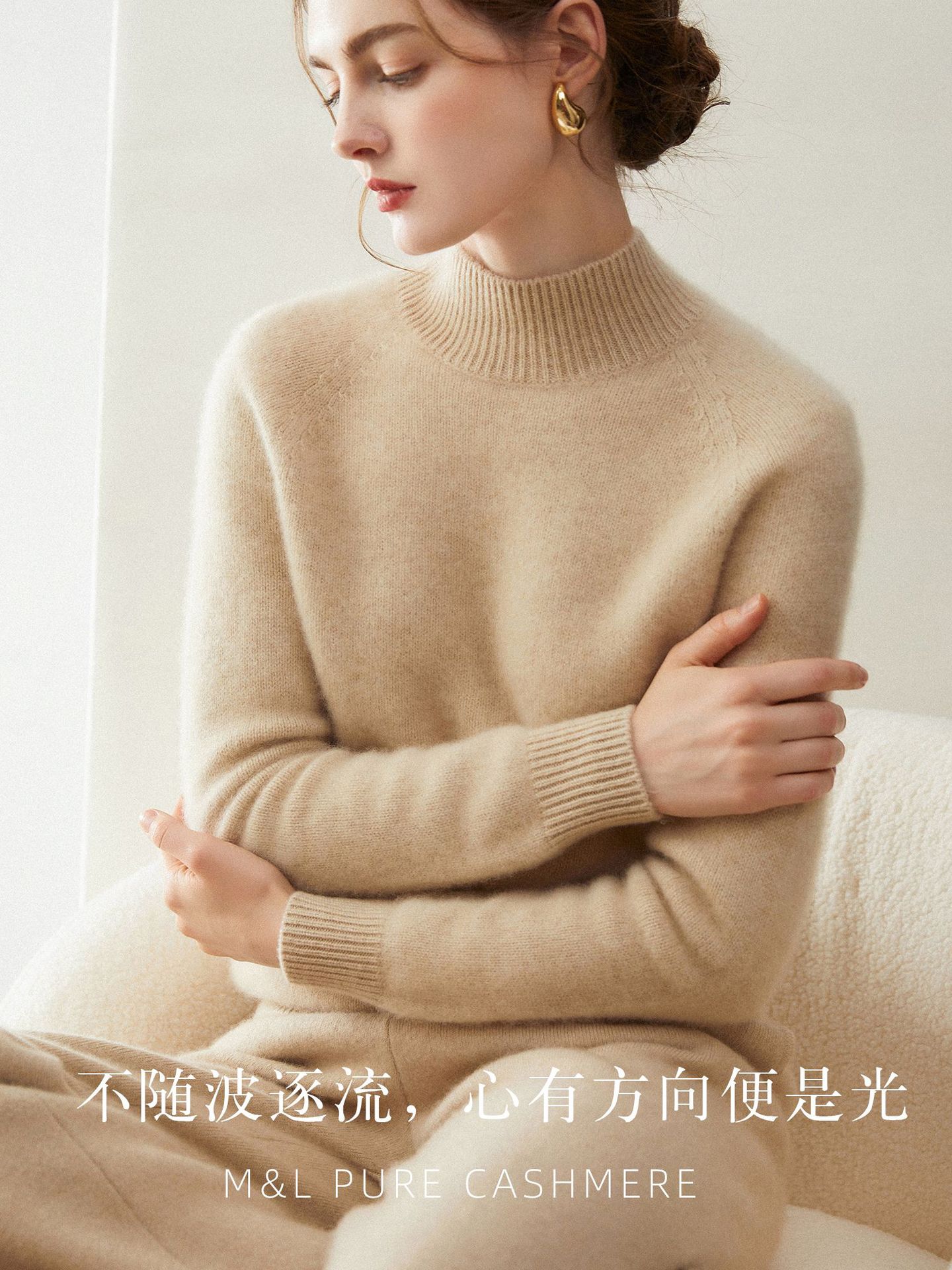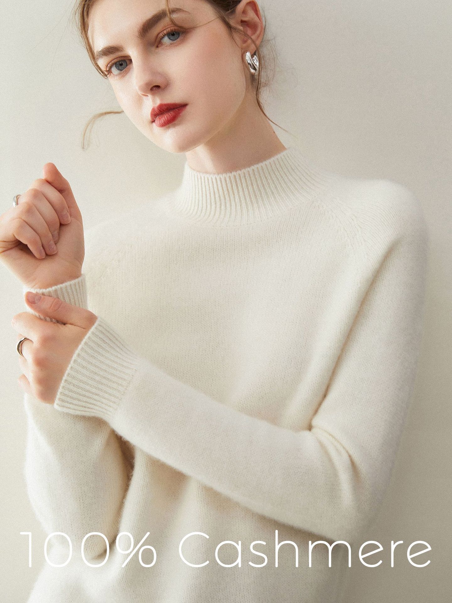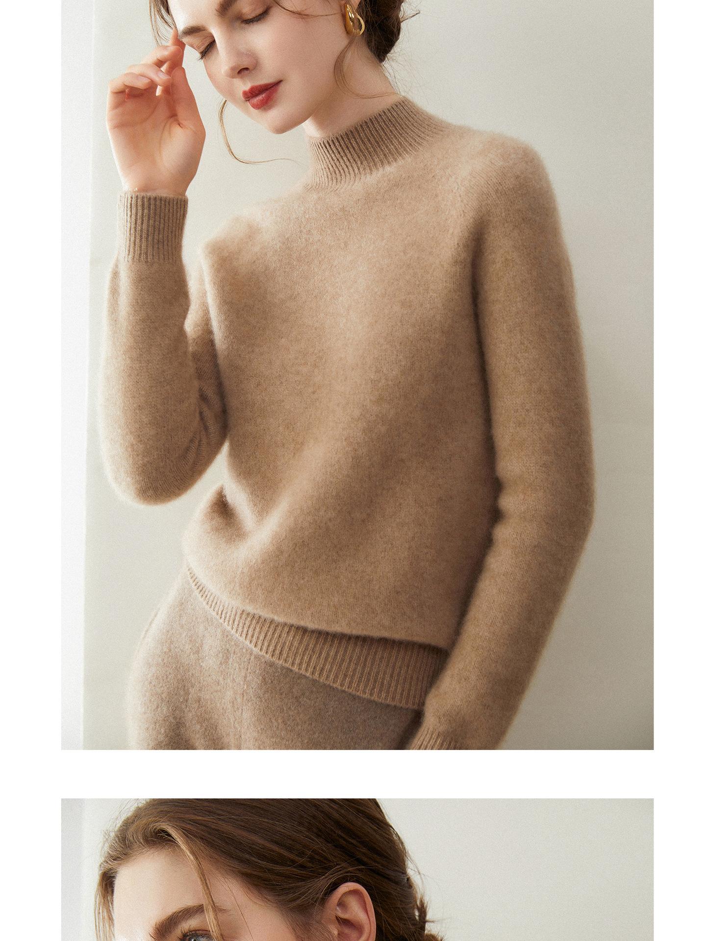 Nuevo Suéter de Otoño/Invierno de Siete Agujas Grueso con Manga Raglán 100% Cachemira para Mujer Cuello Semi-Alto Tejido Base Suéter Jersey