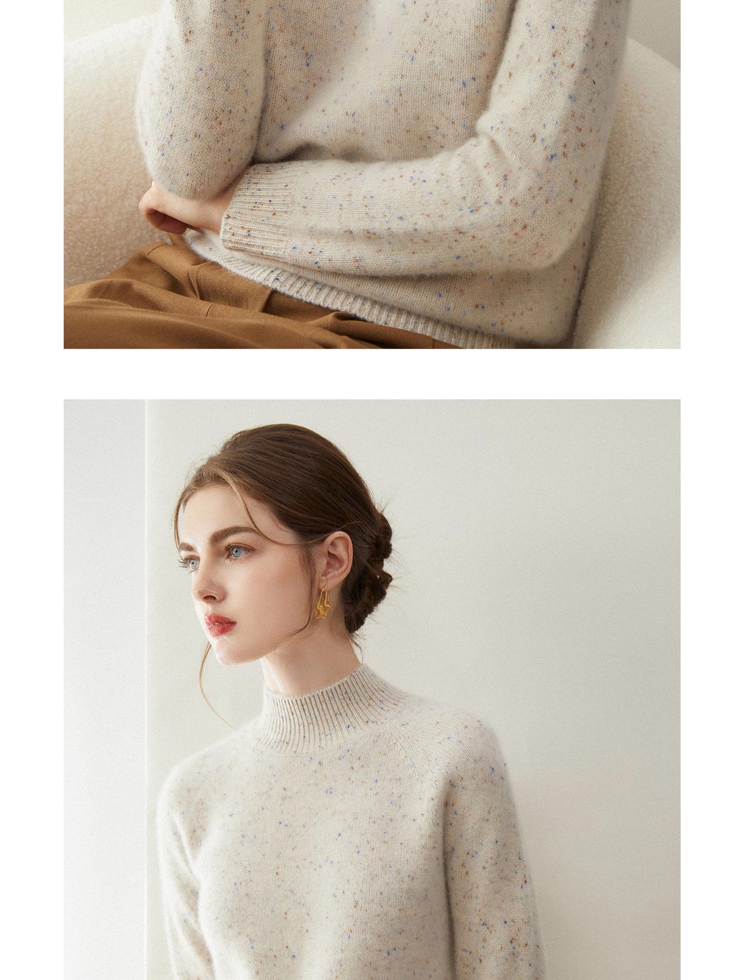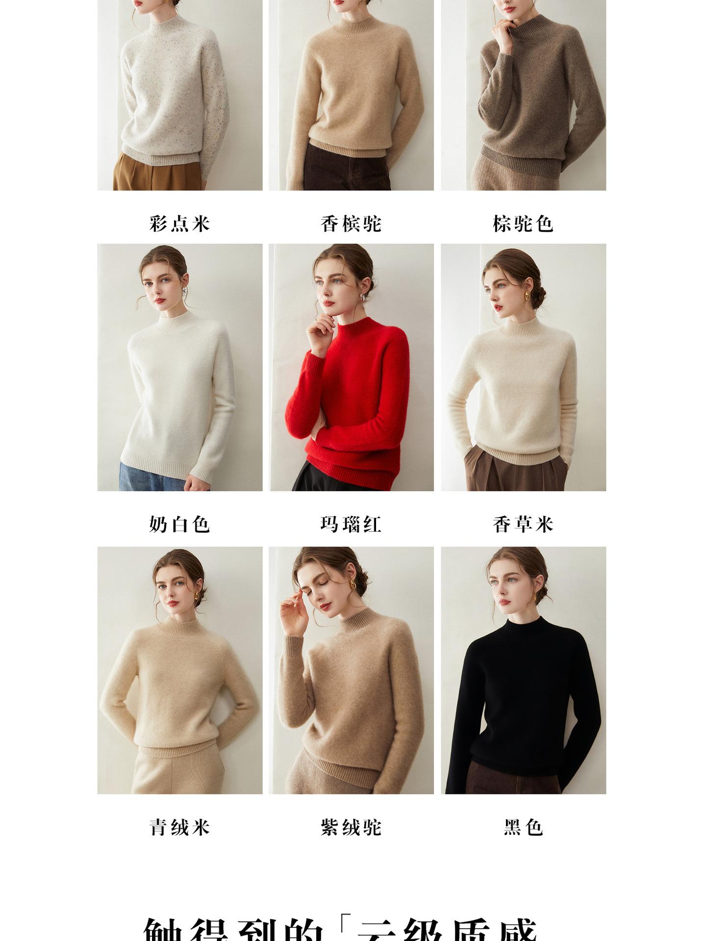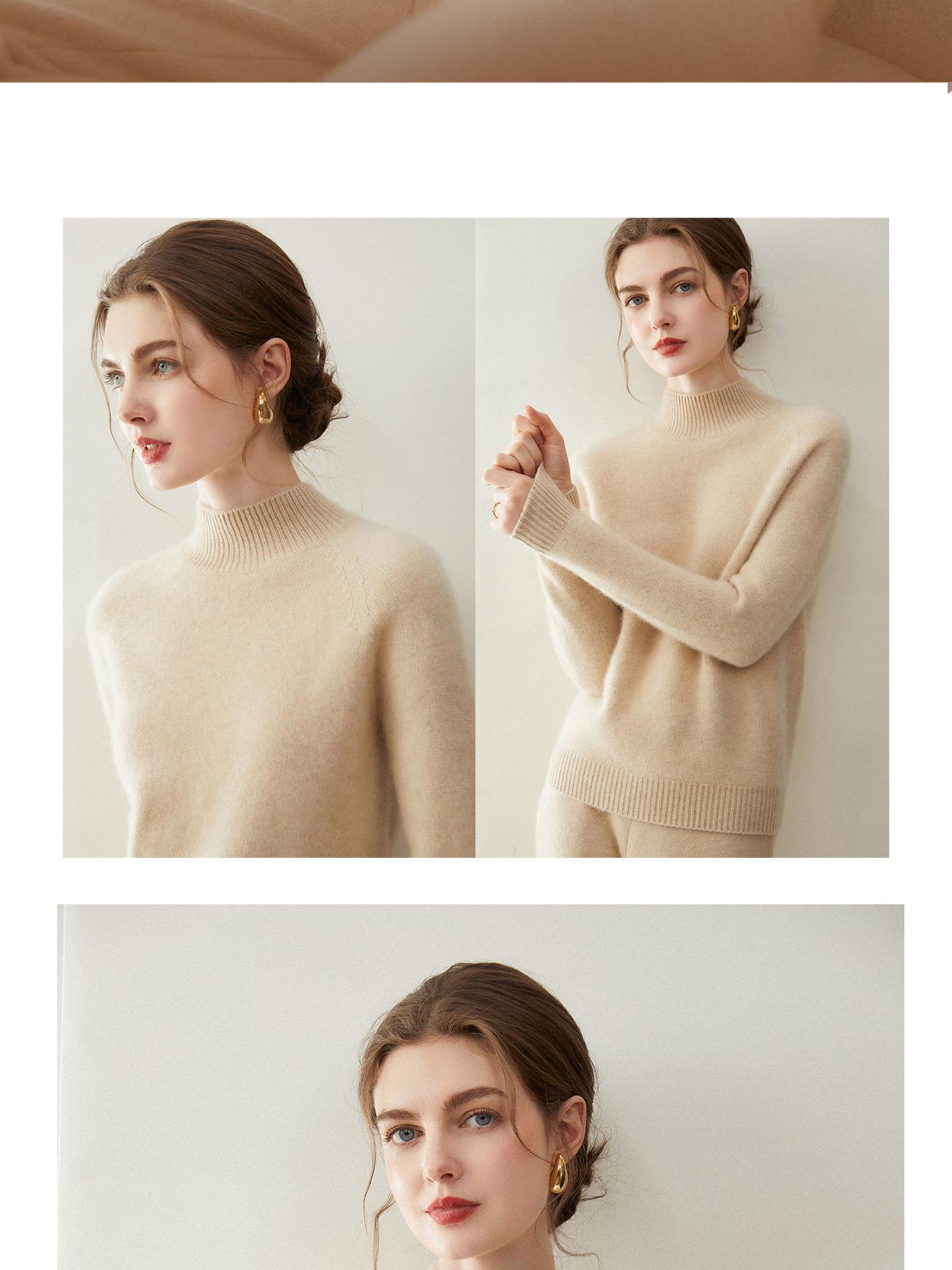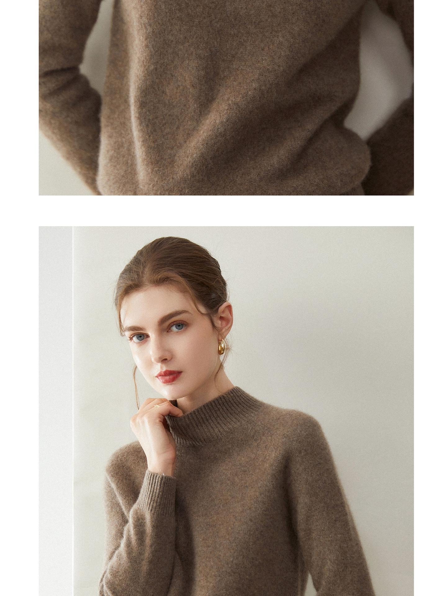 Nuevo Suéter de Otoño/Invierno de Siete Agujas Grueso con Manga Raglán 100% Cachemira para Mujer Cuello Semi-Alto Tejido Base Suéter Jersey