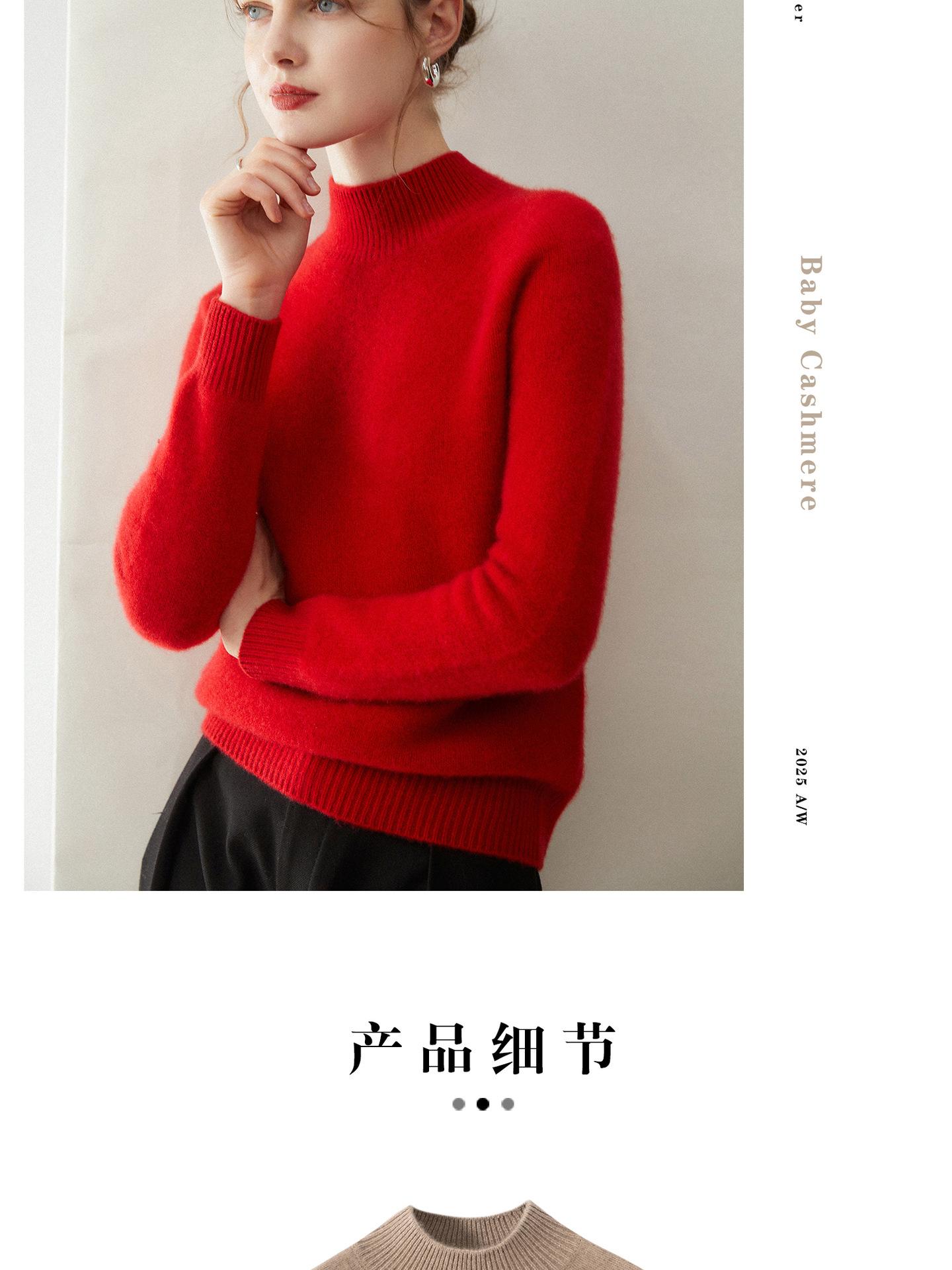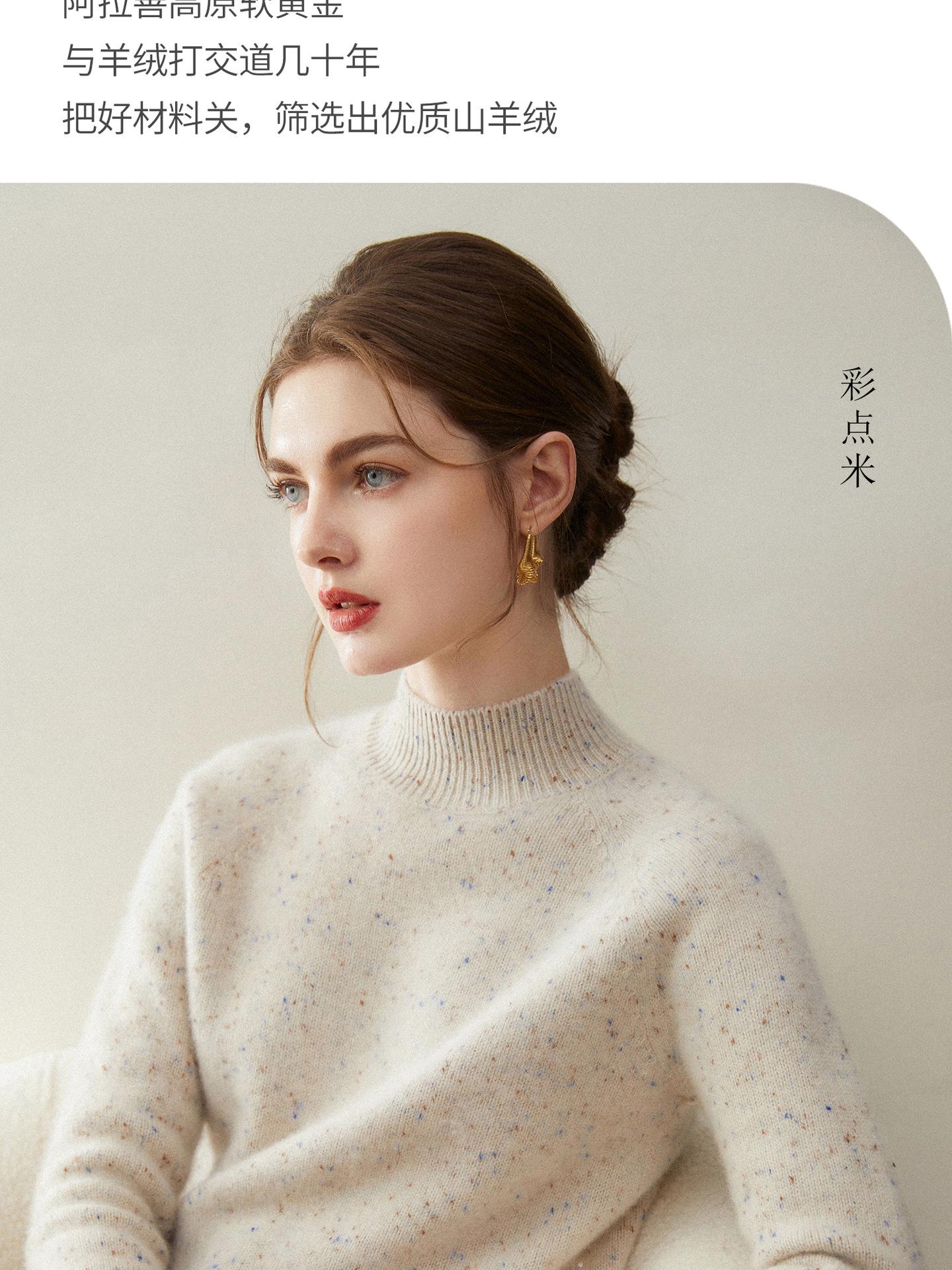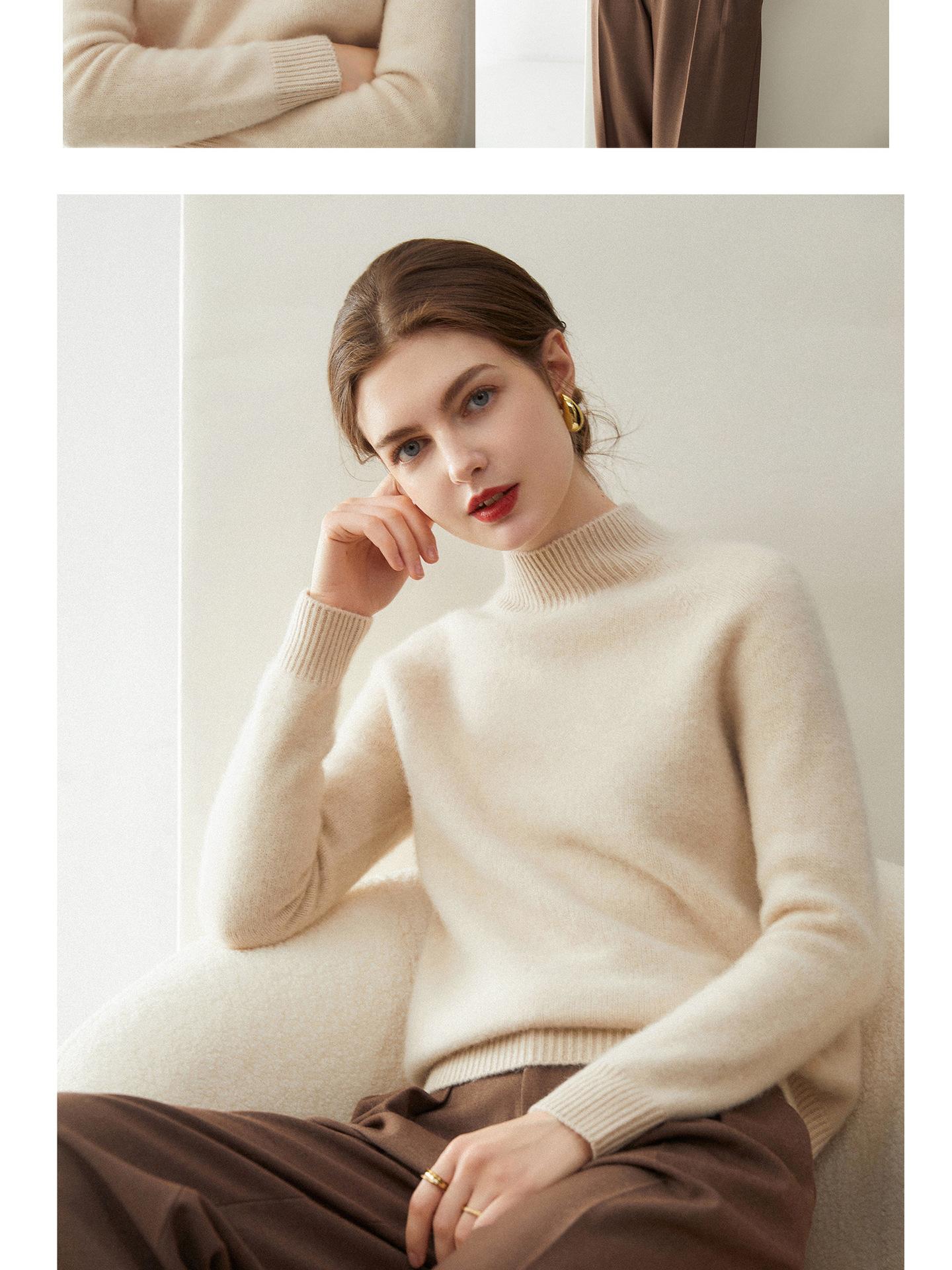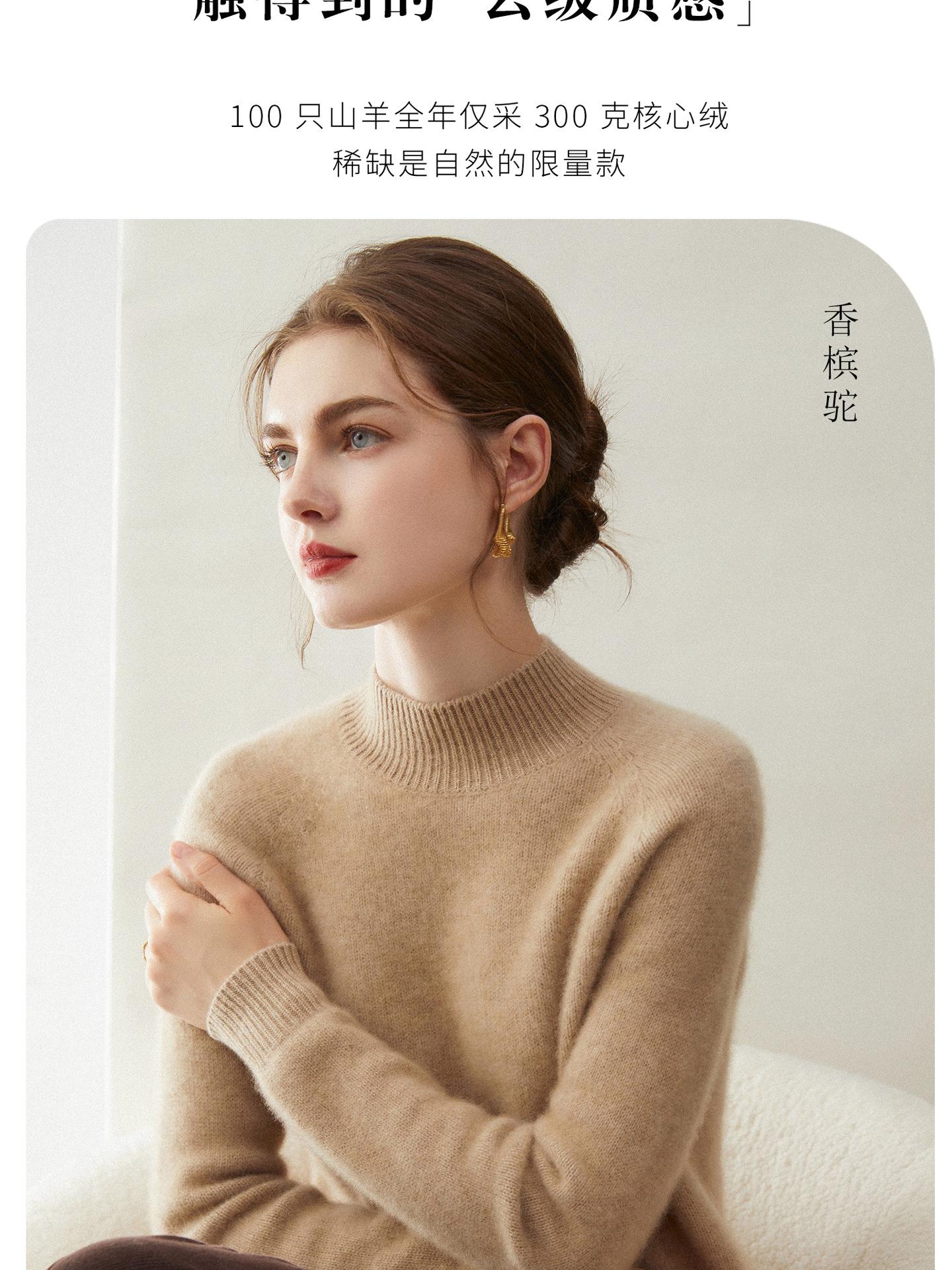 Nuevo Suéter de Otoño/Invierno de Siete Agujas Grueso con Manga Raglán 100% Cachemira para Mujer Cuello Semi-Alto Tejido Base Suéter Jersey