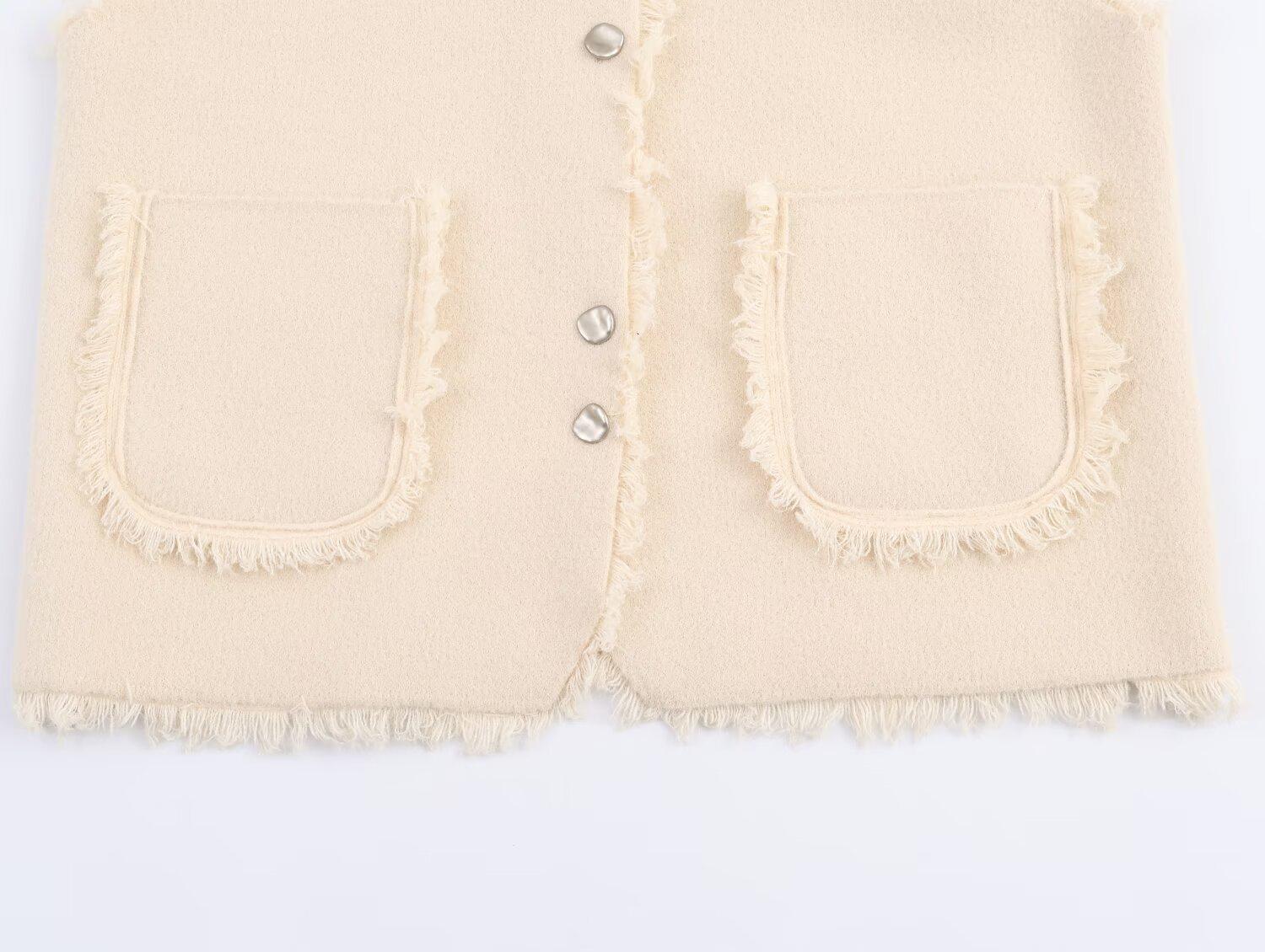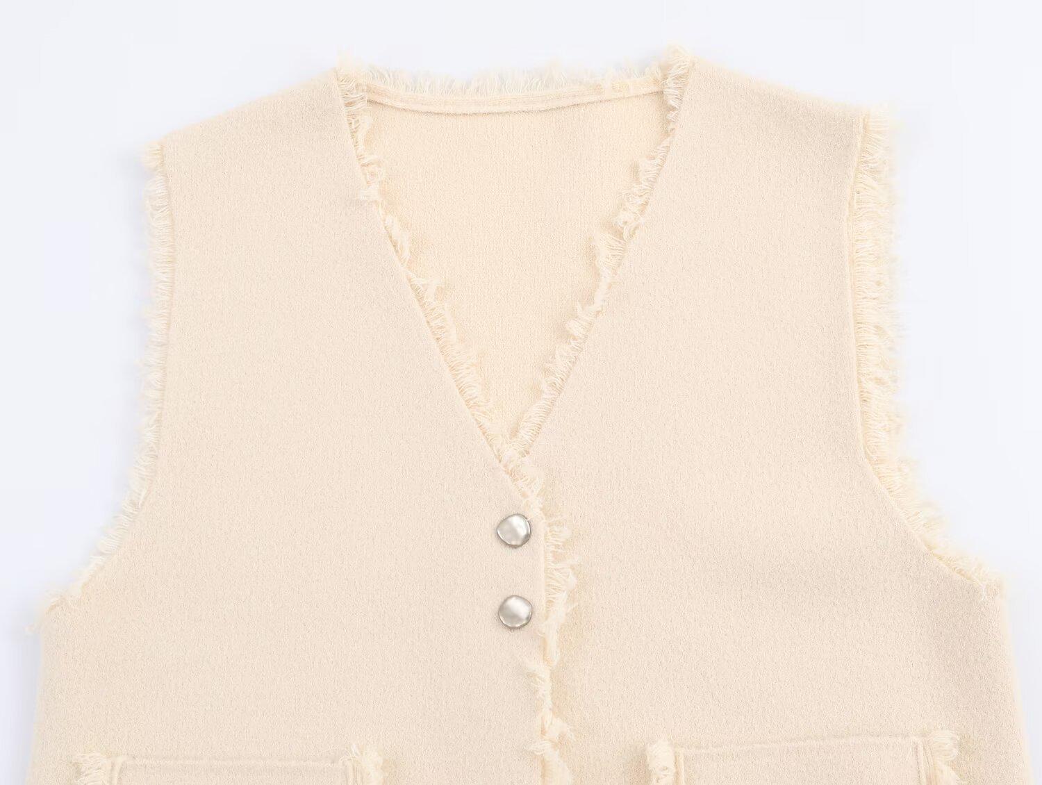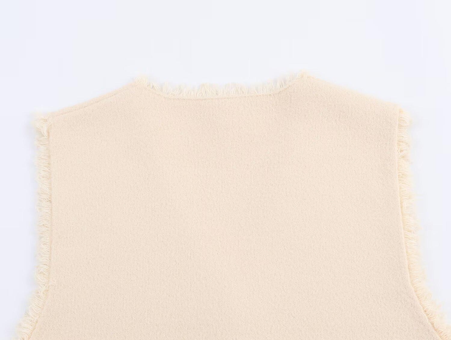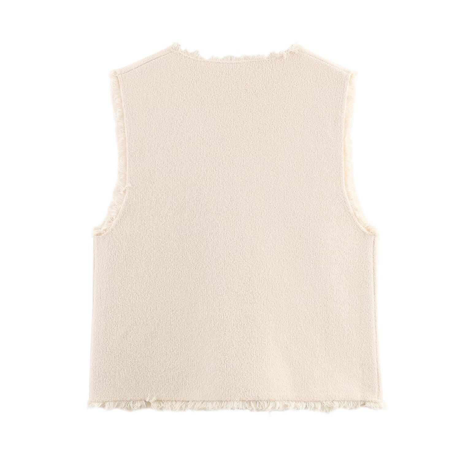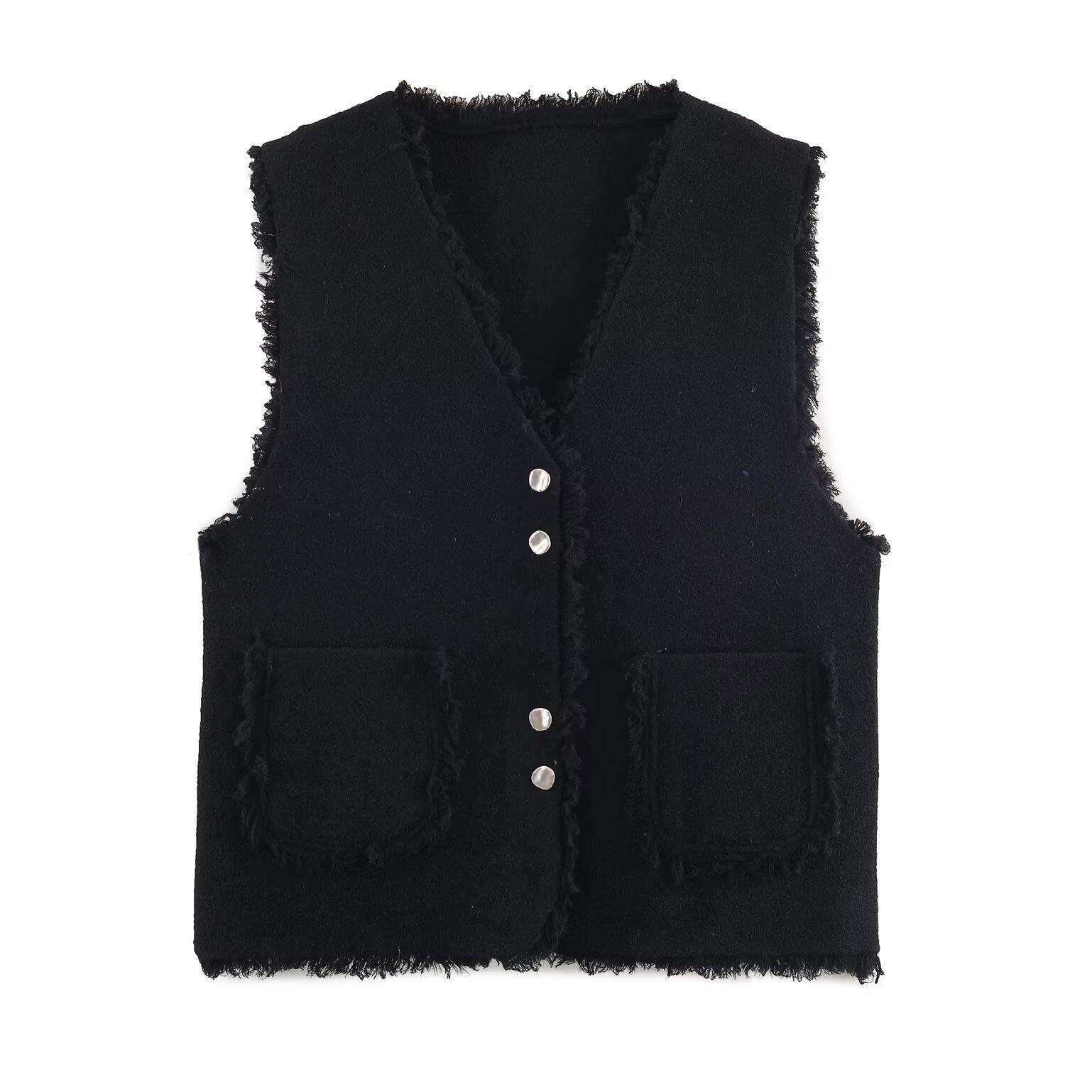 Transfronterizo Europeo y Americano 2025 Otoño Nuevo Temperamento Estilo Pequeño Fragante Sin Mangas Cuello en V Moda Versátil Tejido Exterior Chaleco Mujer