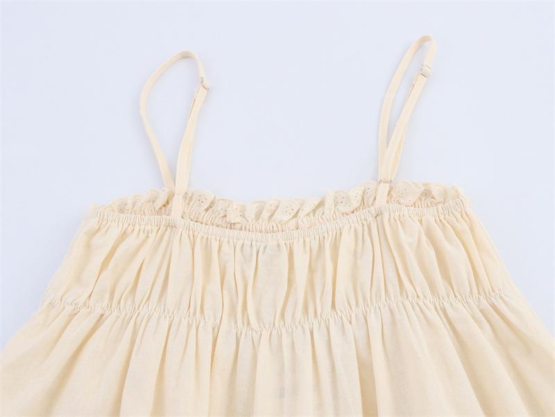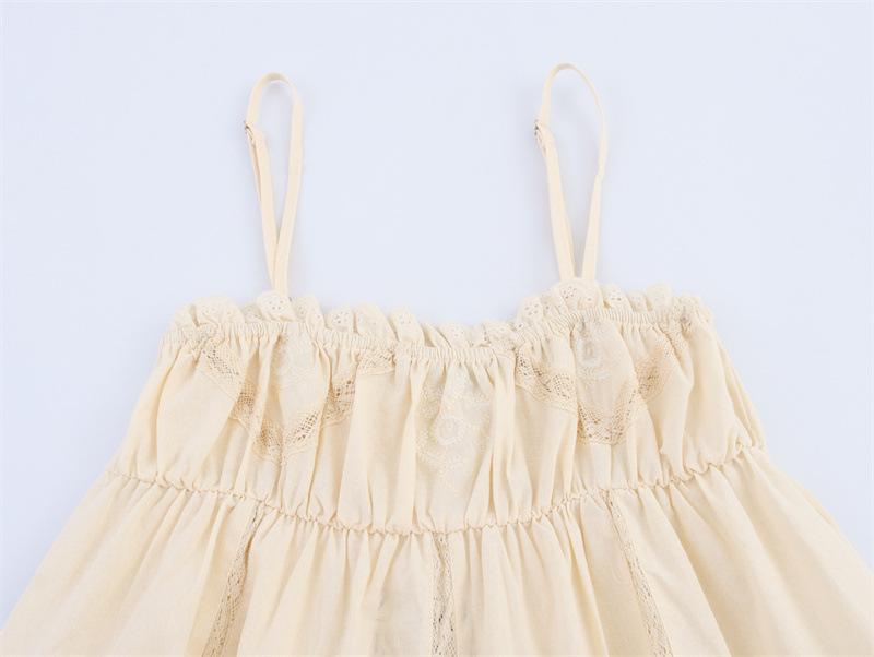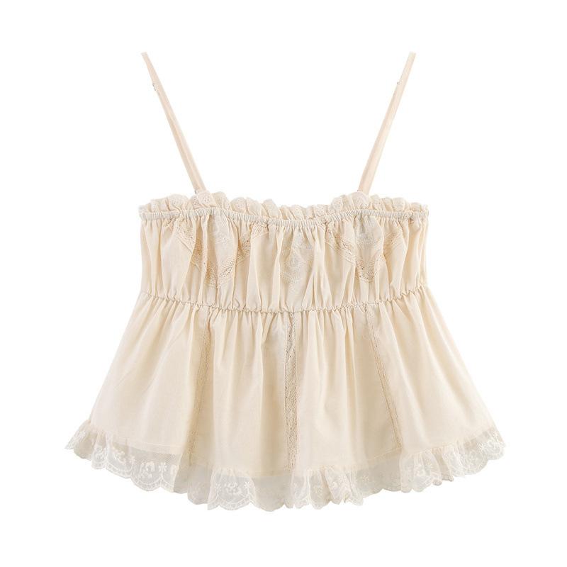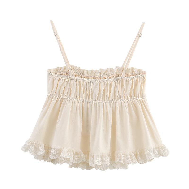 2025 Nuevo Estilo de Verano Estilo Europeo y Americano Dulce y Picante Encaje Bordado Stretch Top Camisola para Mujer 0881048