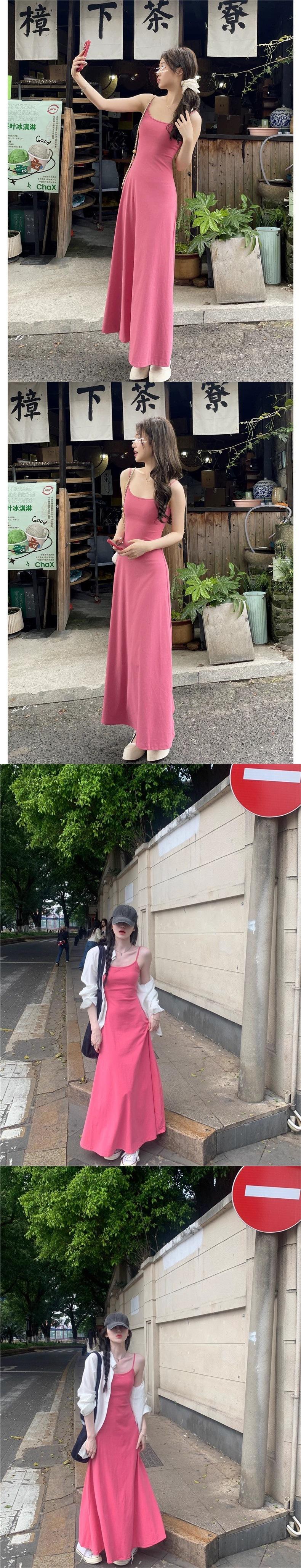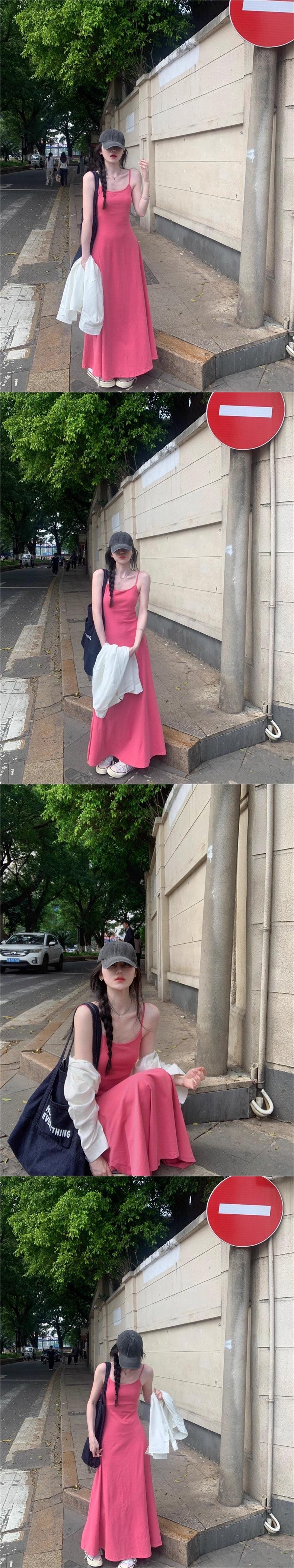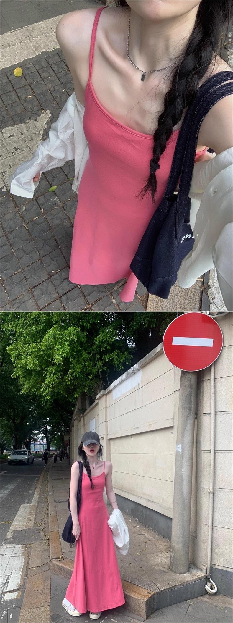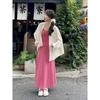Vestido rosa palo sin mangas para mujer 2025 nuevo verano francés único súper hermoso suelto falda grande swing vestido chaleco