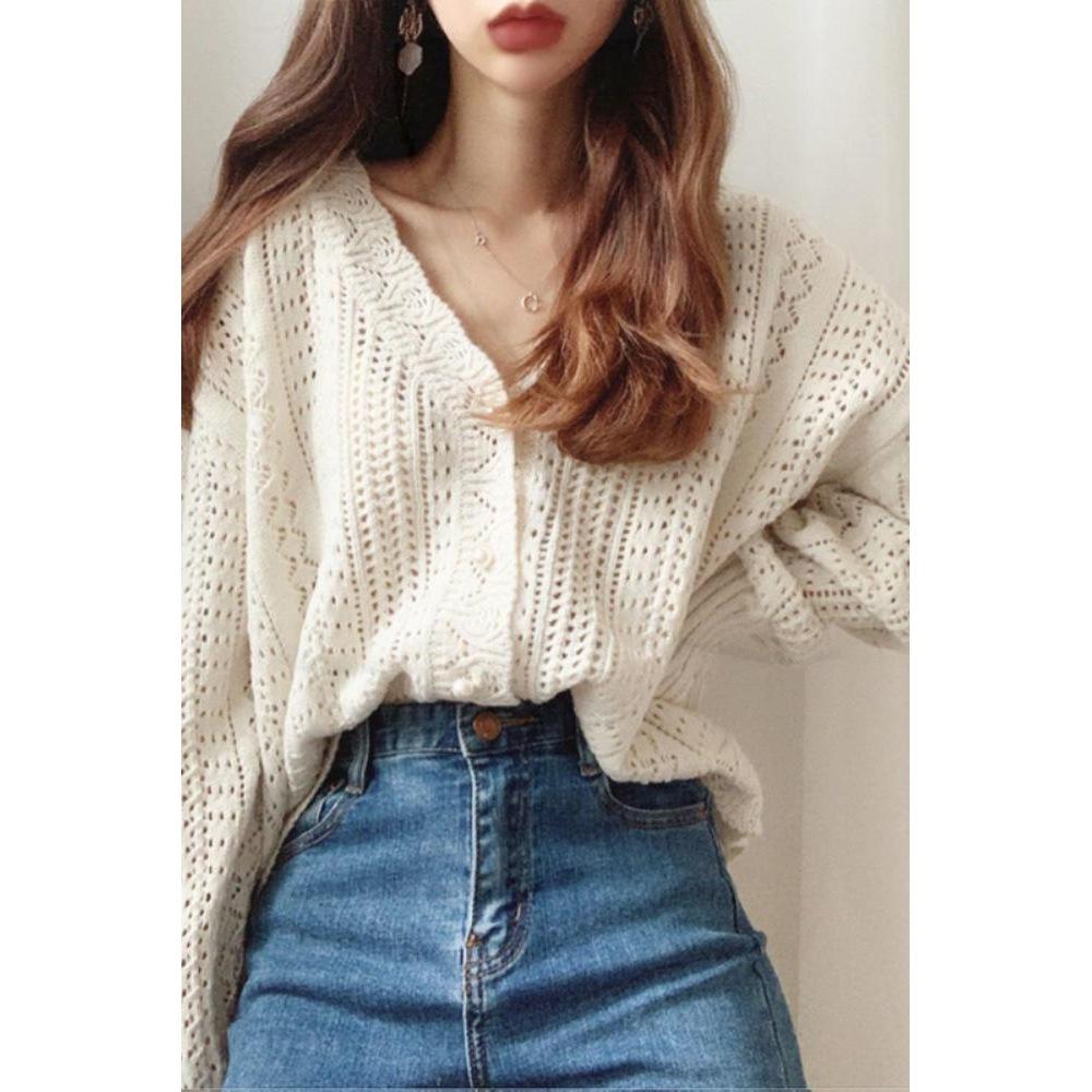 Cárdigan de Punto Calado Suelto Nuevo Otoño 2025 para Mujer Top de Cuello Delgado Estilo Lazy Nuevo Top para Mujer