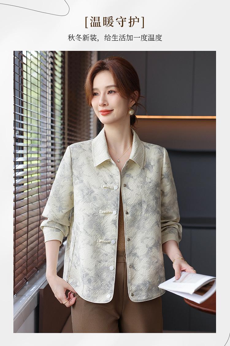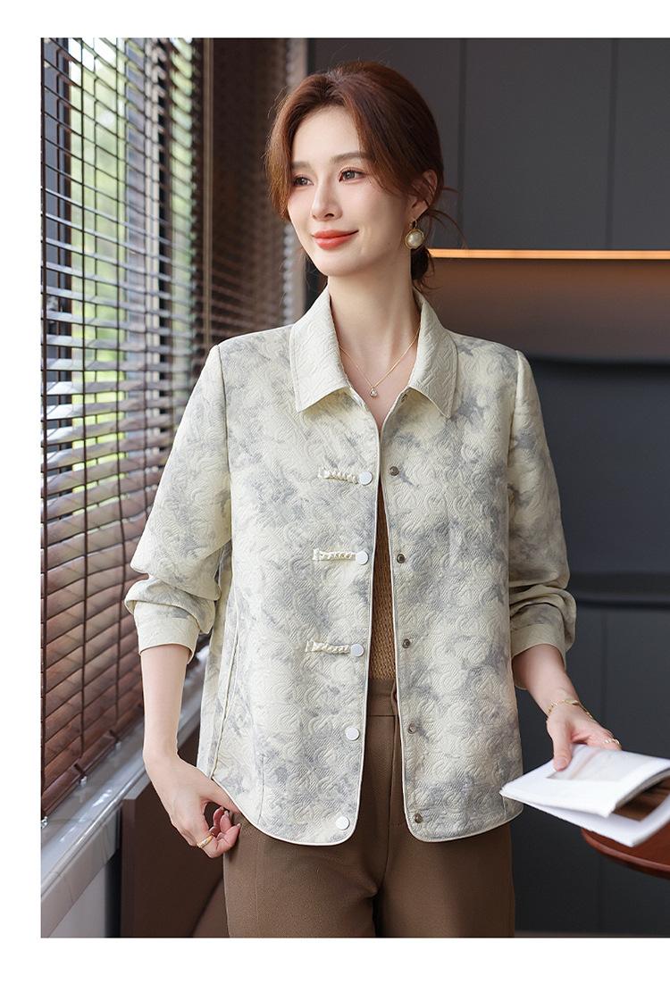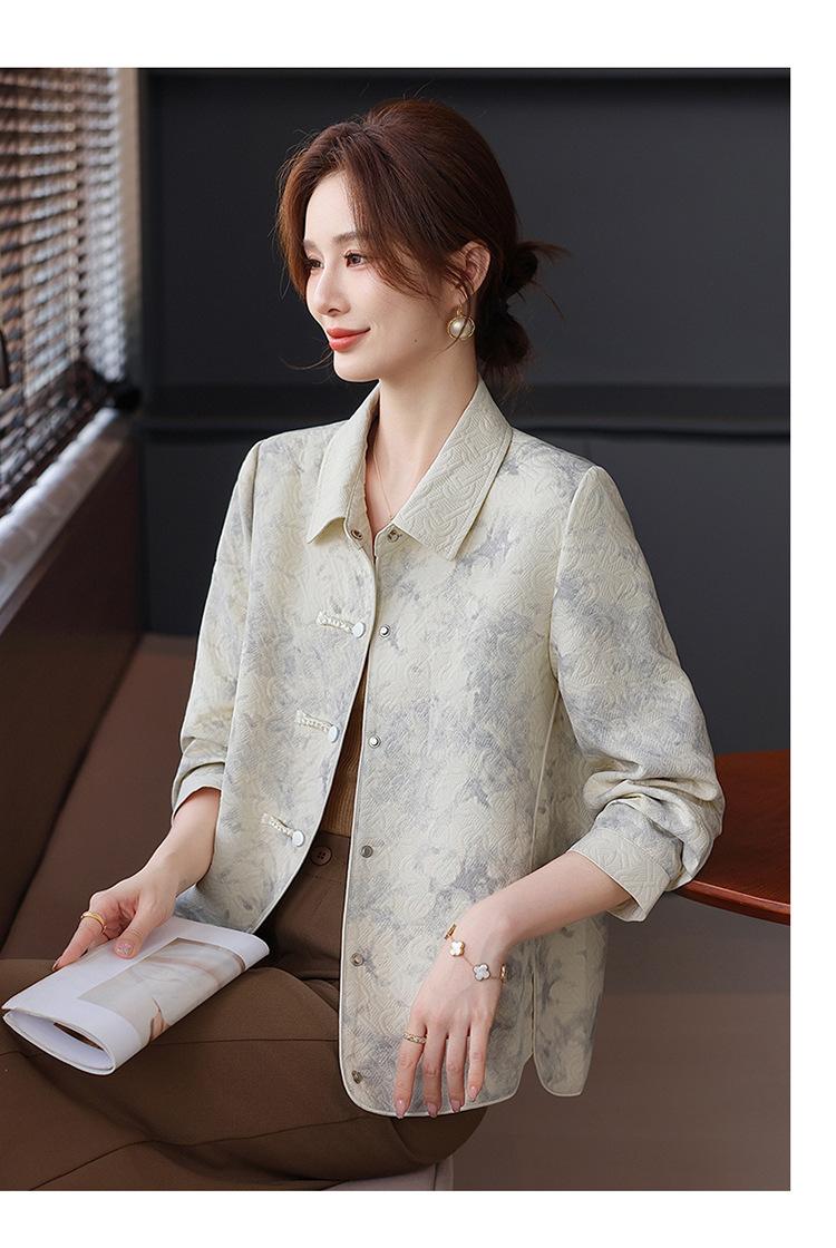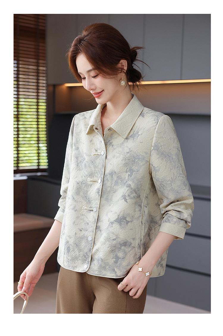 Blusa para Madre Estilo Chino Nuevo 2025 Otoño Nuevo Solapa Estampado Manga Larga Estilo Nacional Ropa Exterior para Mujer de Mediana Edad y Anciana