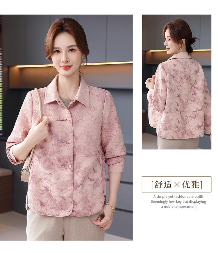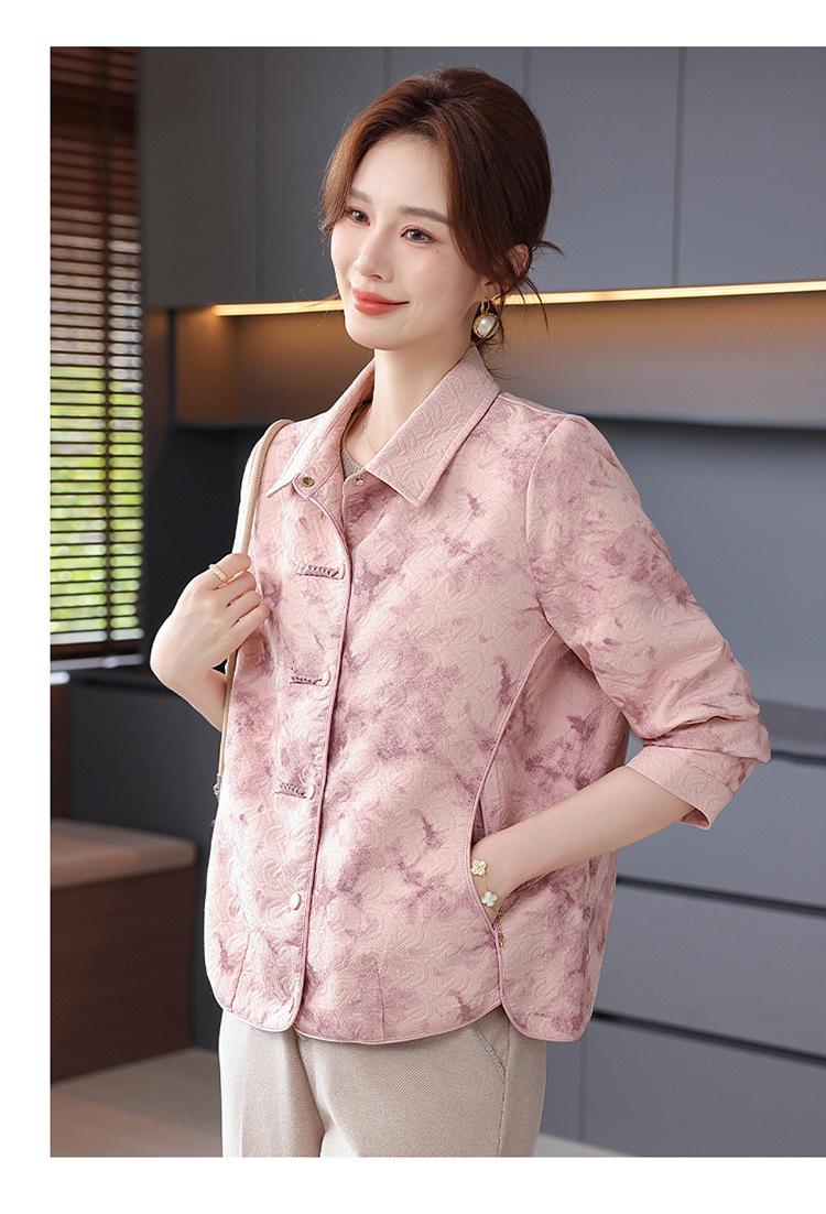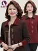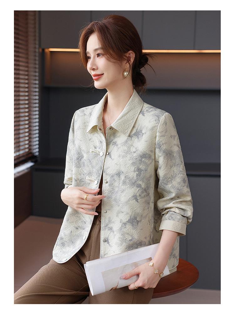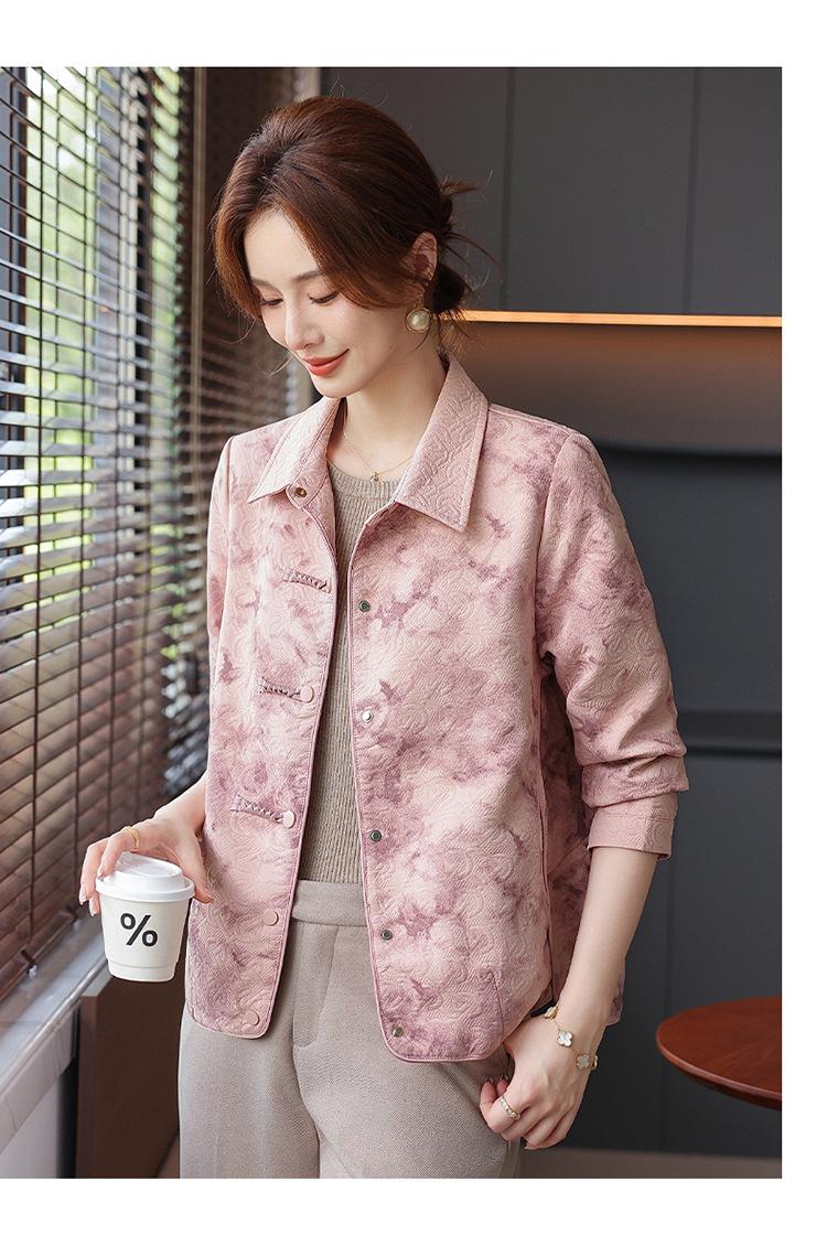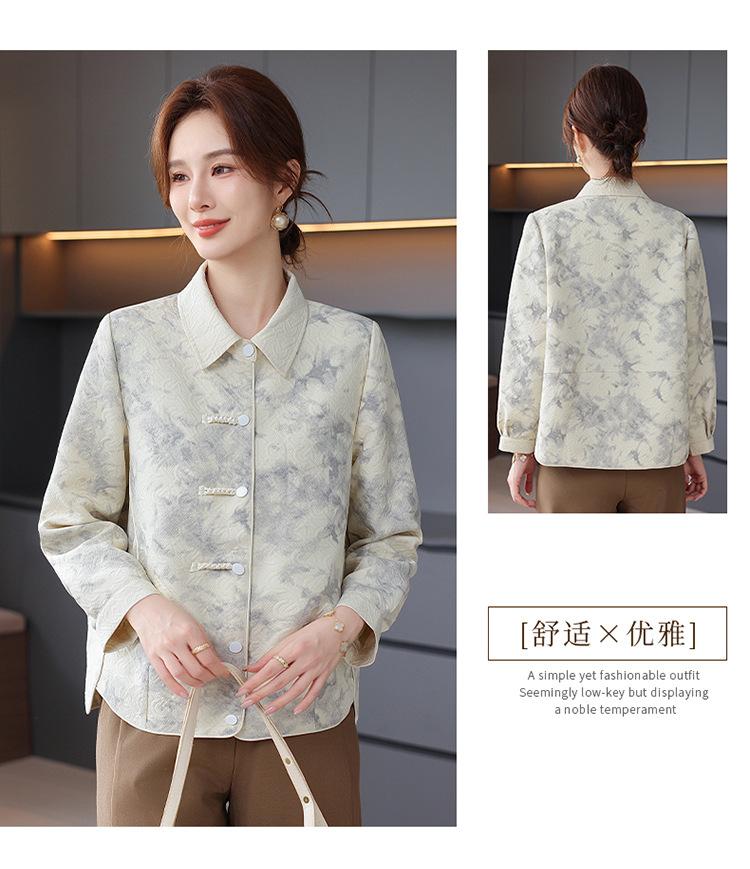 Blusa para Madre Estilo Chino Nuevo 2025 Otoño Nuevo Solapa Estampado Manga Larga Estilo Nacional Ropa Exterior para Mujer de Mediana Edad y Anciana