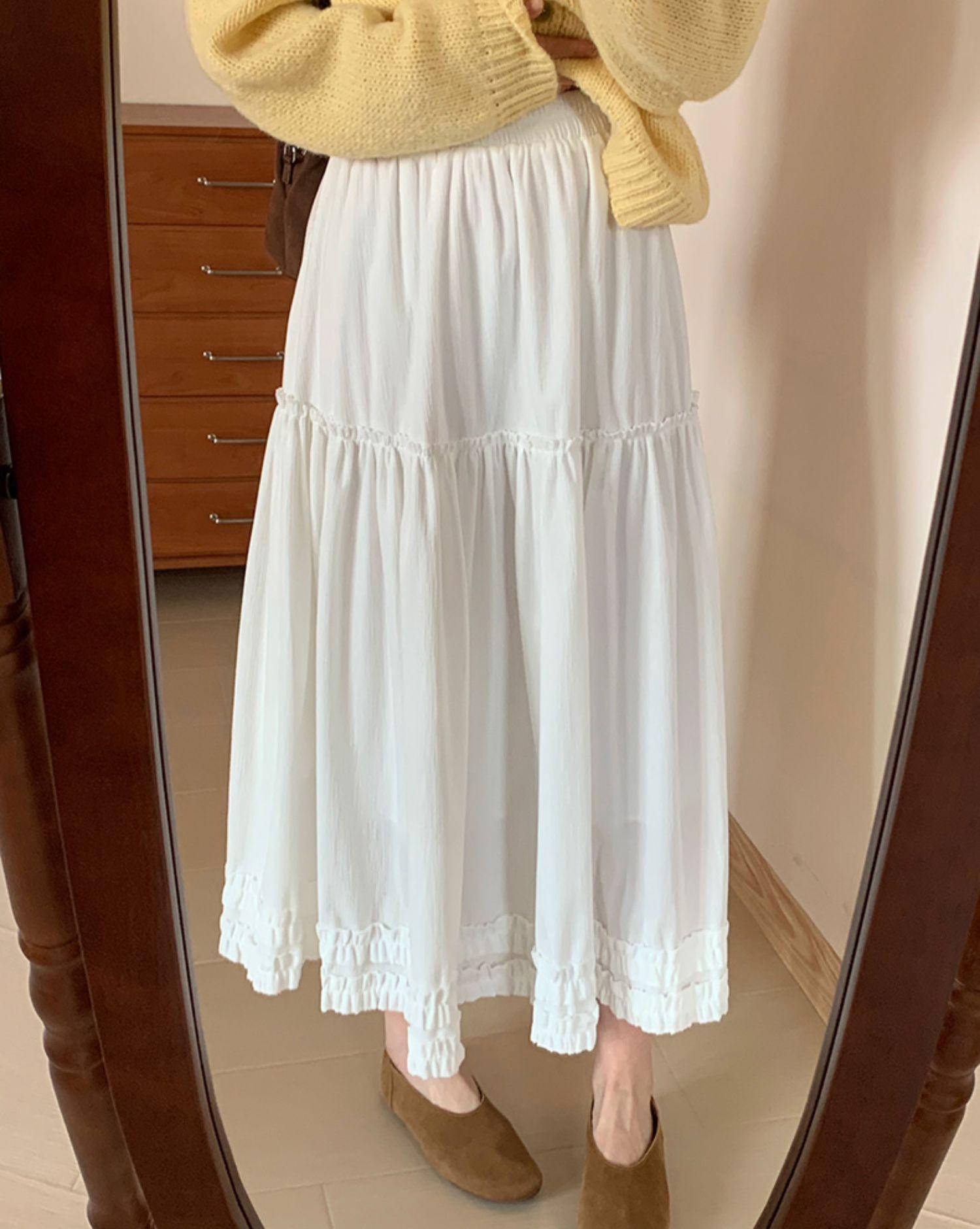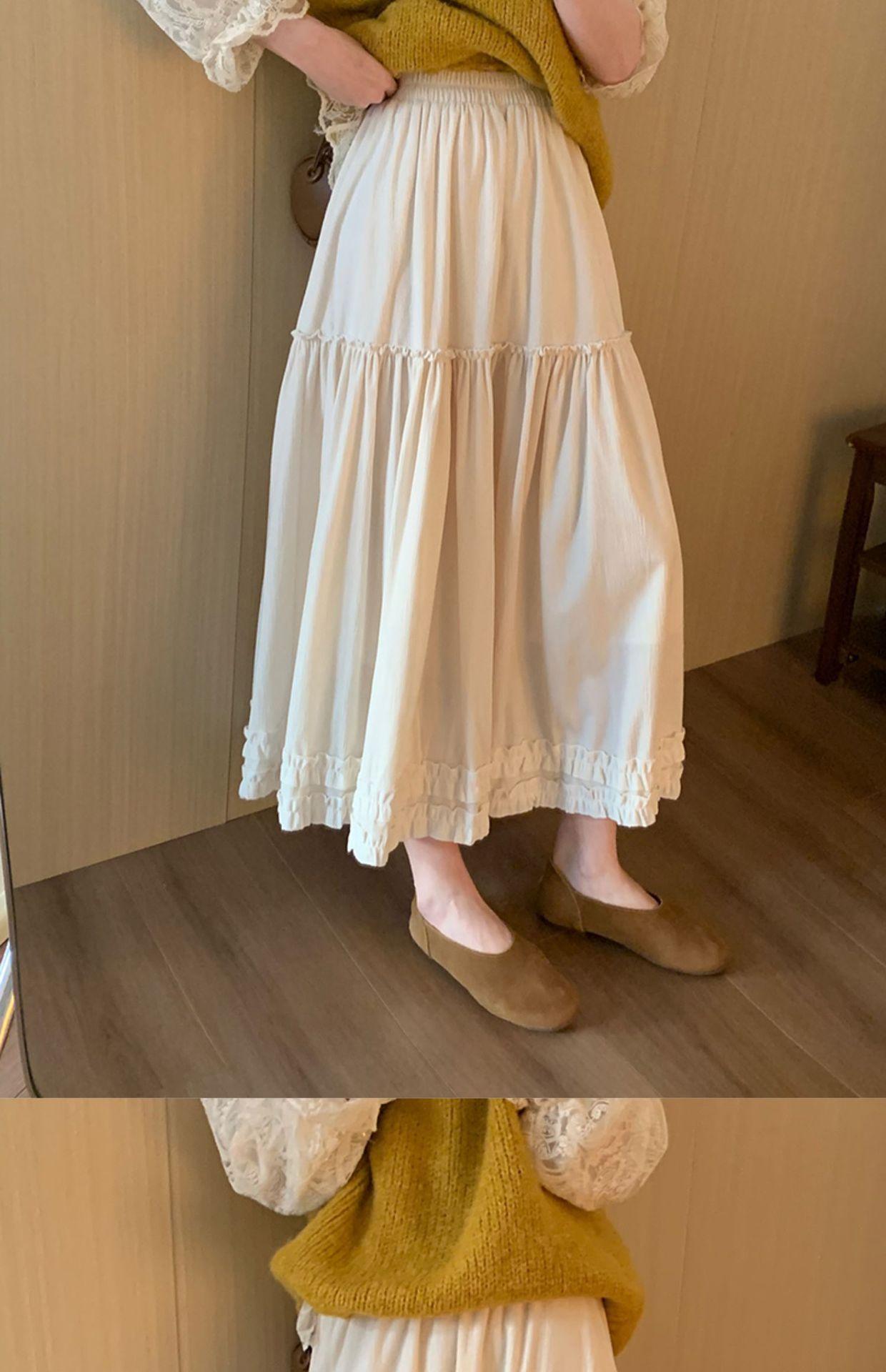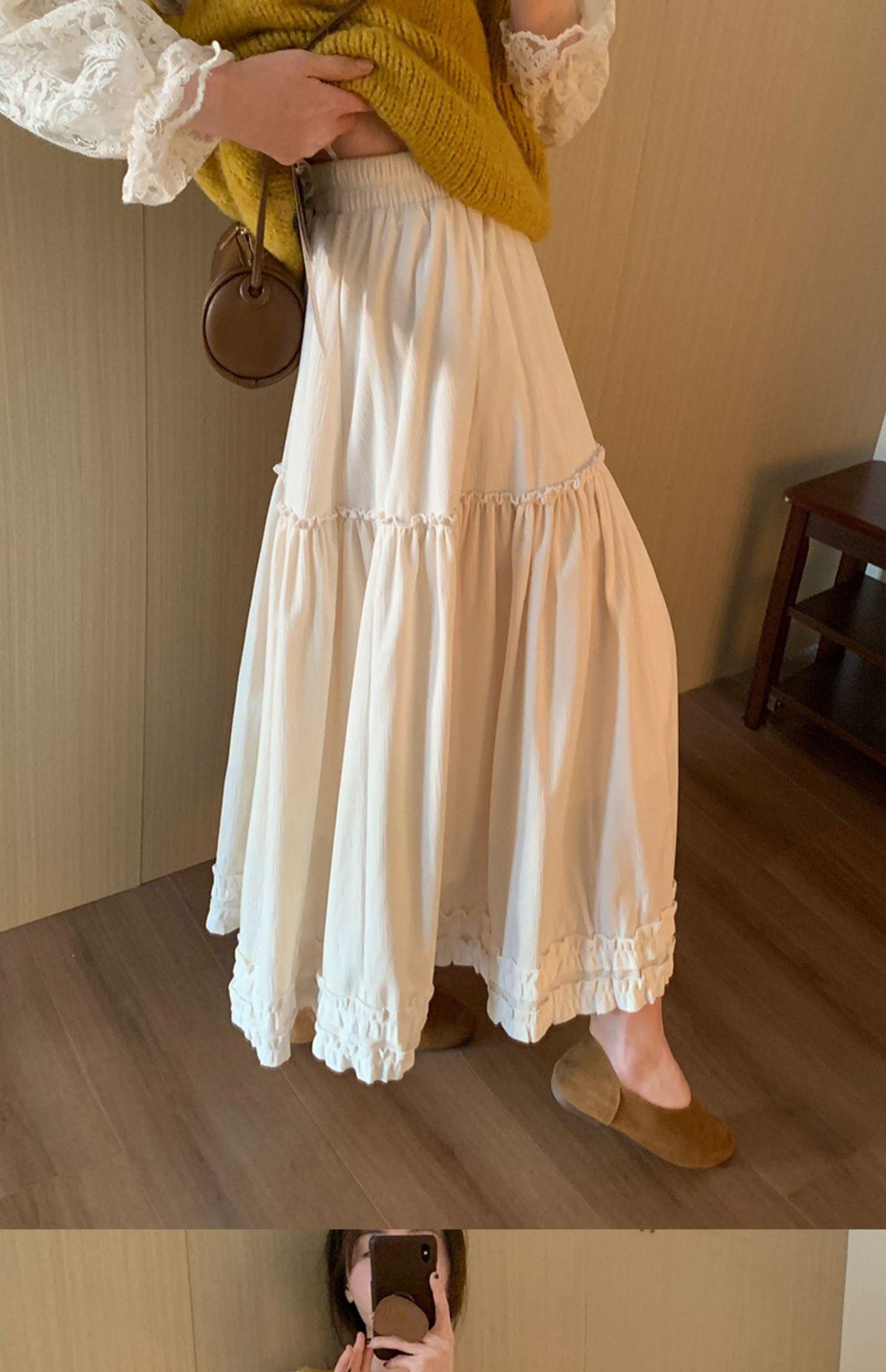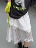 Falda elegante de encaje de longitud media para mujer, novedad de verano 2025, estilo coreano, cintura alta, ajustada, estilo paraguas.