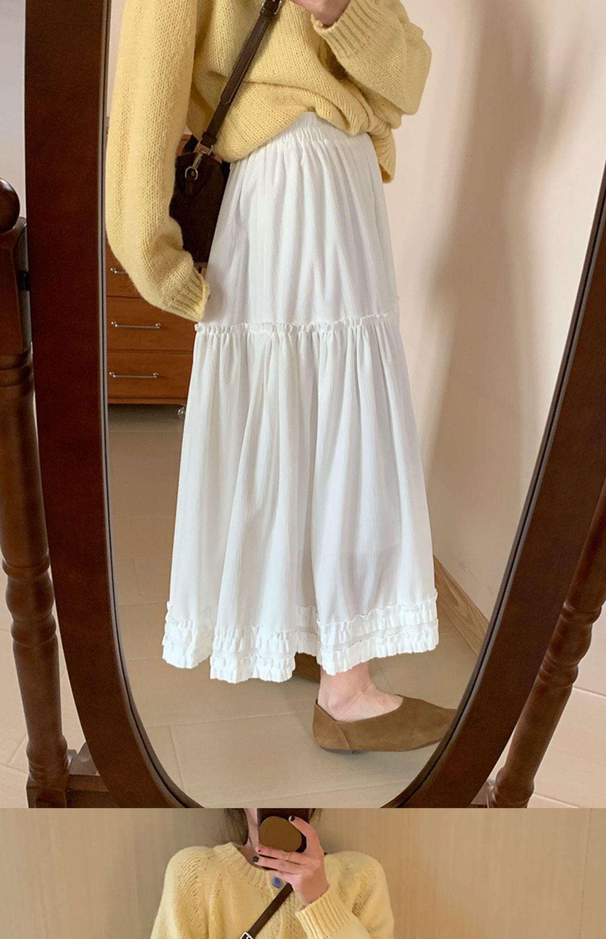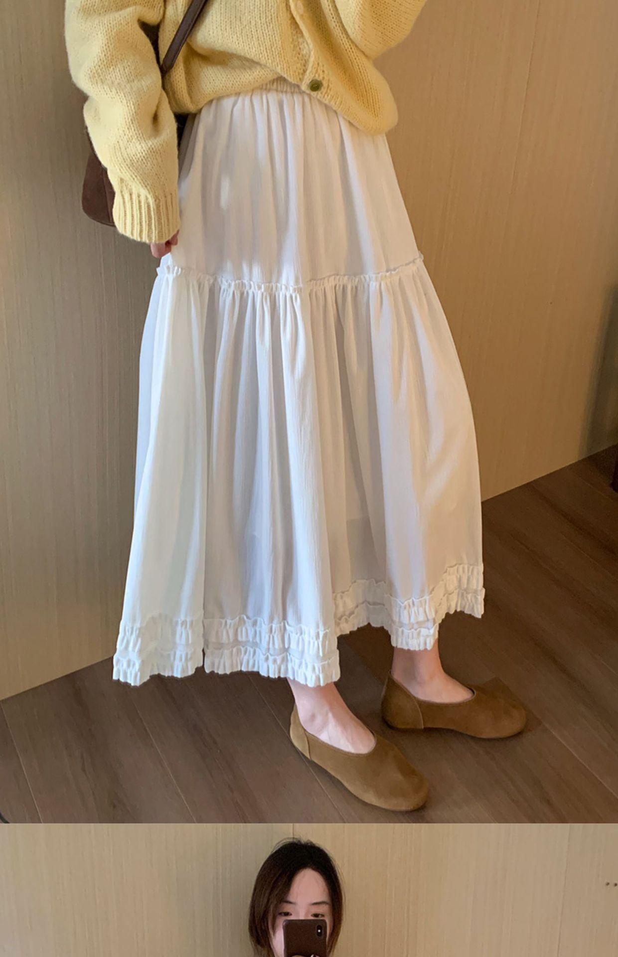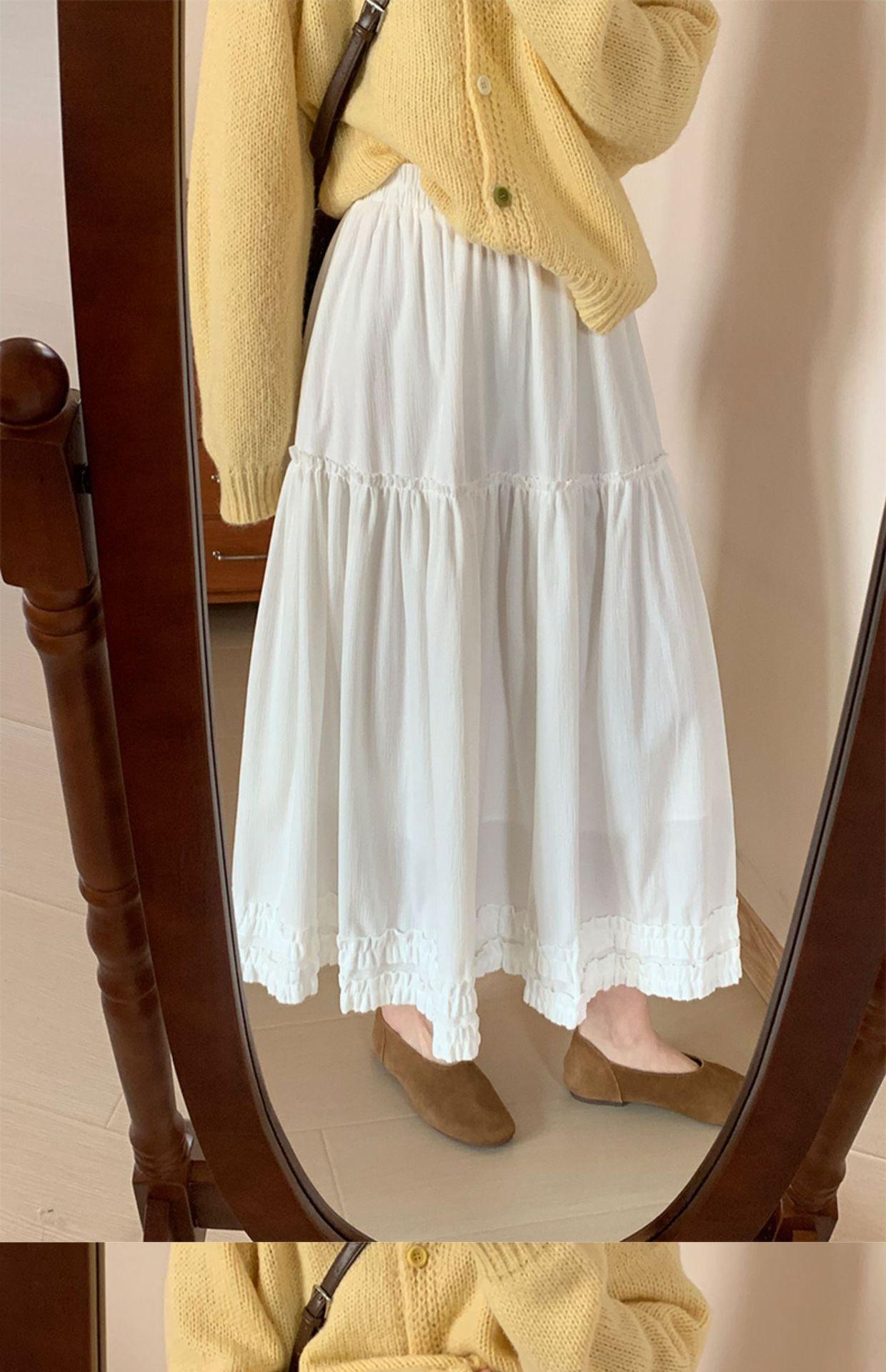 Falda elegante de encaje de longitud media para mujer, novedad de verano 2025, estilo coreano, cintura alta, ajustada, estilo paraguas.
