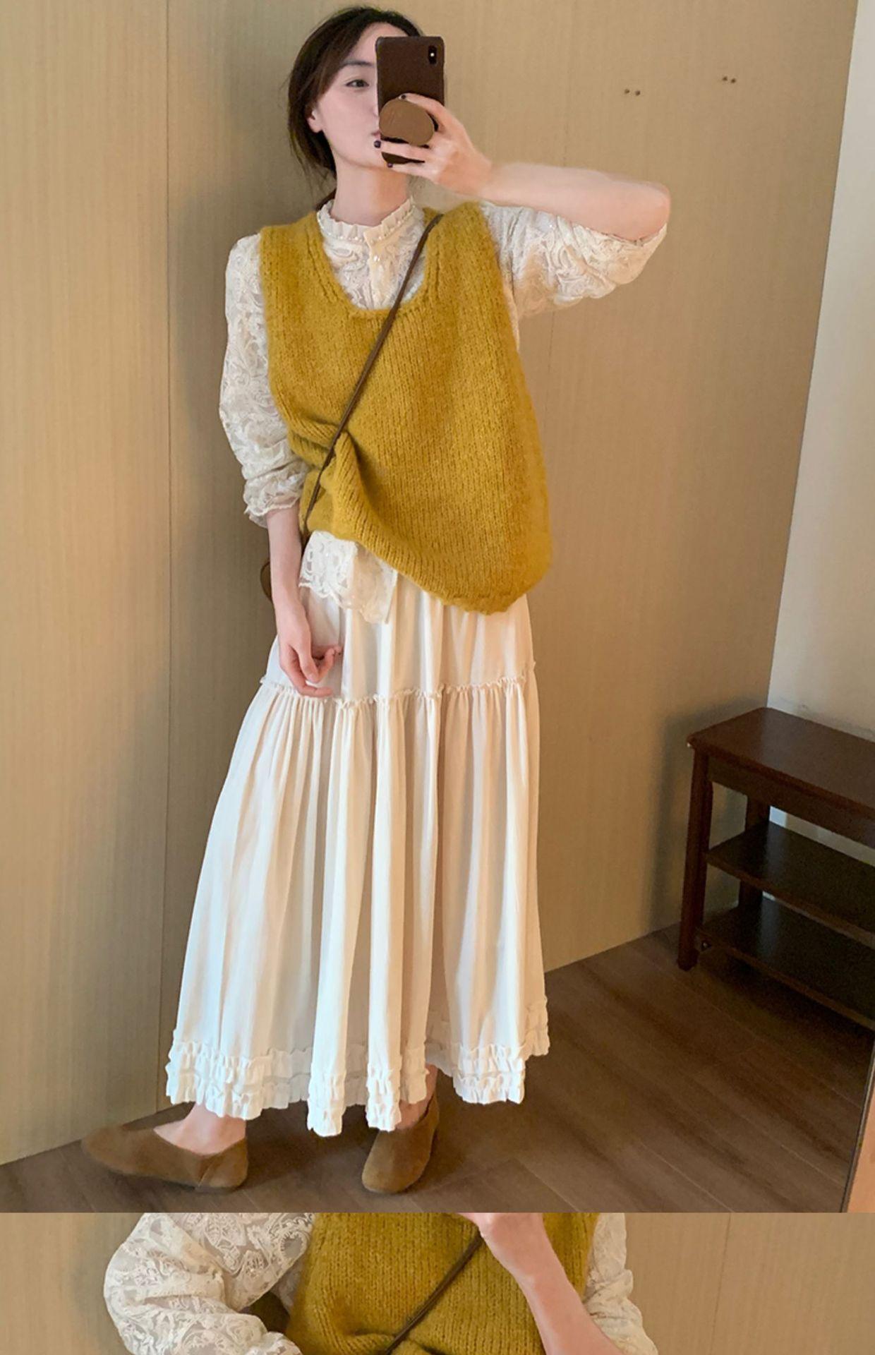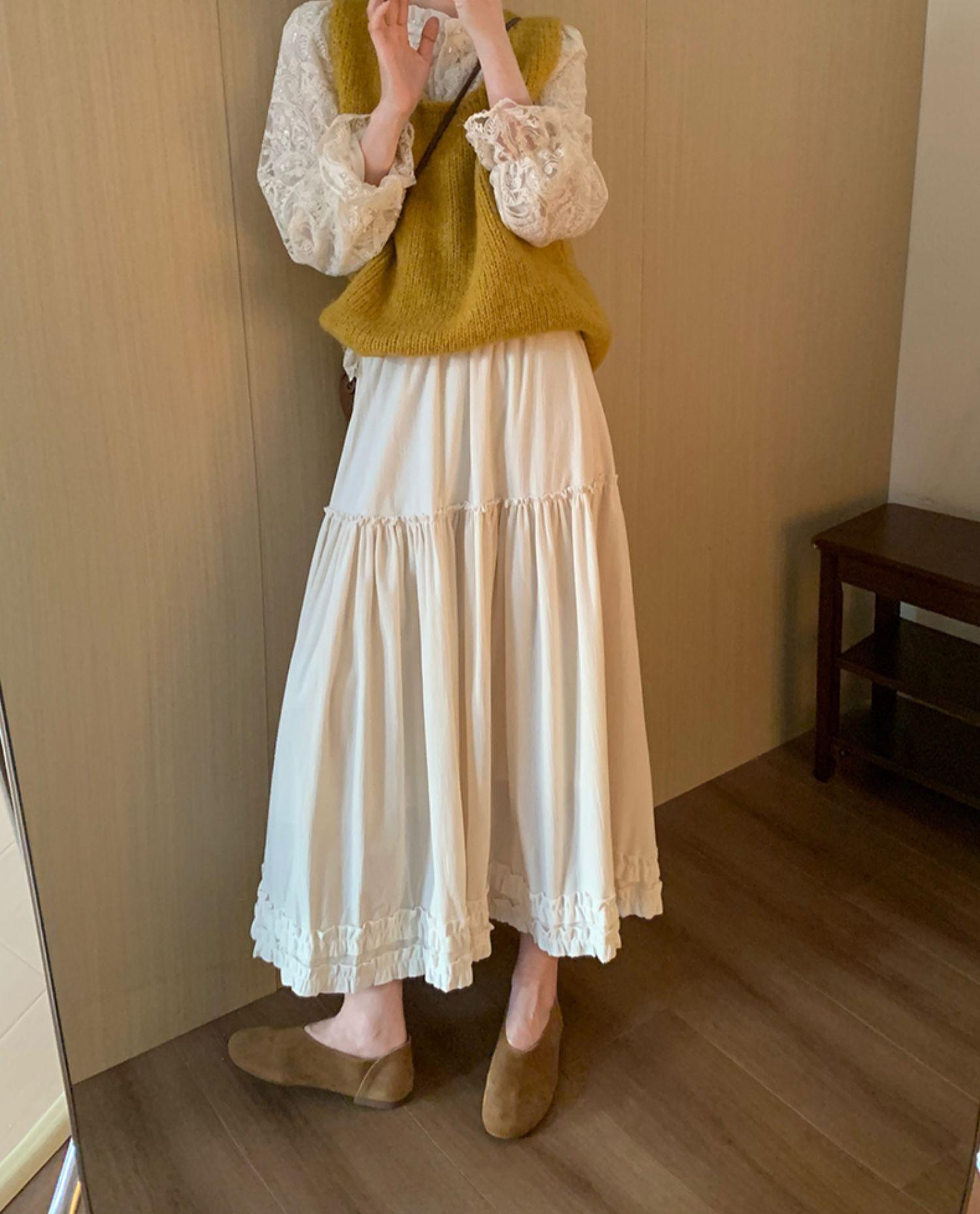 Falda de encaje temperamental 2025 primavera nuevo estilo temperamento dulce falda paraguas delgada femenina