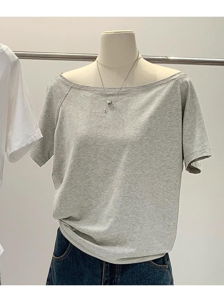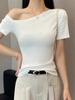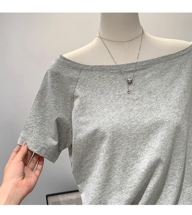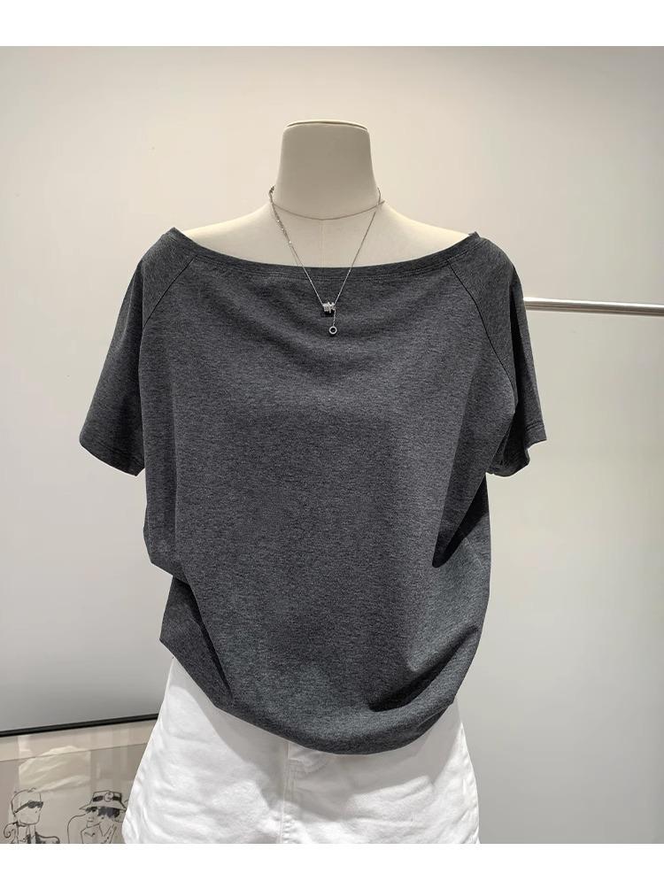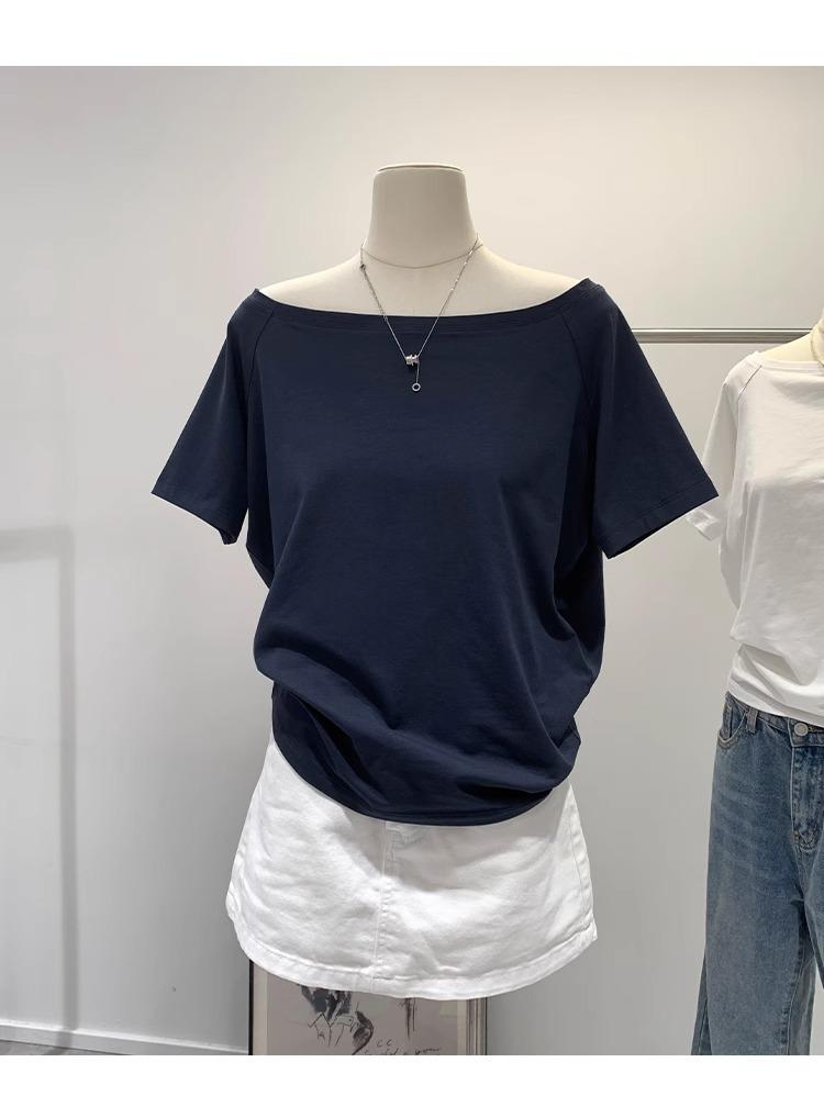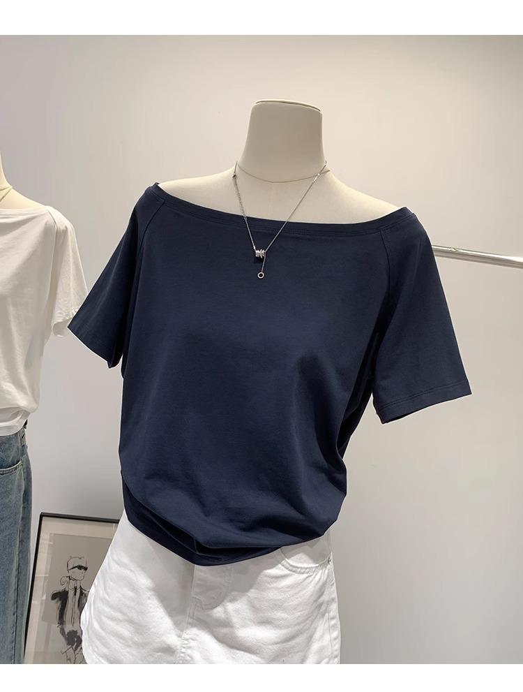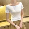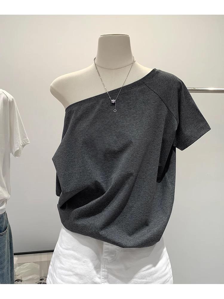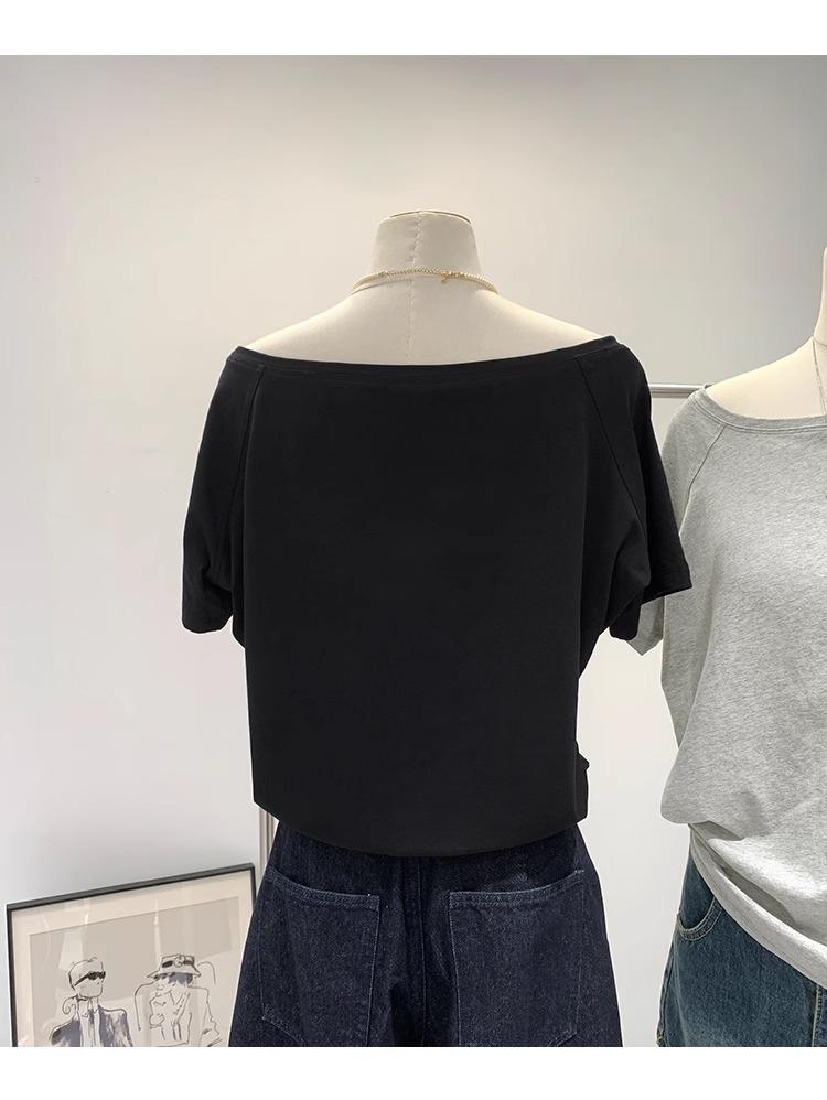 Playera de Verano 2025 para Mujer con Cuello Europeo de un Hombro Caído, Nuevo Estilo Sexy, Top Bardot de Diseño Único y Manga Corta