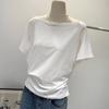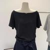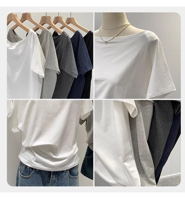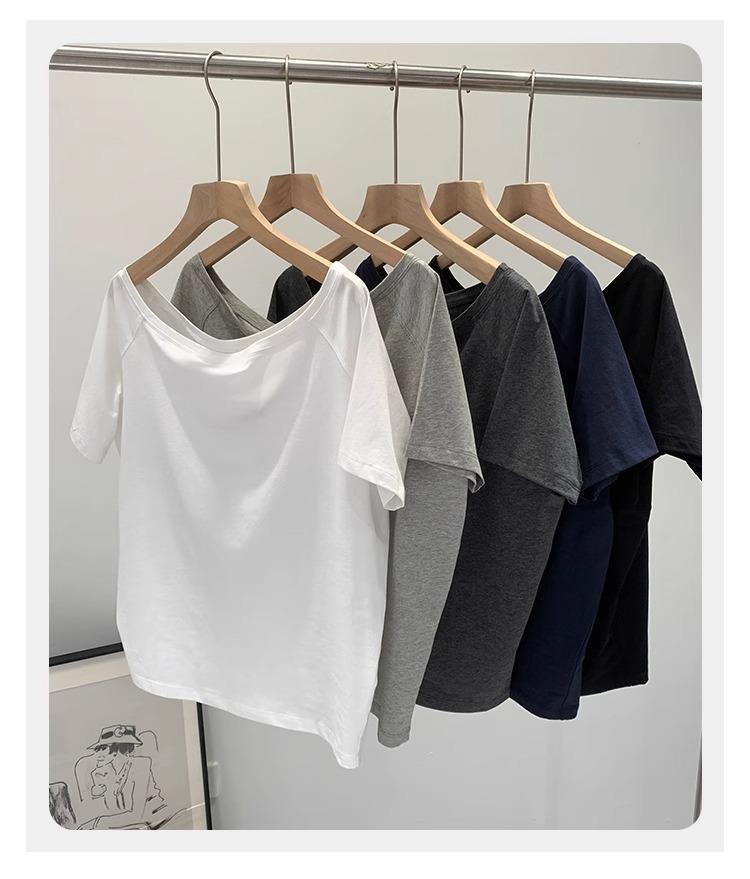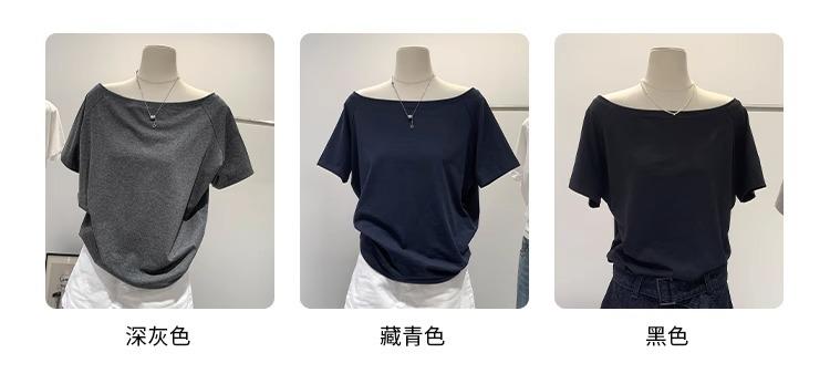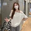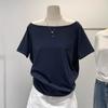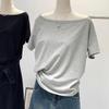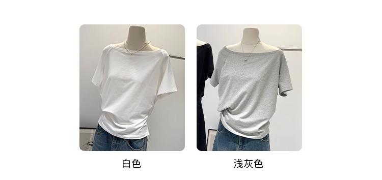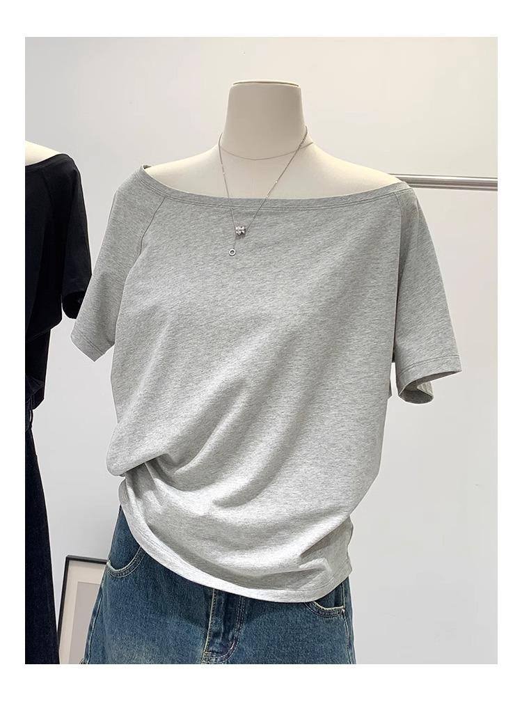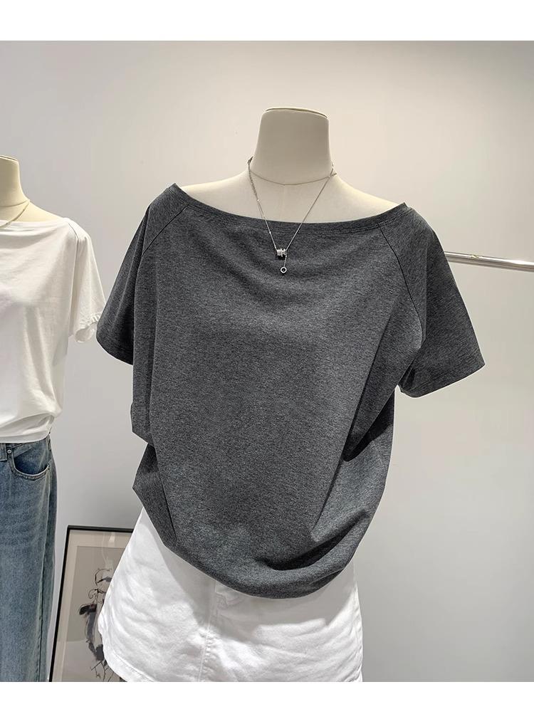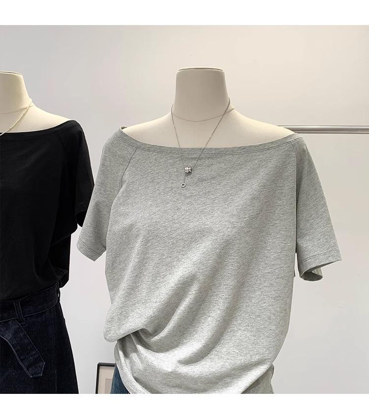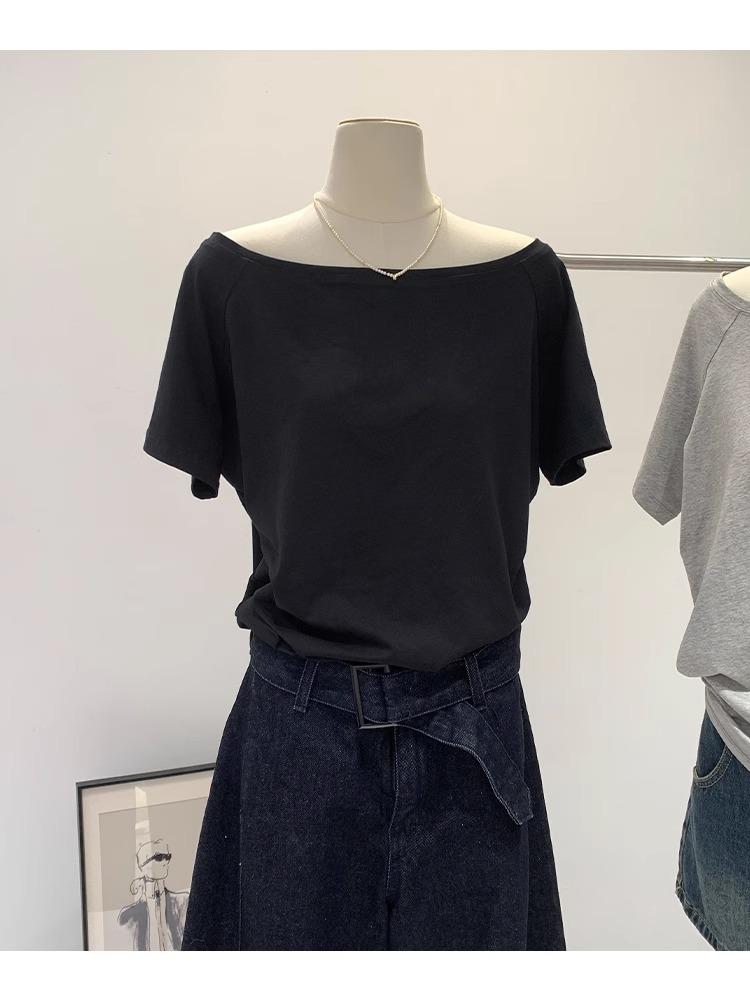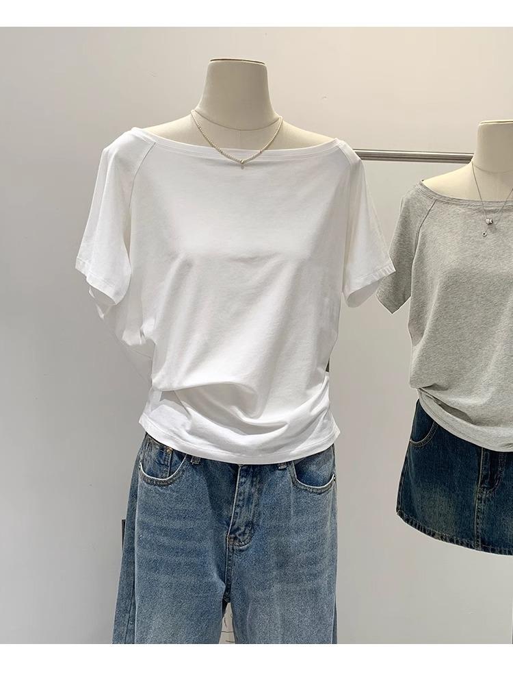 Playera de Verano 2025 para Mujer con Cuello Europeo de un Hombro Caído, Nuevo Estilo Sexy, Top Bardot de Diseño Único y Manga Corta