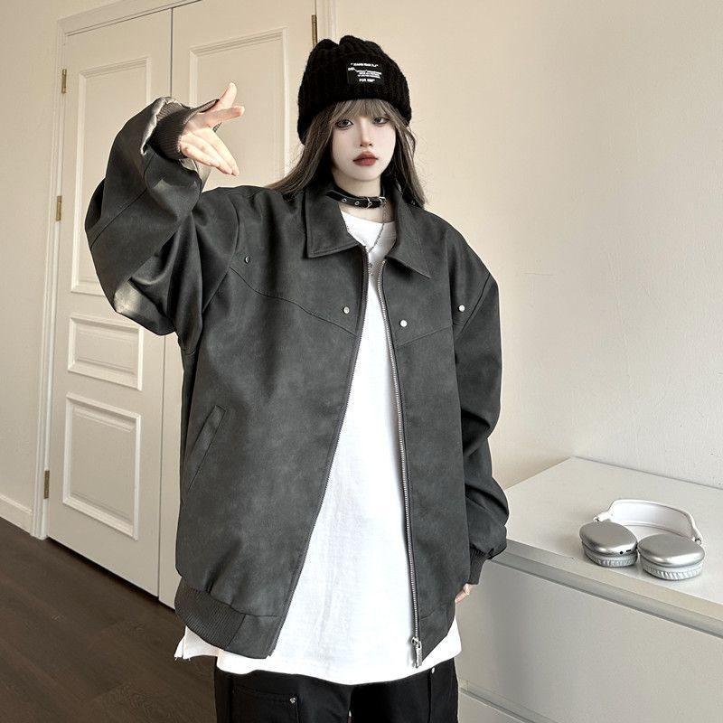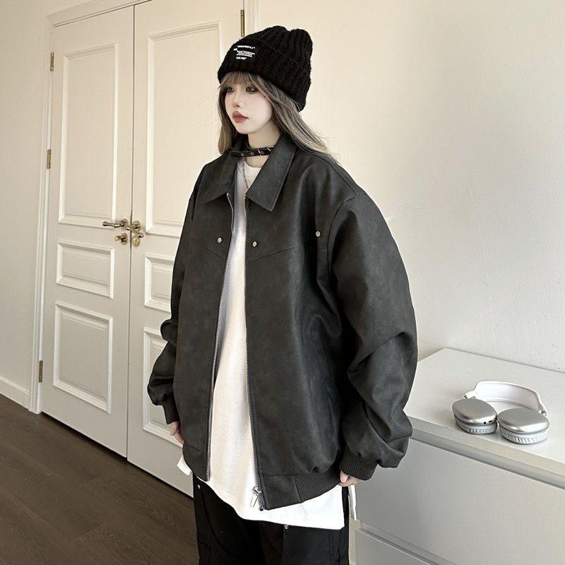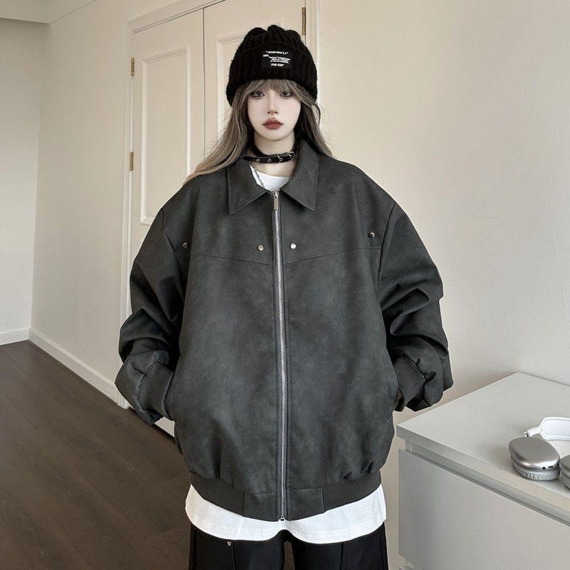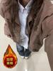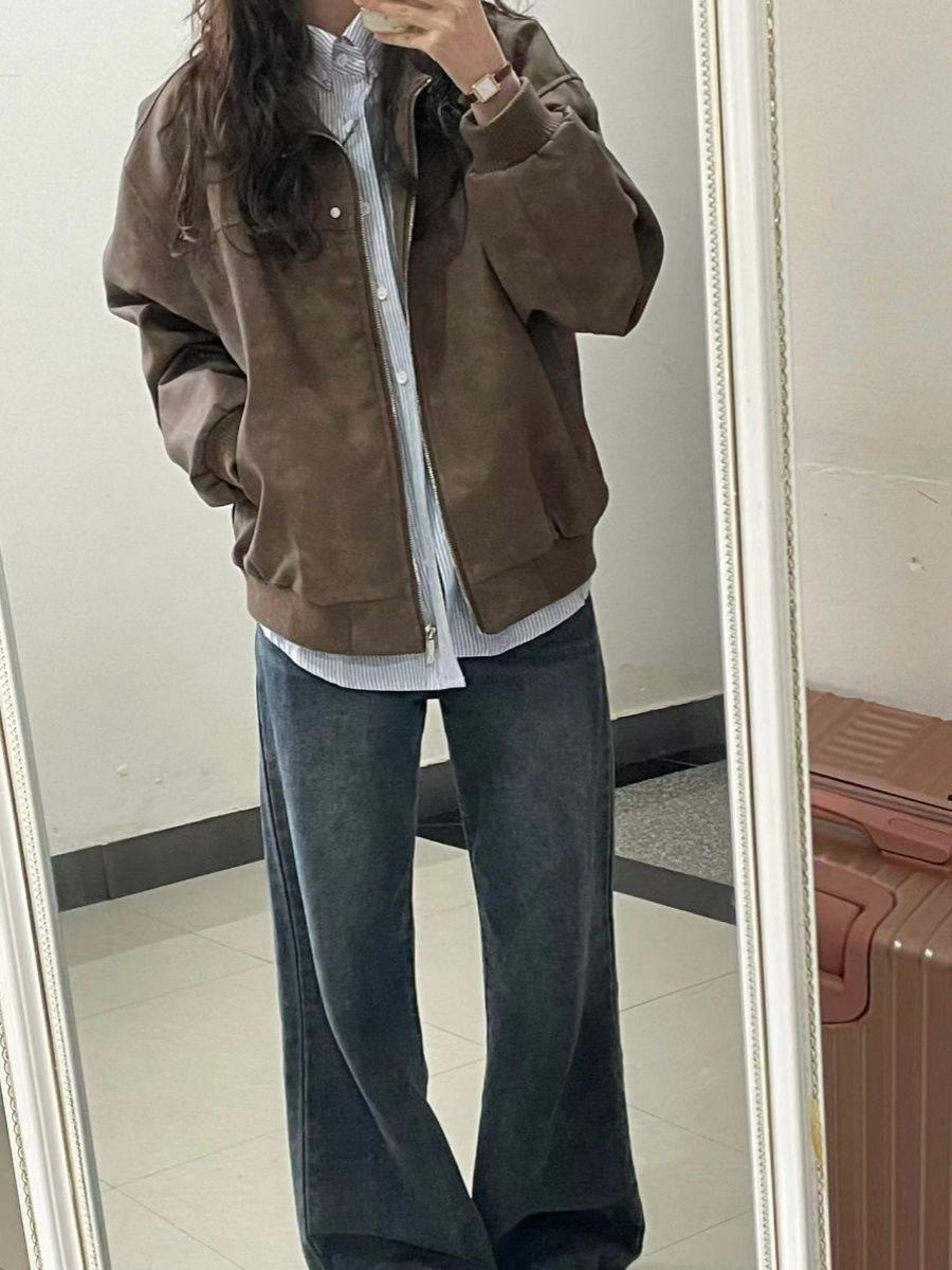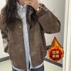 Chaqueta Marrón Retro Americana con Solapa para Mujer Estilo Primavera y Otoño 2024 Top Chaqueta de Pareja de Ante Sintético