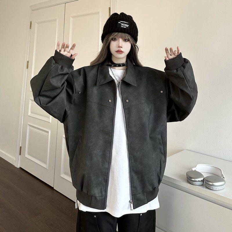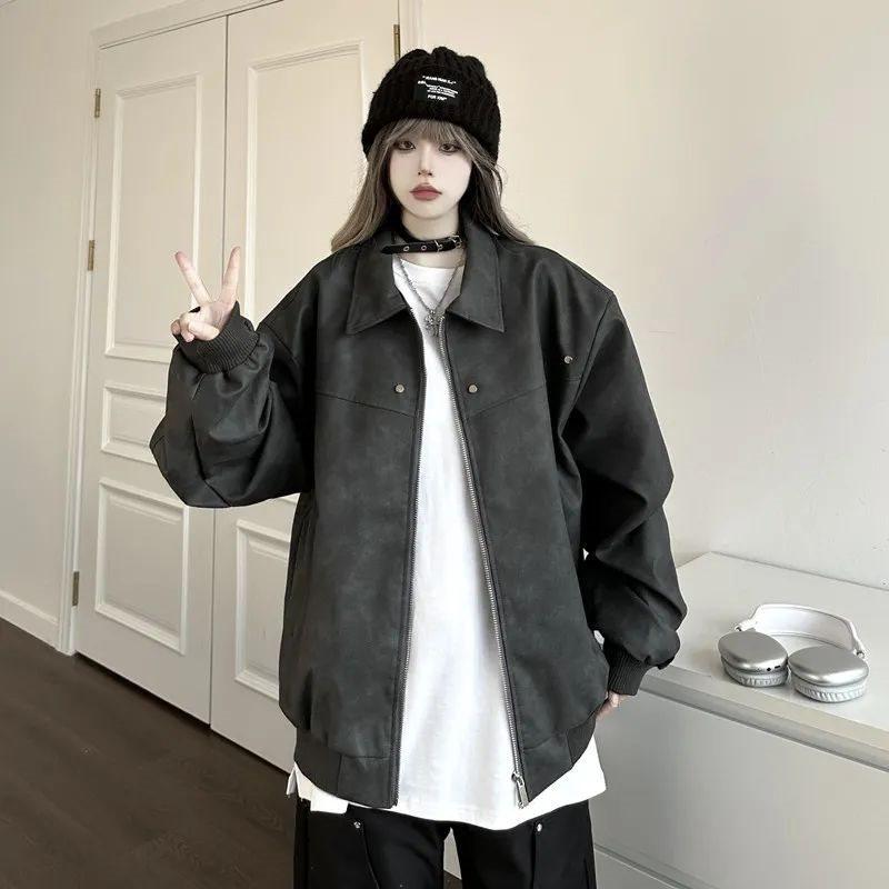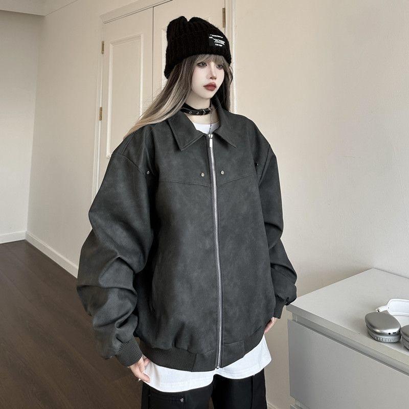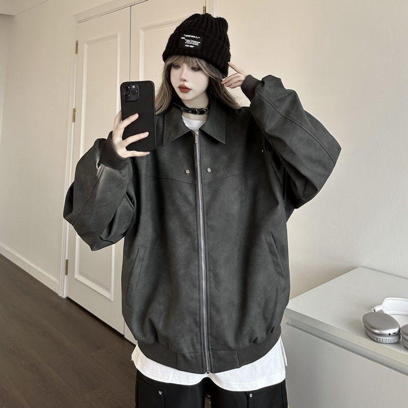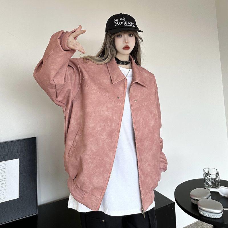 Chaqueta Marrón Retro Americana con Solapa para Mujer Estilo Primavera y Otoño 2024 Top Chaqueta de Pareja de Ante Sintético