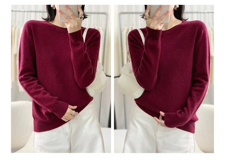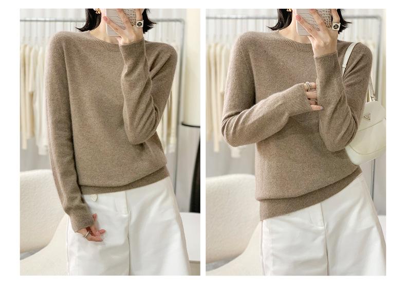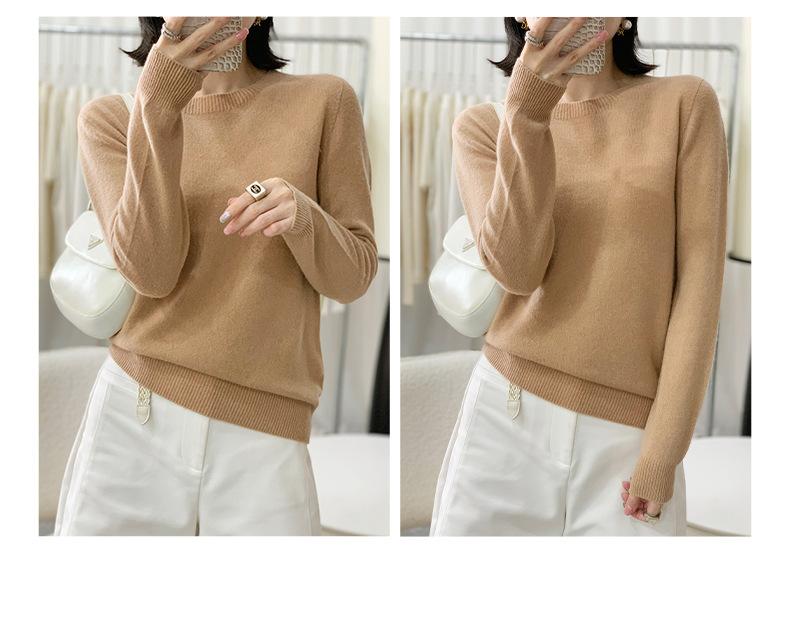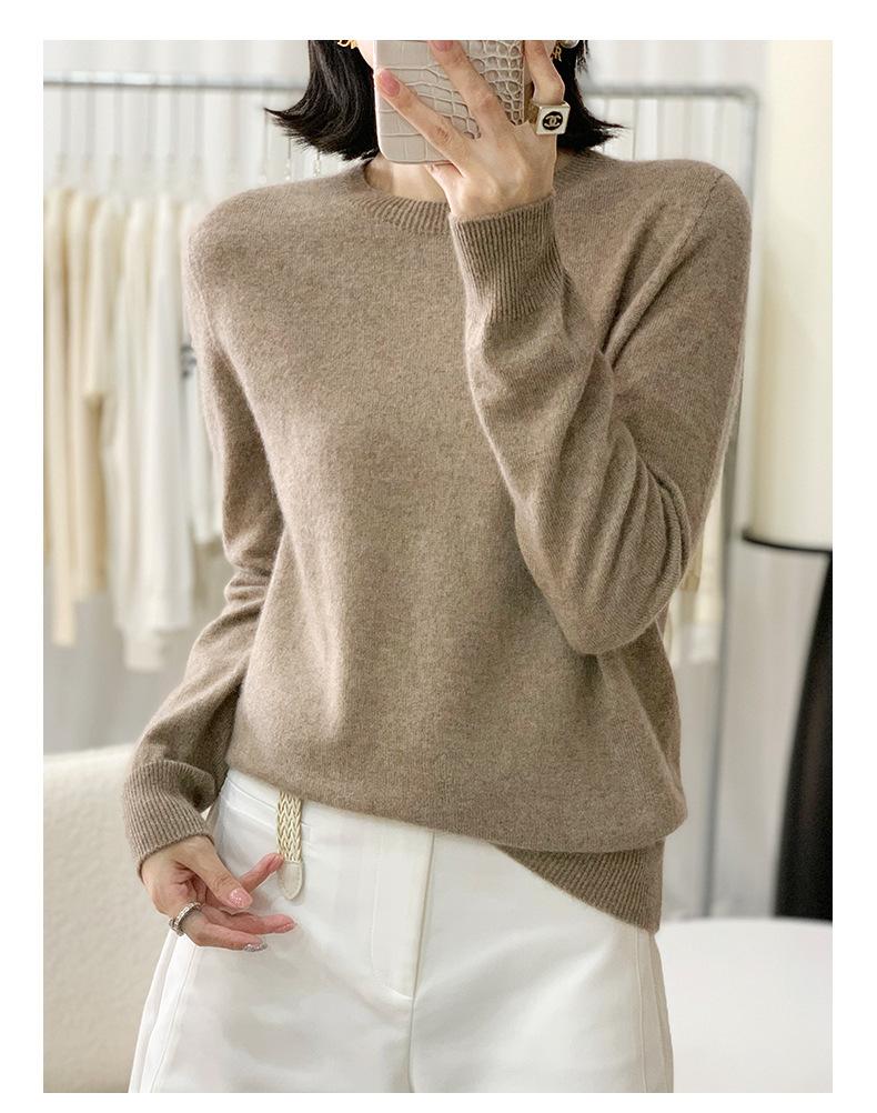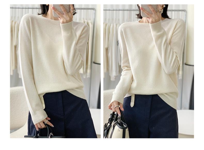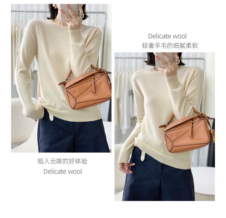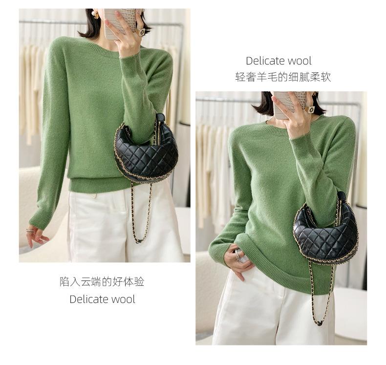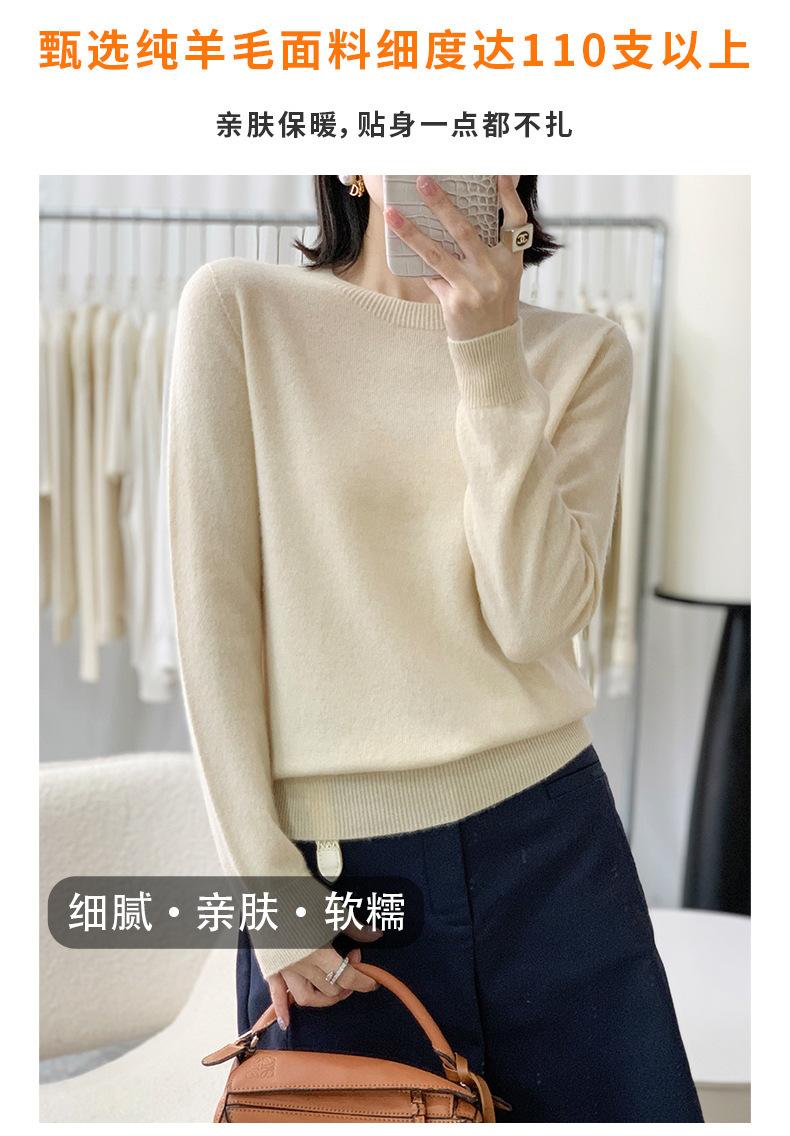 Nuevo Suéter de Punto de Lana Pura para Otoño/Invierno para Mujer, Top de Cuello Redondo, Listo para Usar de Primera Línea, Suéter Pulóver de Manga Larga, Fábrica de Origen