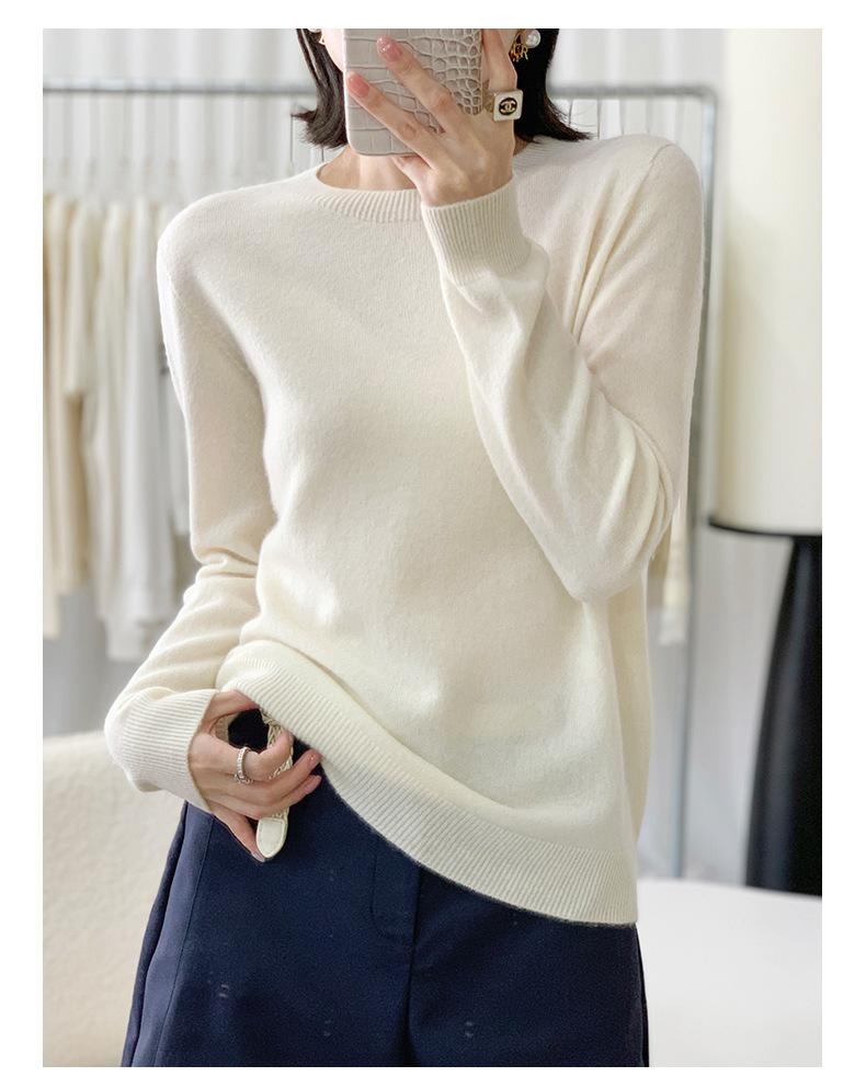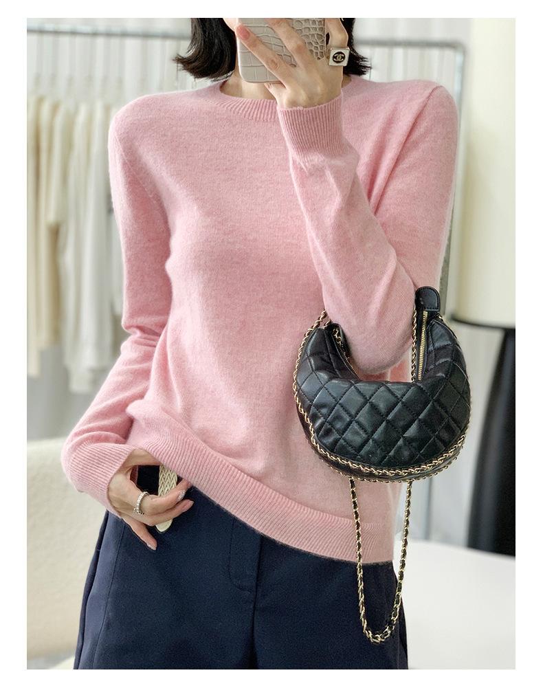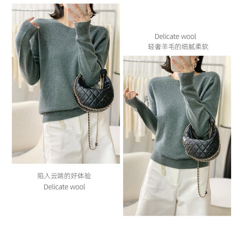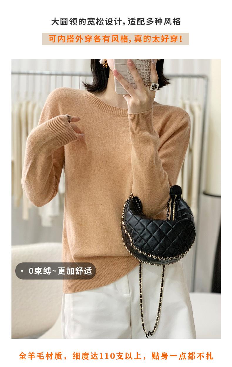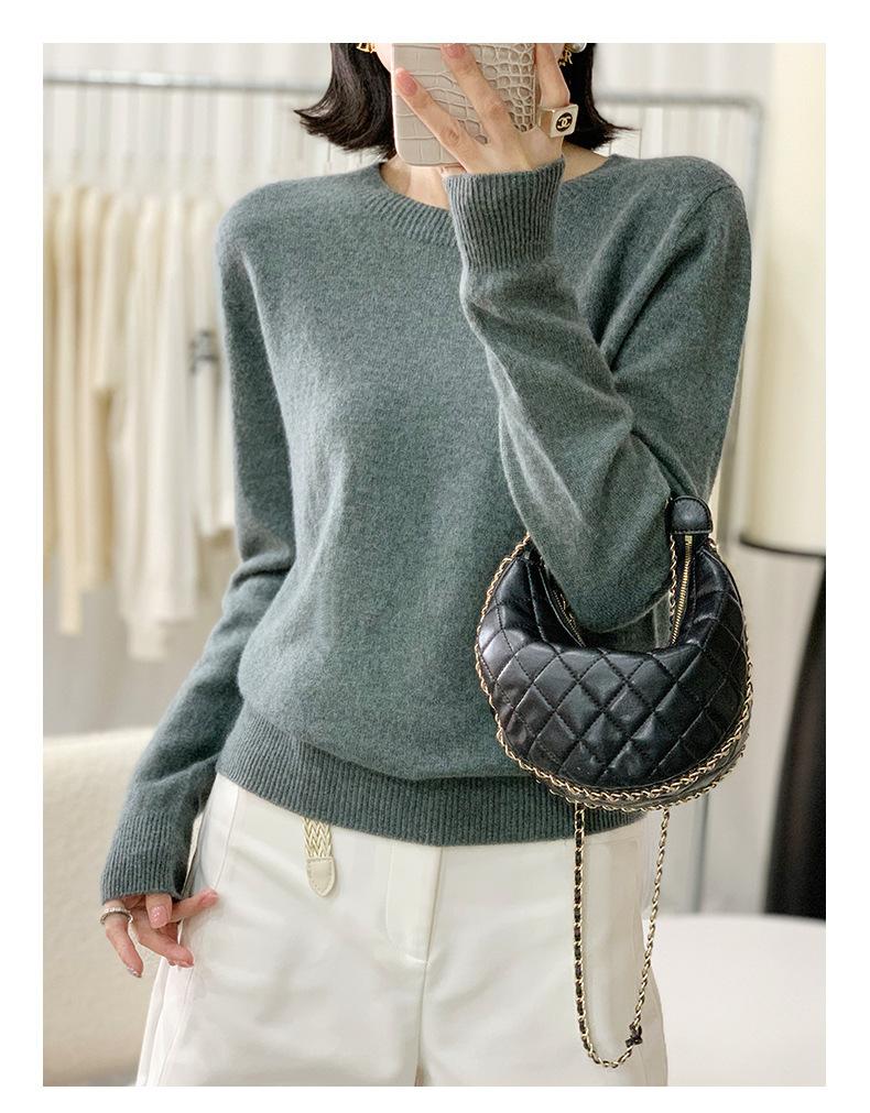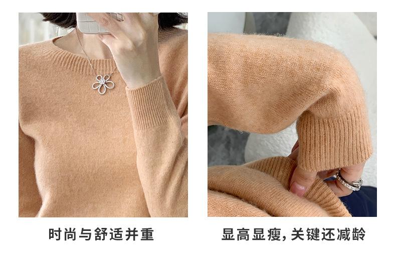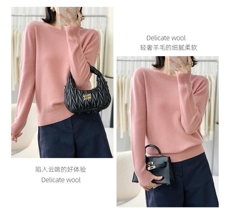 Nuevo Suéter de Punto de Lana Pura para Otoño/Invierno para Mujer, Top de Cuello Redondo, Listo para Usar de Primera Línea, Suéter Pulóver de Manga Larga, Fábrica de Origen